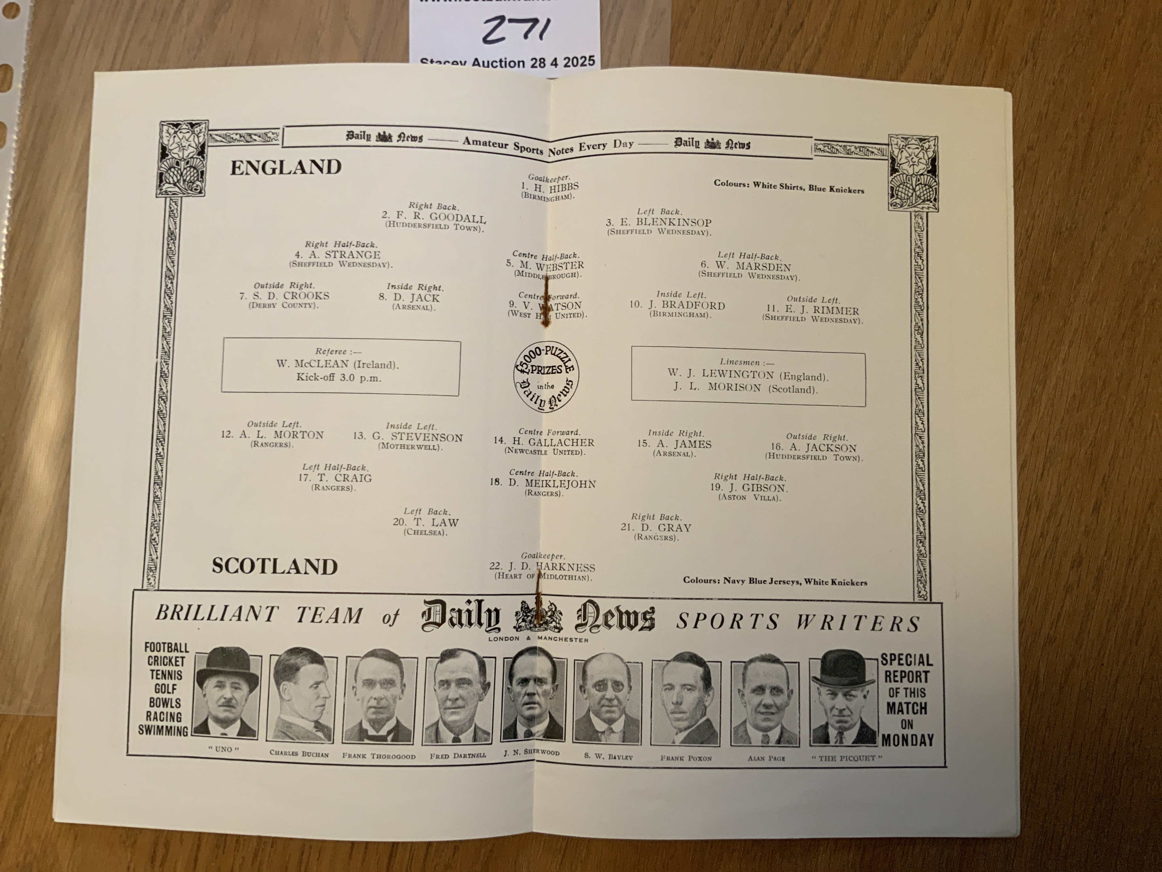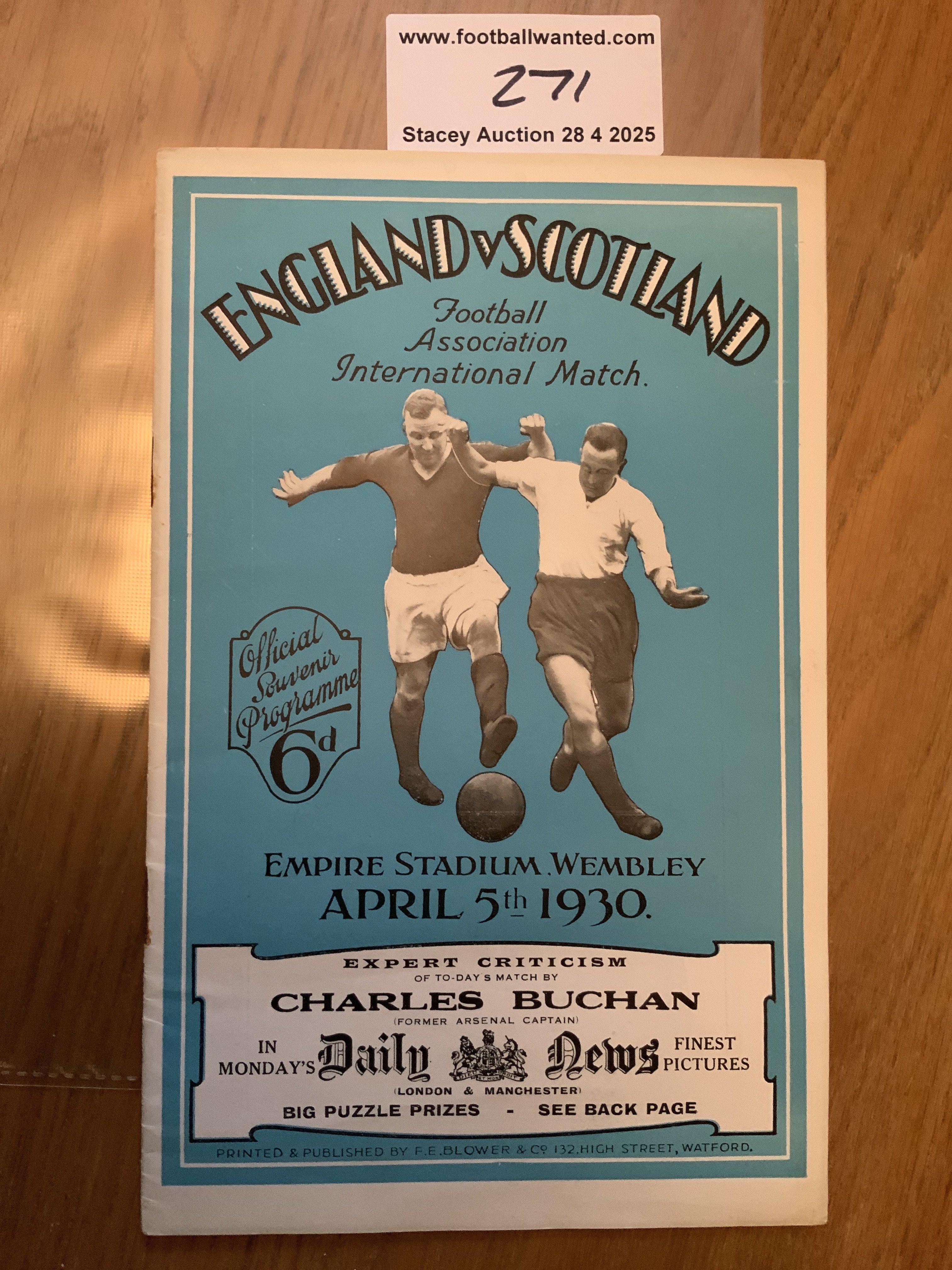 1930 England v Scotland Football Programme: Very good condition programme for full International match played at Wembley. No team changes. Staples rusting but holding firm.