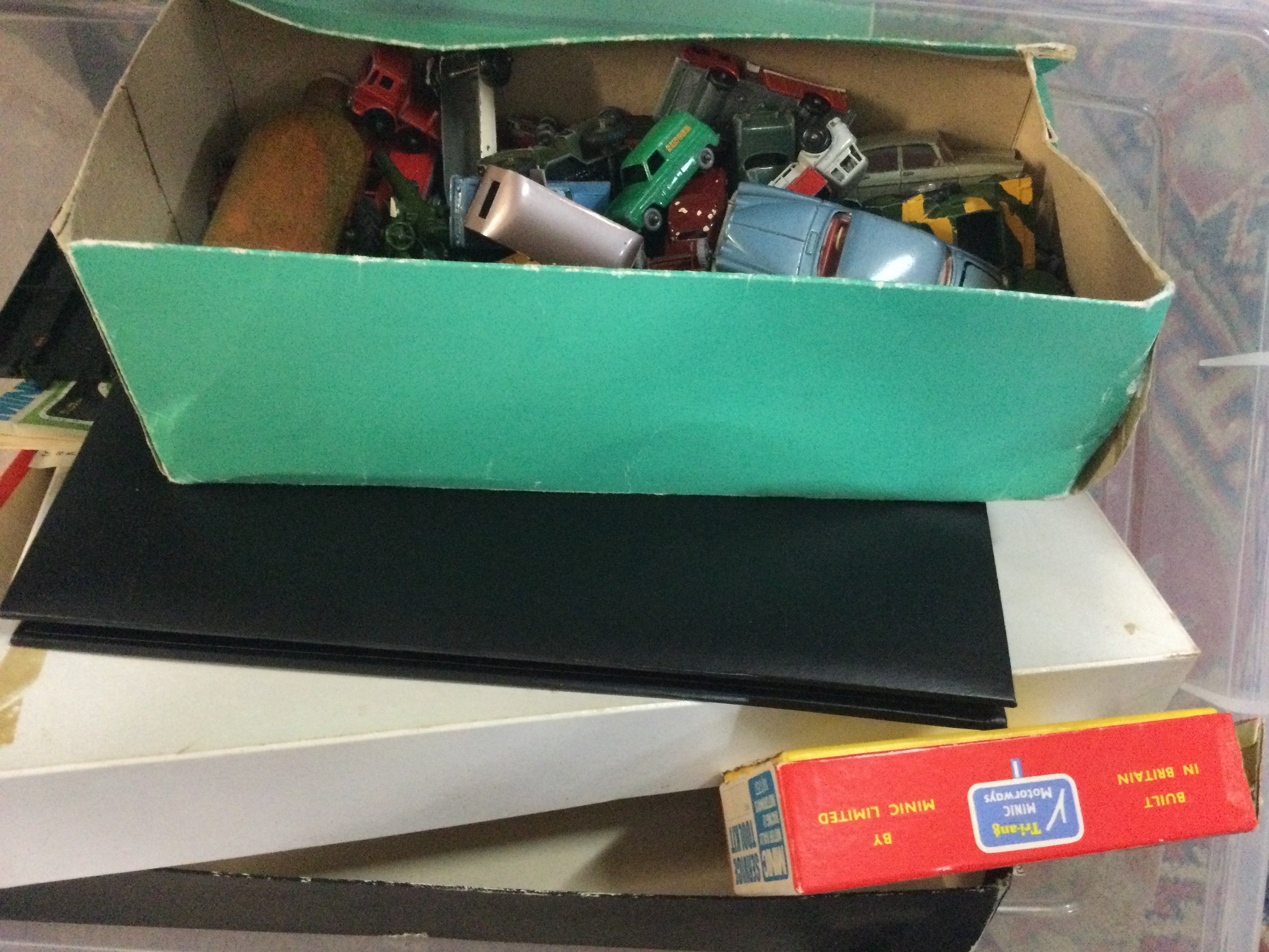 A collection of items including The Princess Diana International Stamp Collection 20th Anniversary Memorial Edition, a range of antique cars, a group of magazines related to cars and 2 toy racetracks