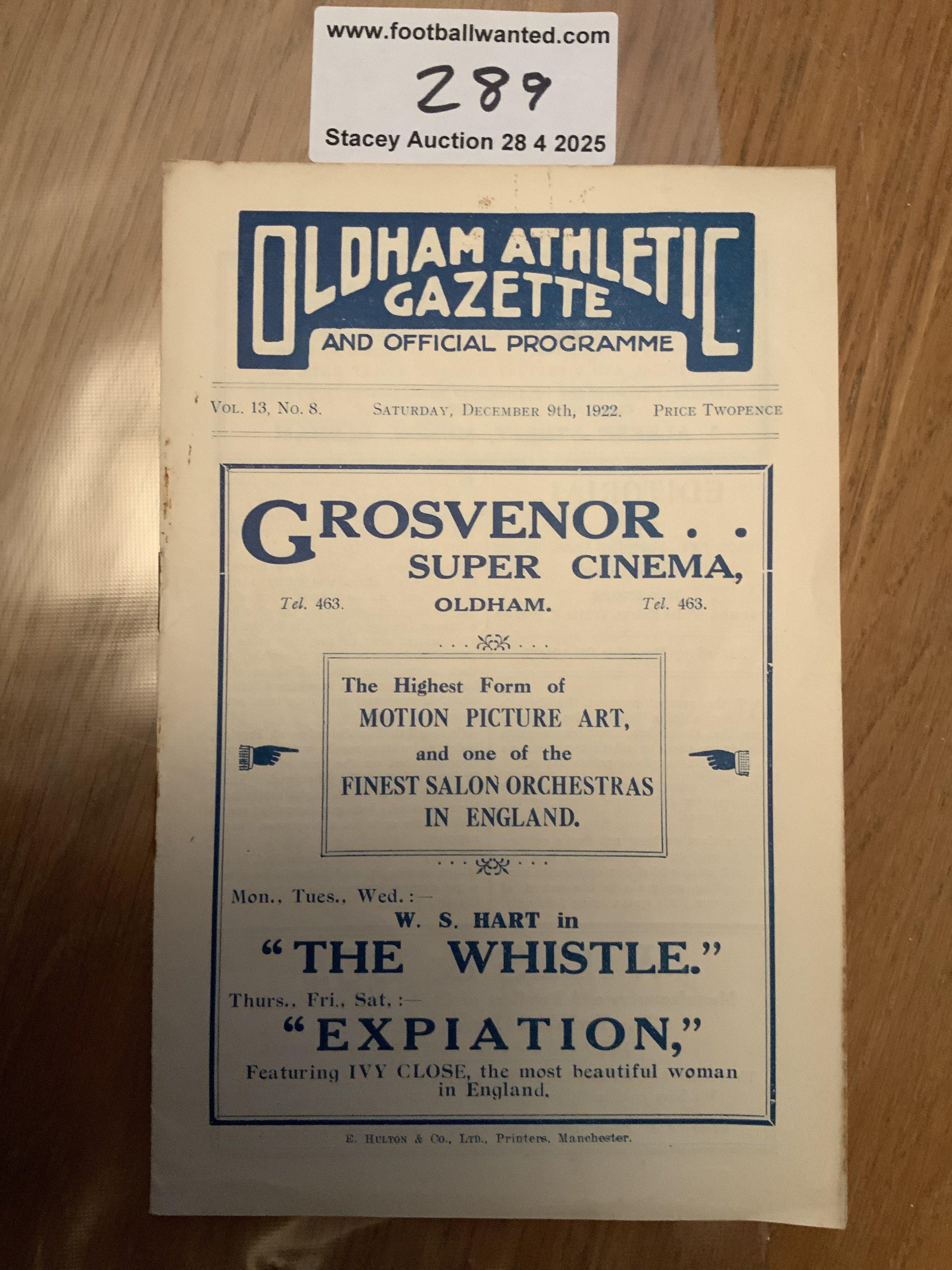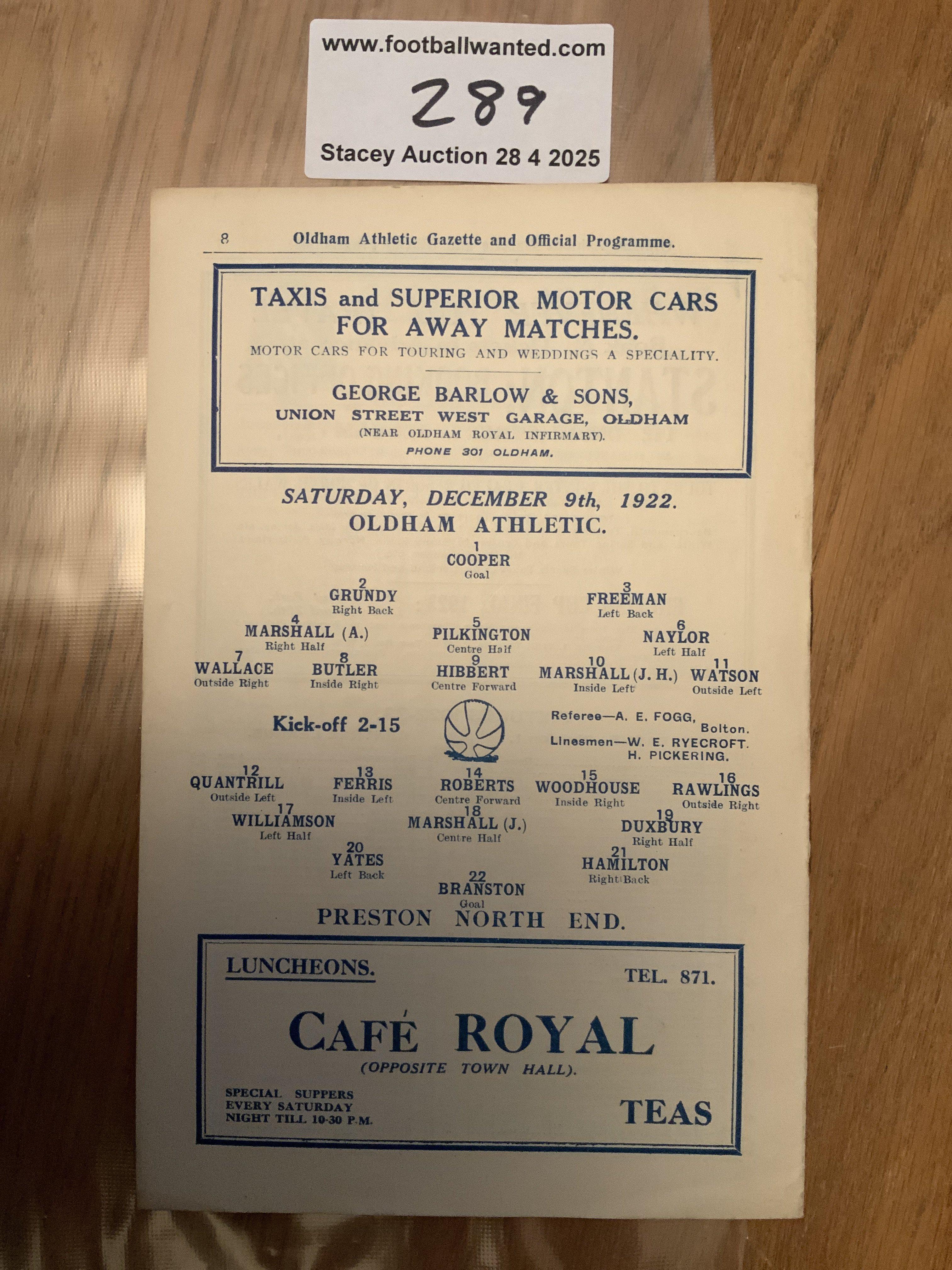 1922 - 1923 Oldham Athletic v Preston Football Programme: Excellent condition programme with no team changes from the season Oldham were relegated from Division One.