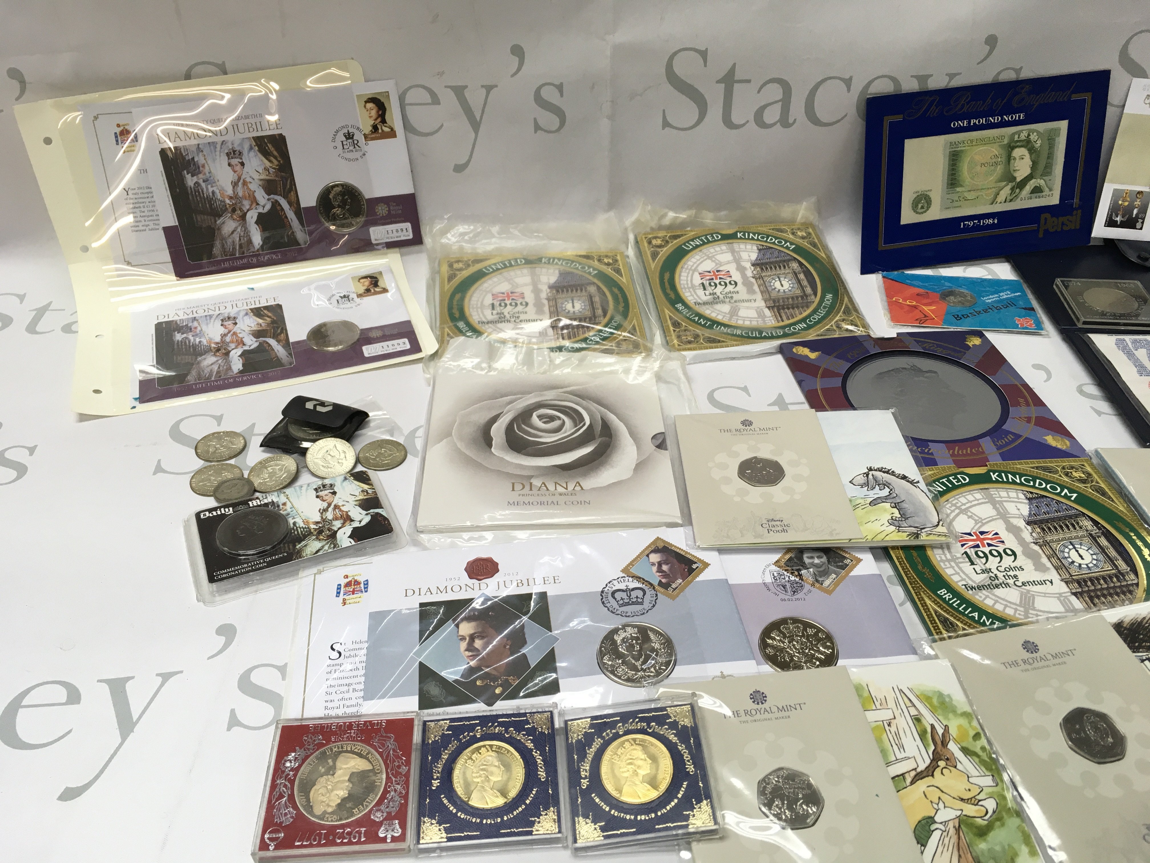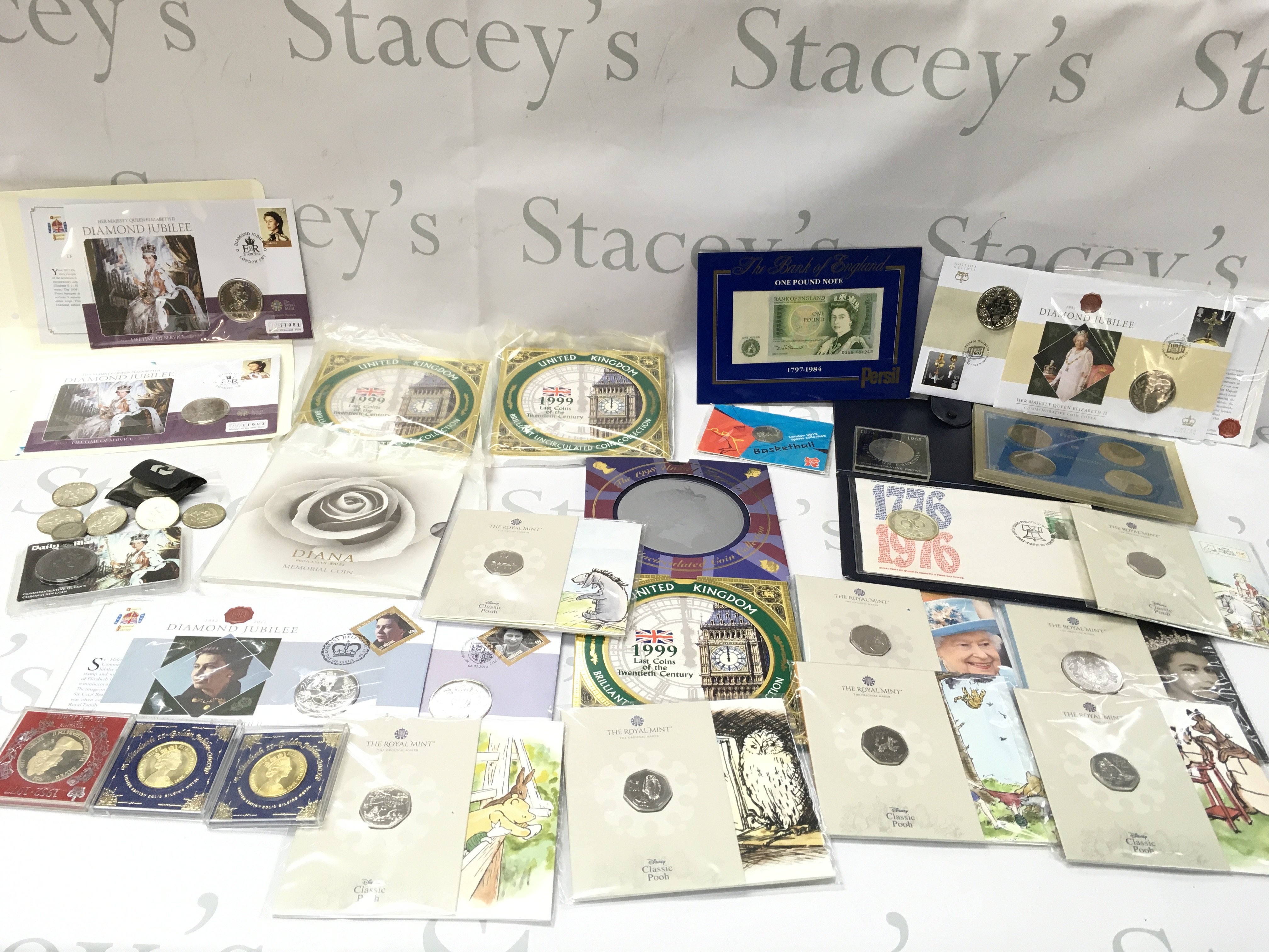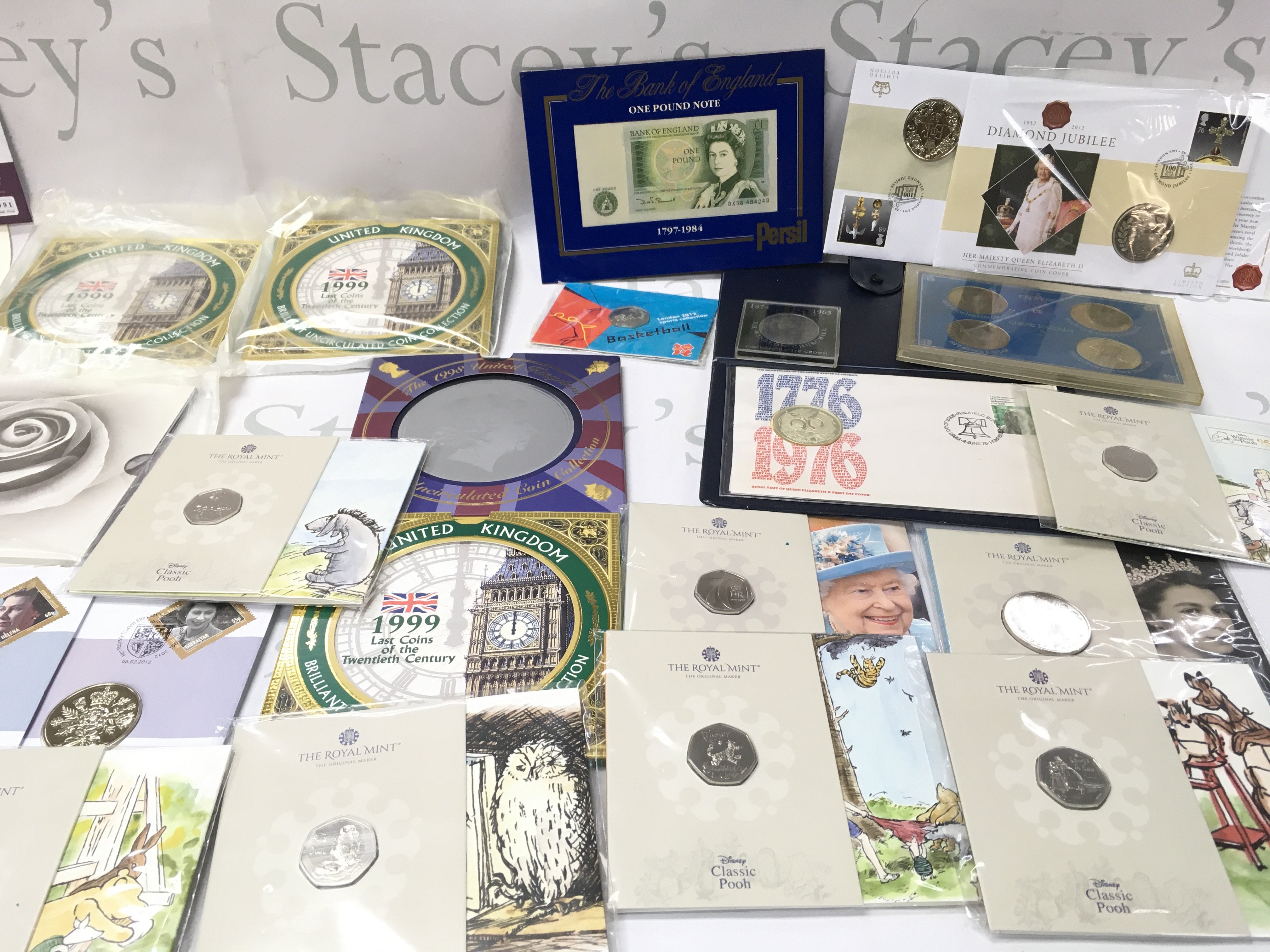 A collection of coinage including uncirculated coin sets and a number of commemorative 50p. Postage B