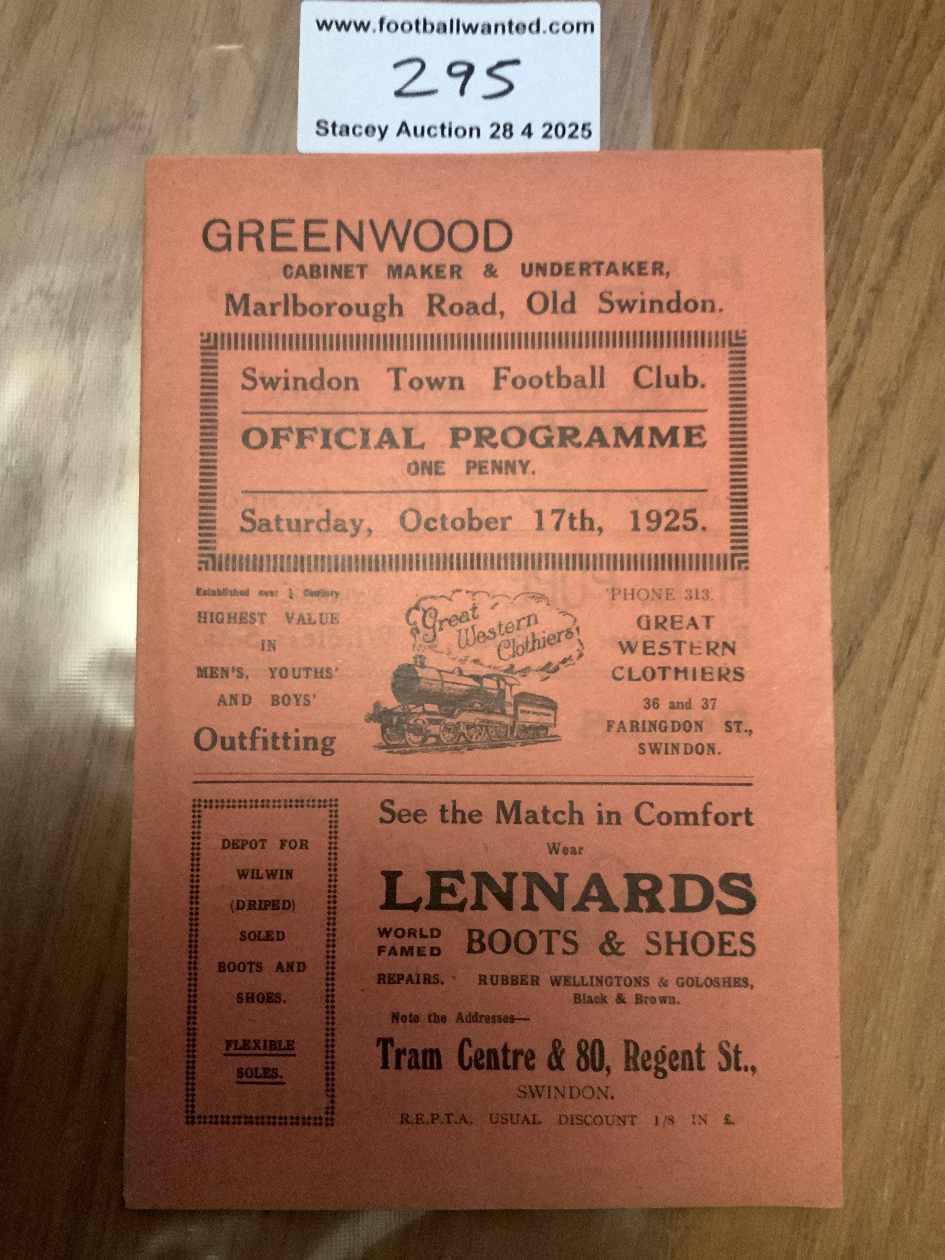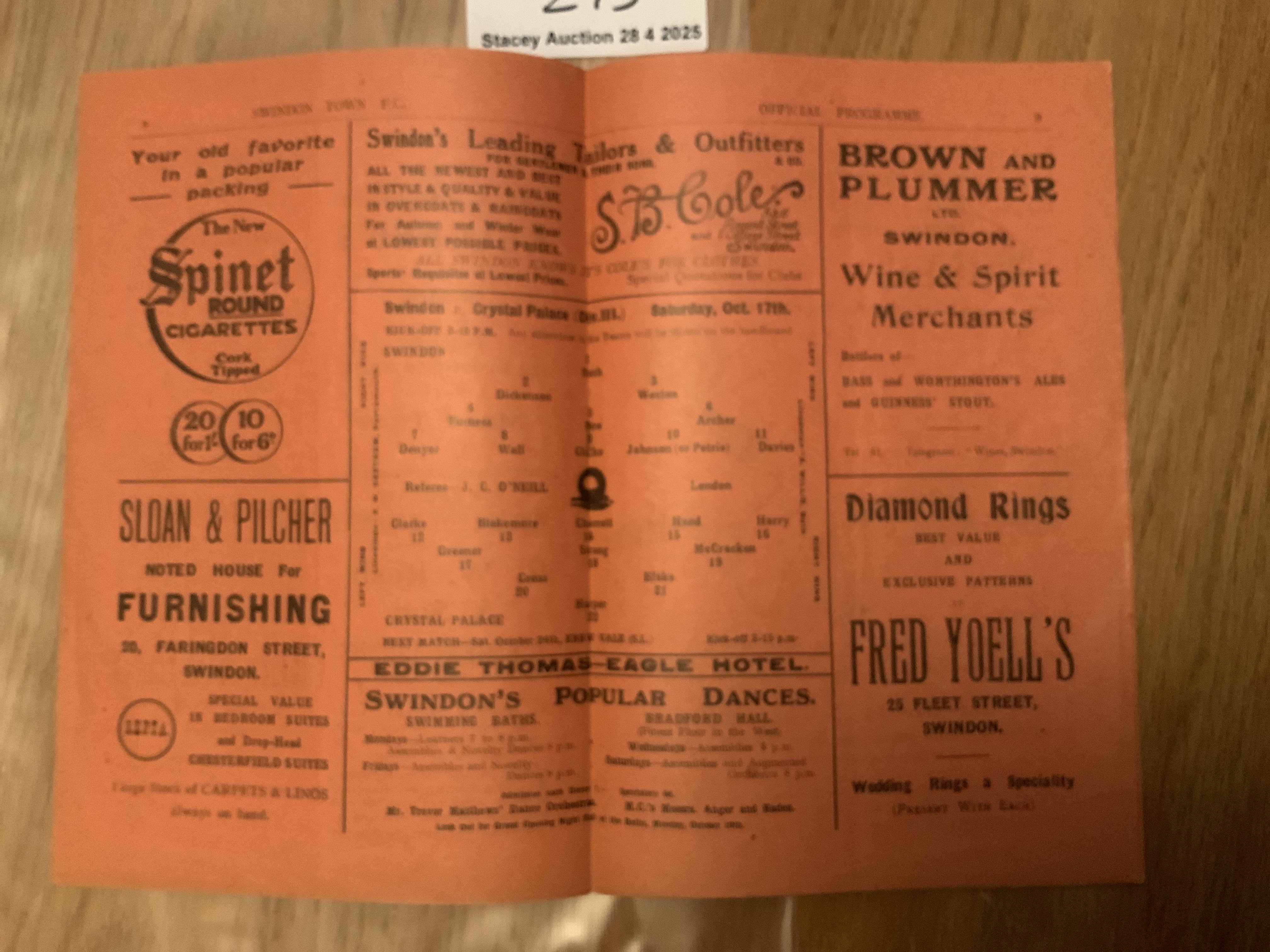 1925 - 1926 Swindon Town v Crystal Palace Football Programme: Excellent condition programme with no team changes. Division 3 South match.