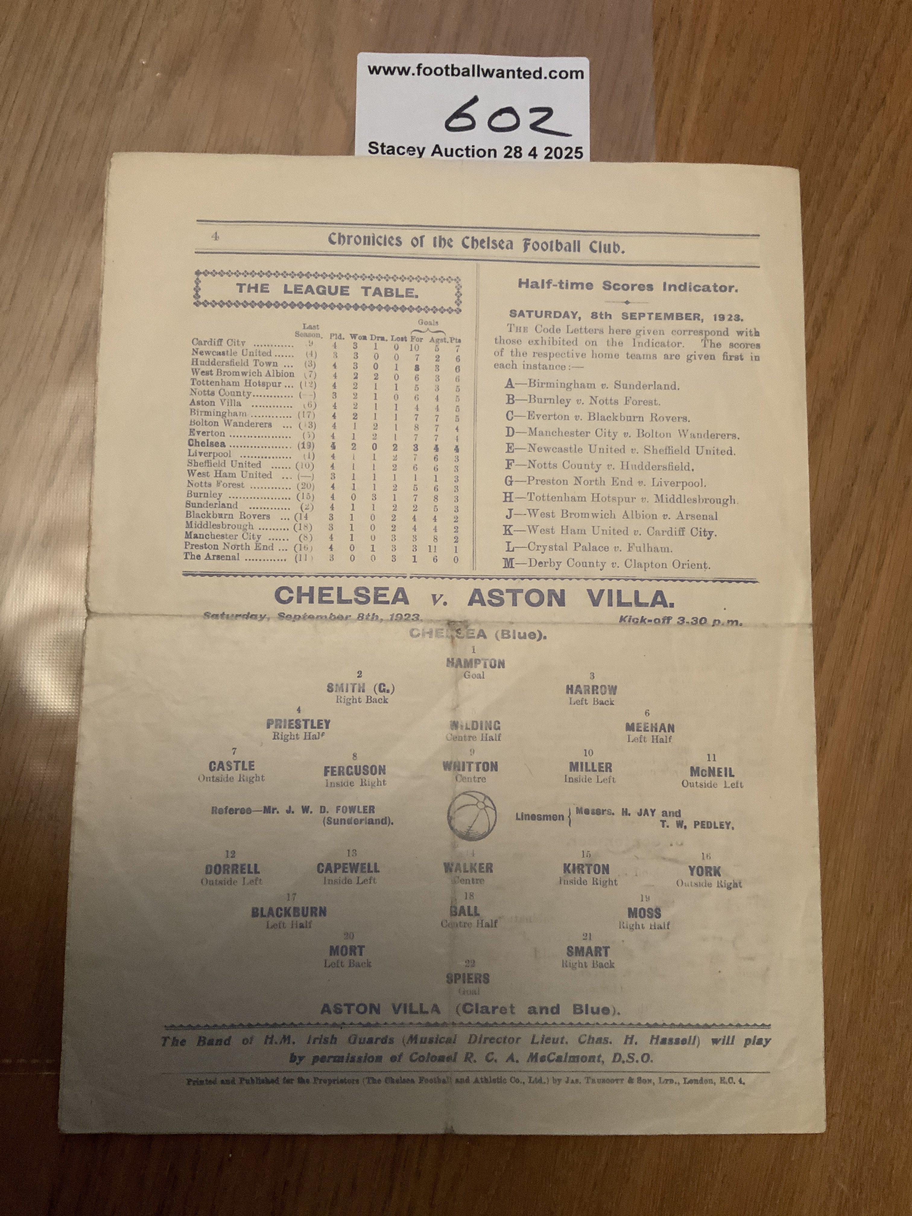 1923 - 1924 Chelsea v Aston Villa Football Programme: Good condition 1st Division programme with no team changes. Folding.