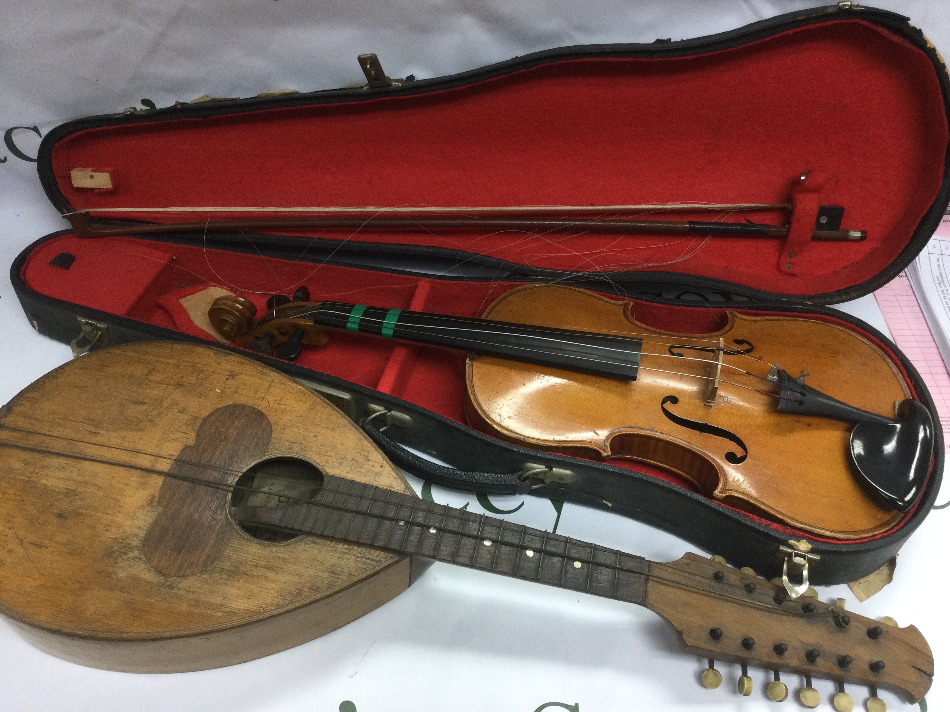 A Giovanni Minieri mandolin and a cased 3/4 size student's violin (2).