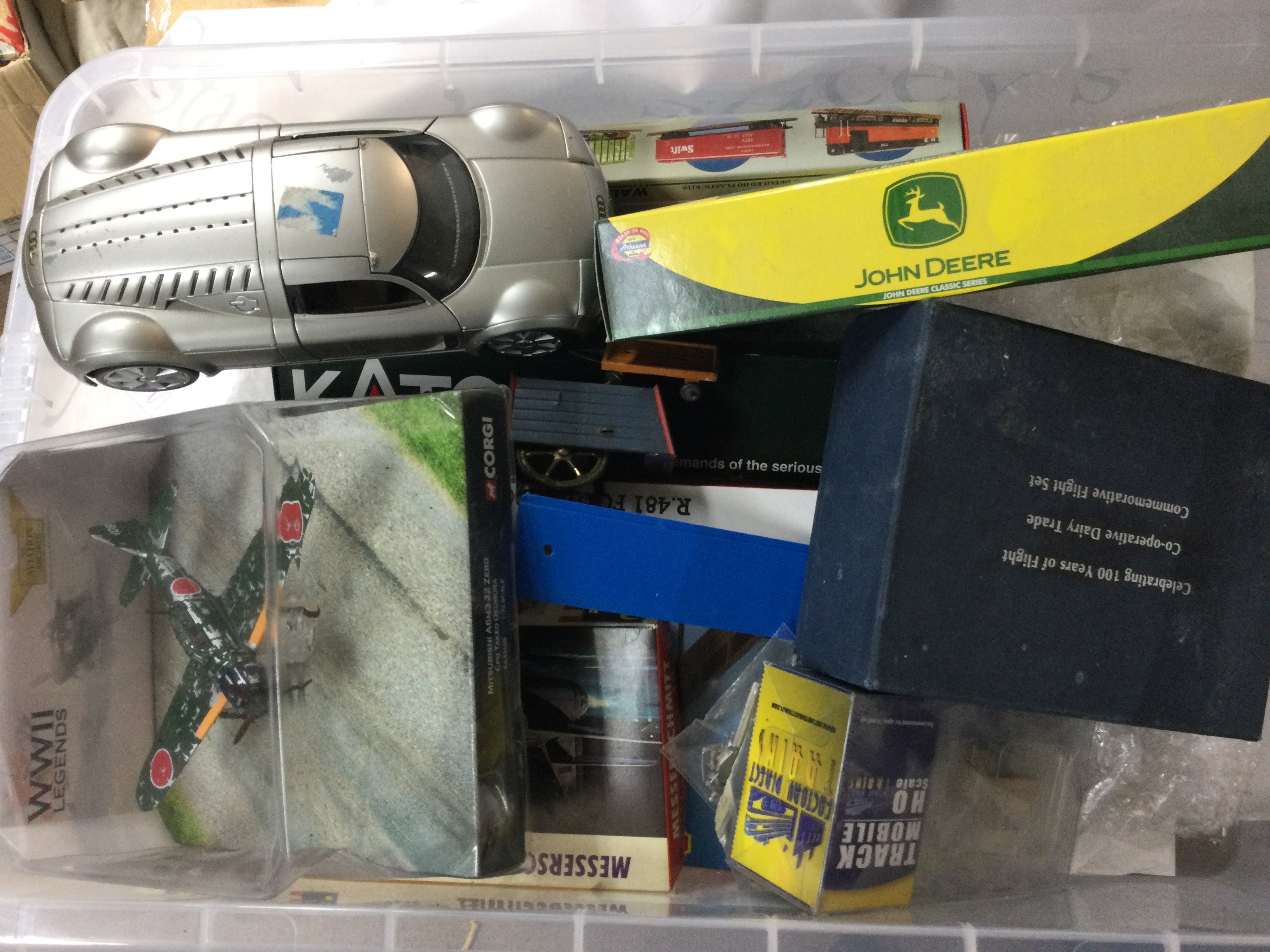 A collection of antique cars, planes and vehicles. Most items still include boxes.
