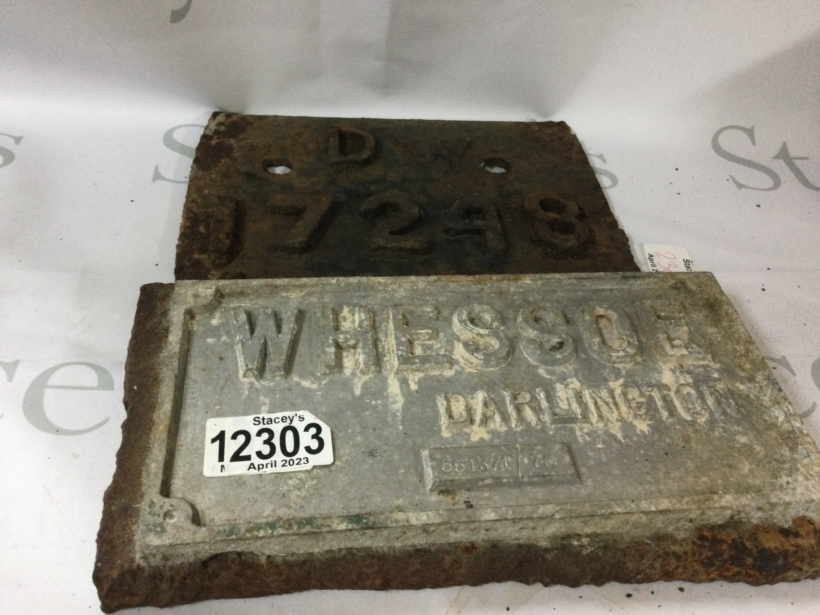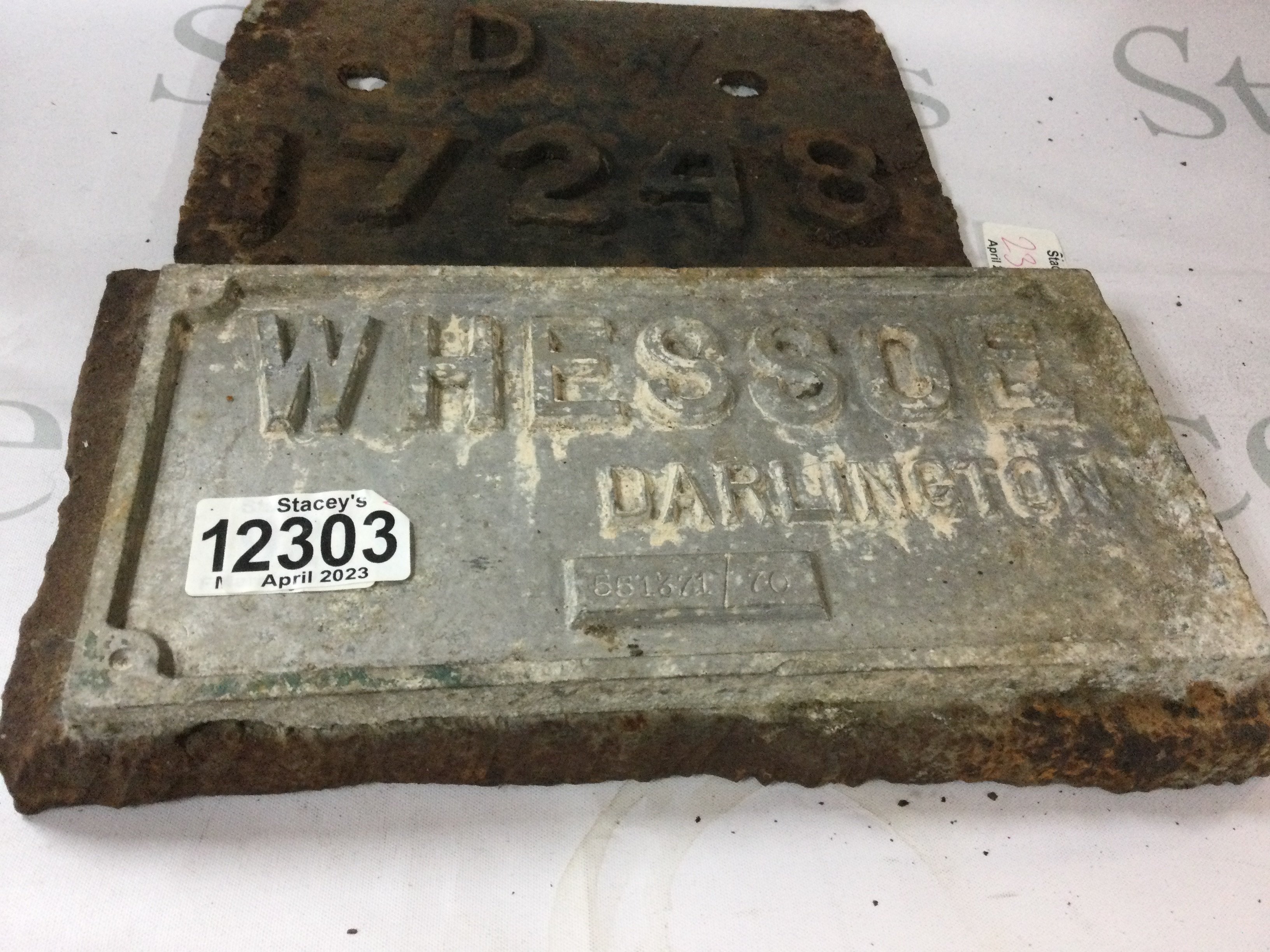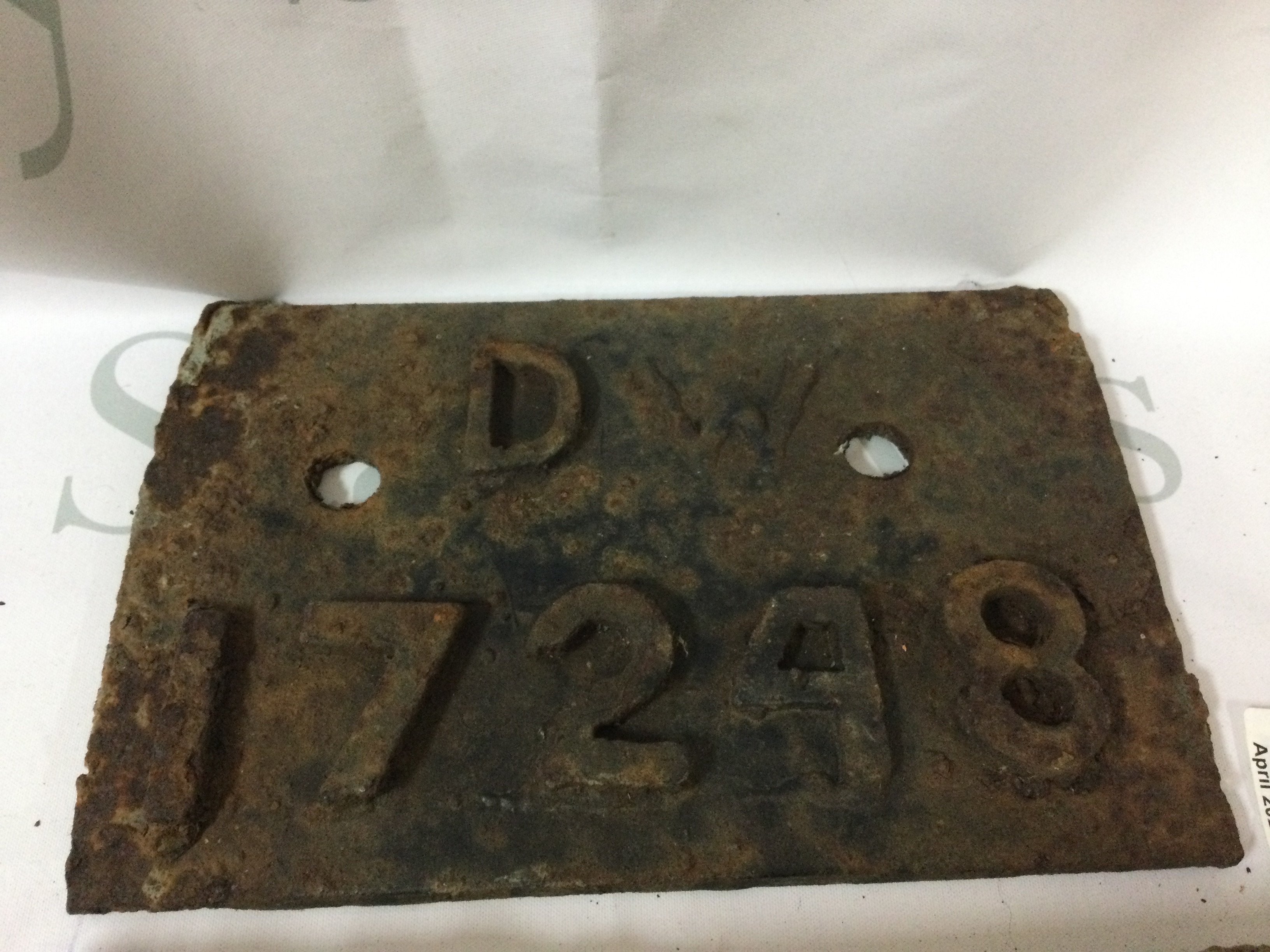 A collection of antique pig money boxes from 1980s NatWest. Includes all 5 of the pigs and 2 extra small pigs. Also includes a vintage license plate and an antique brick.