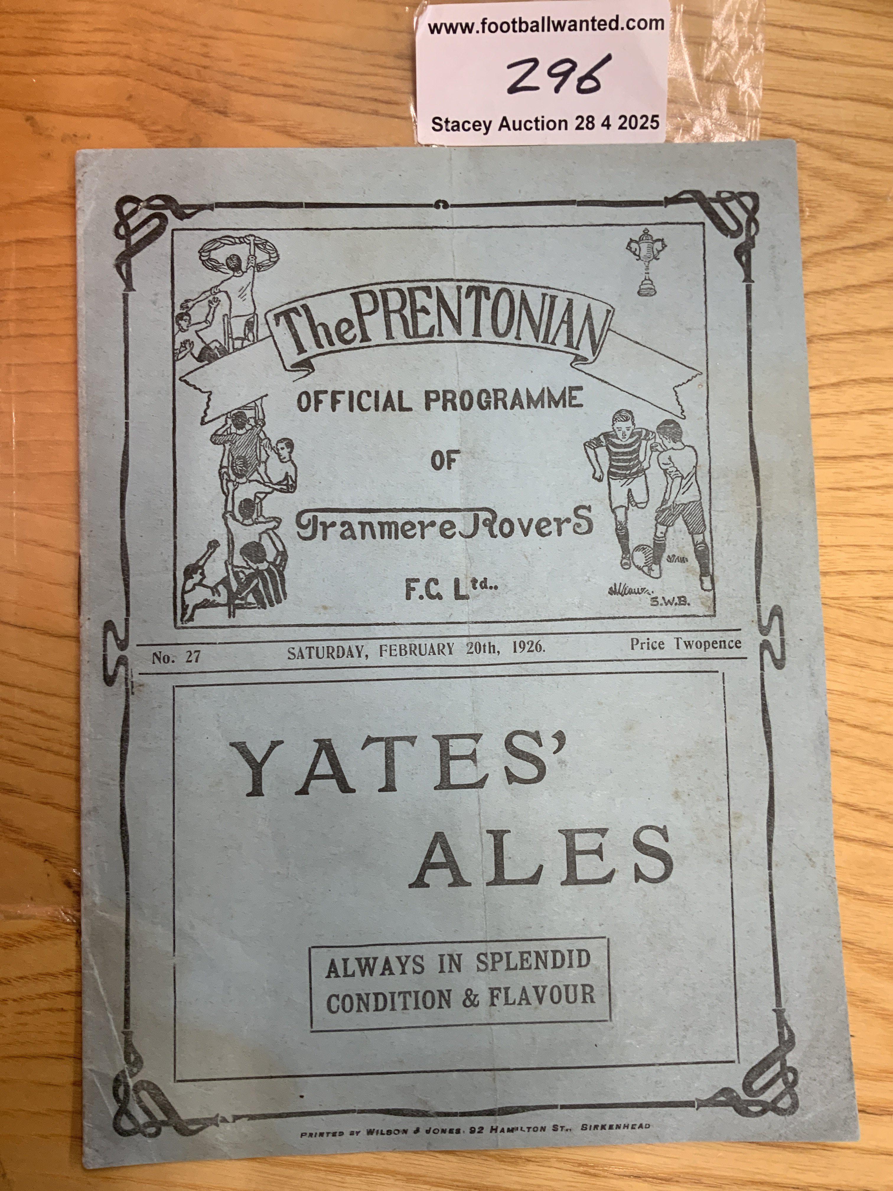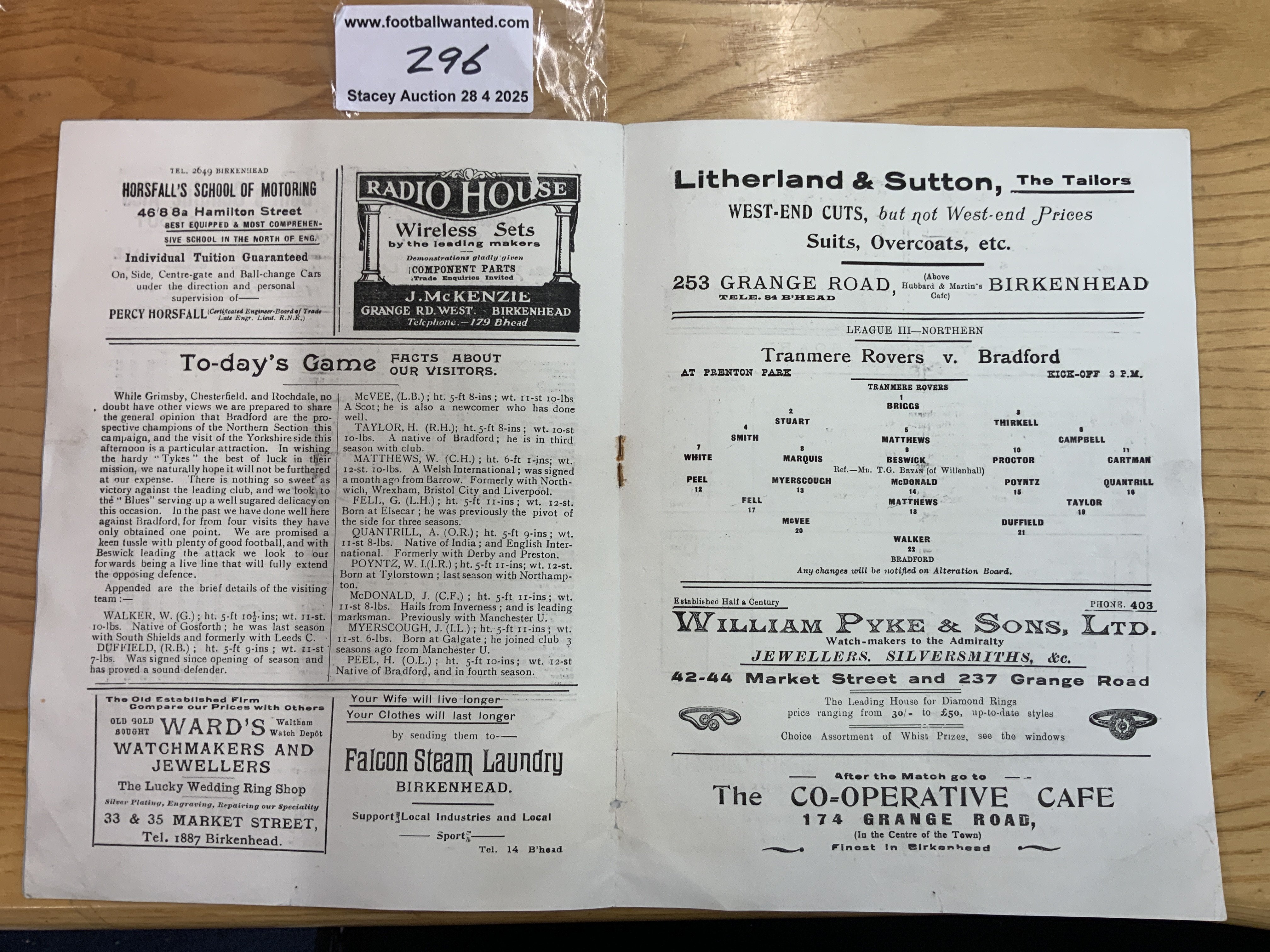 25/26 Tranmere Rovers v Bradford Park Avenue Football Programme: Excellent condition with no team changes.