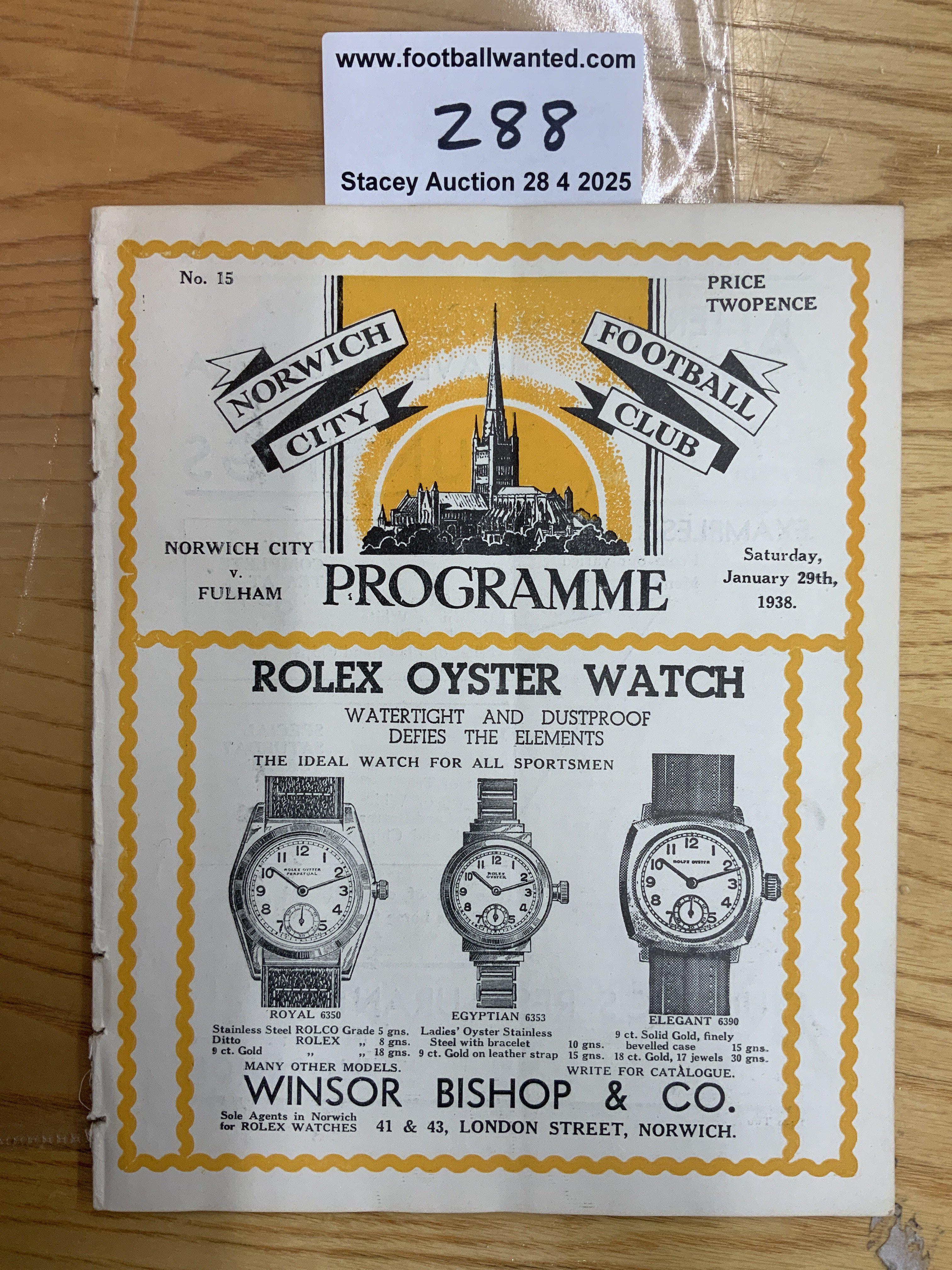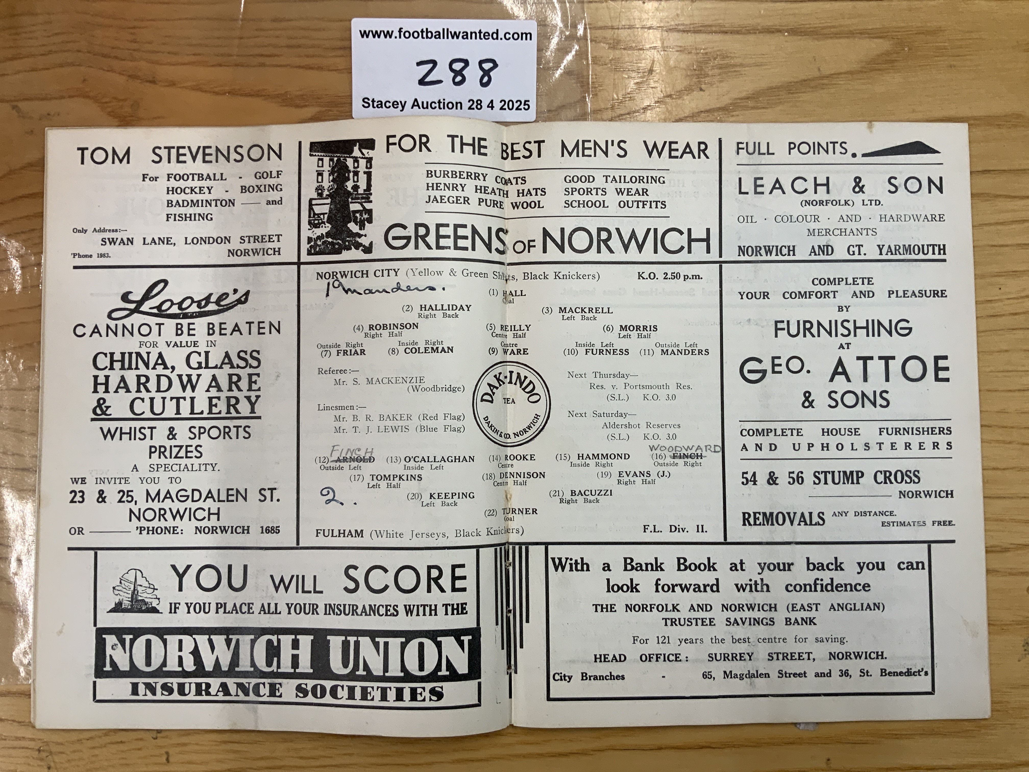 37/38 Norwich City v Fulham Football Programme: Excellent condition with writing to team page.