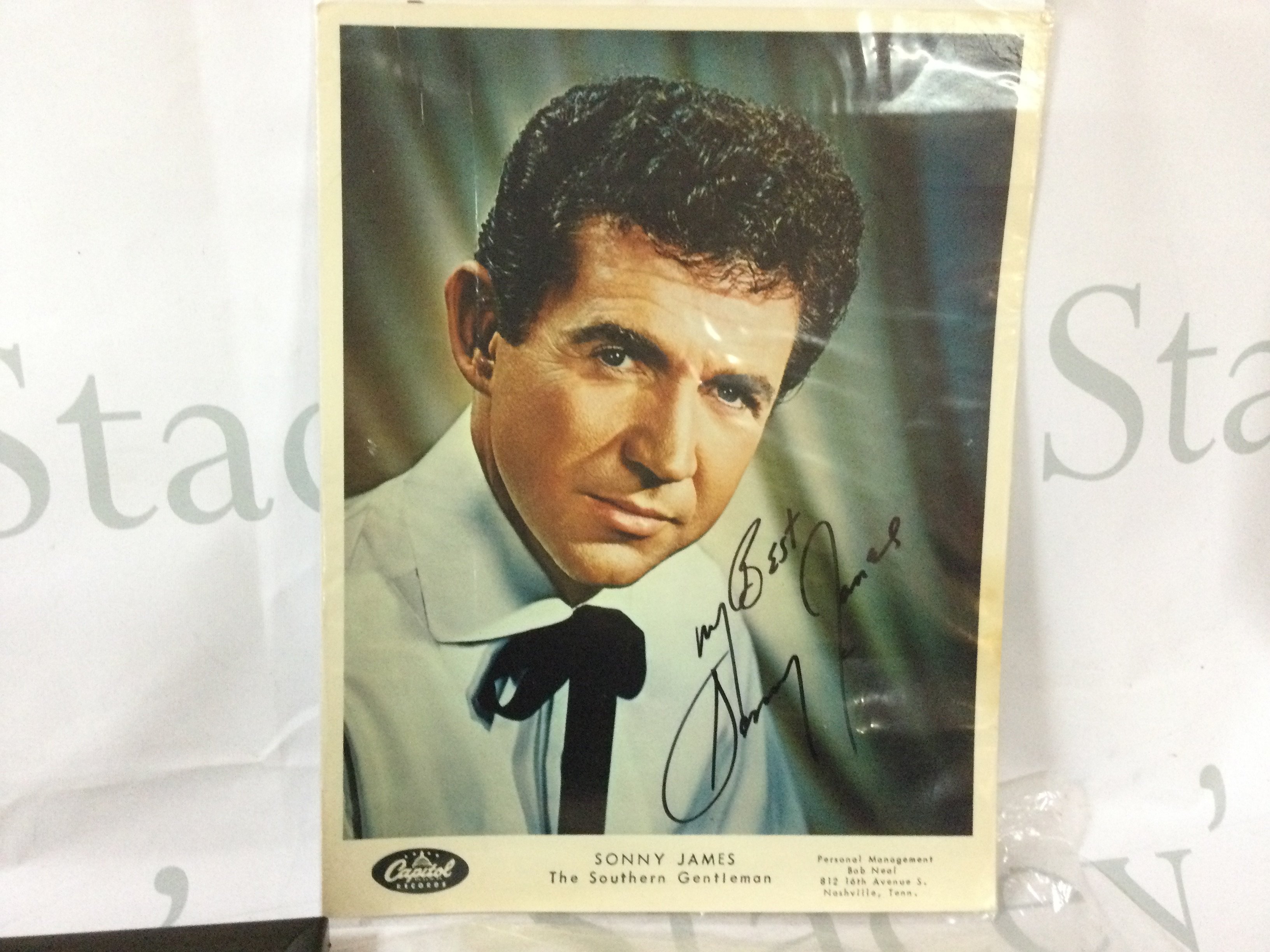 A collection of autographs from people like Yancy Butler, Jimmy Wakely, Jane Russel, Sonny James, Jack Scott