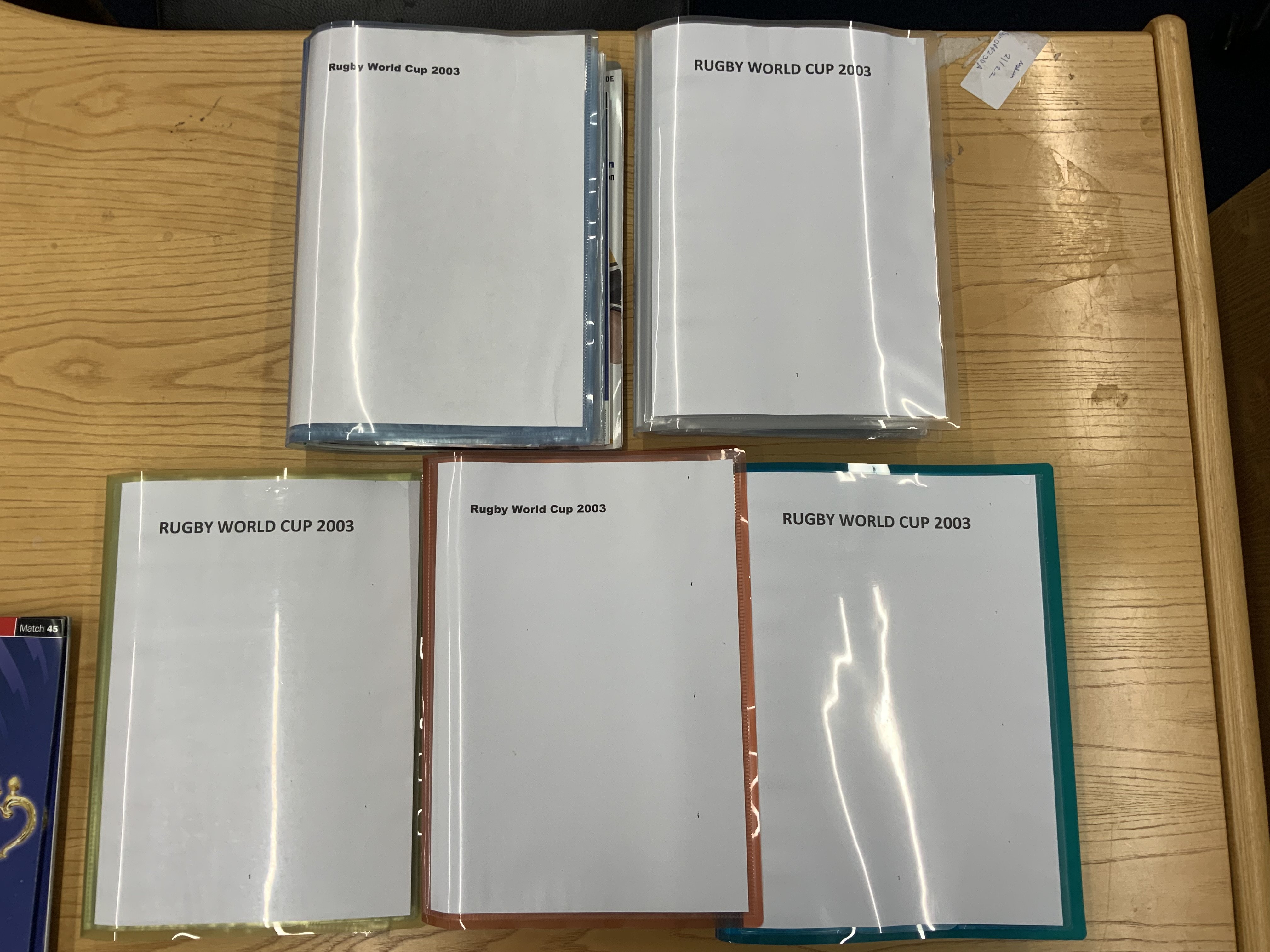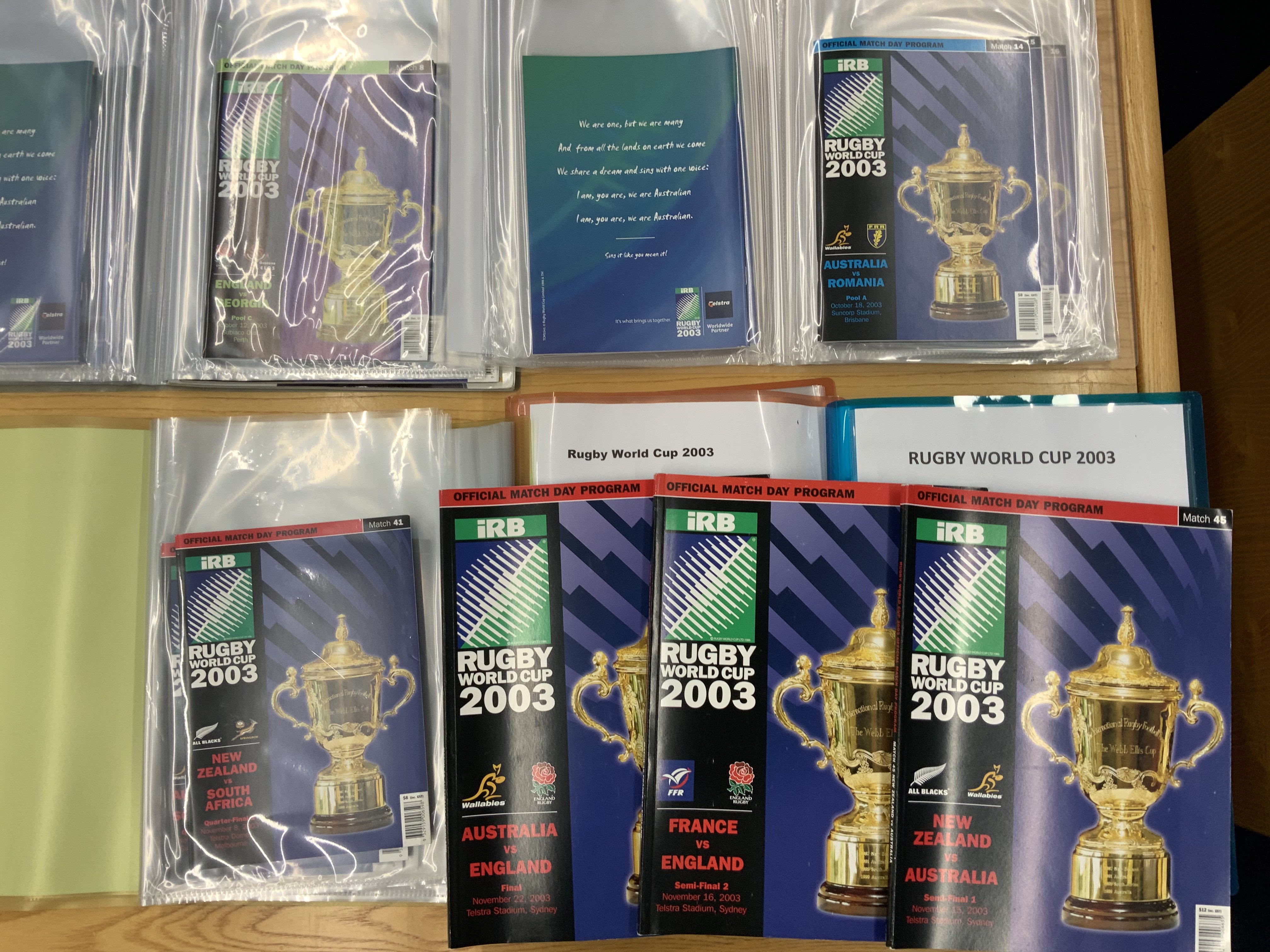 2003 Rugby World Cup Complete Programme Collection: All 48 programmes which represents a programme for every match. The semi finals and final in which England famously beat Australia are large programmes the other 45 are smaller and kept neatly in collectors folders. Incredibly this comprehensive collection has instructions to sell. Excellent. (48)