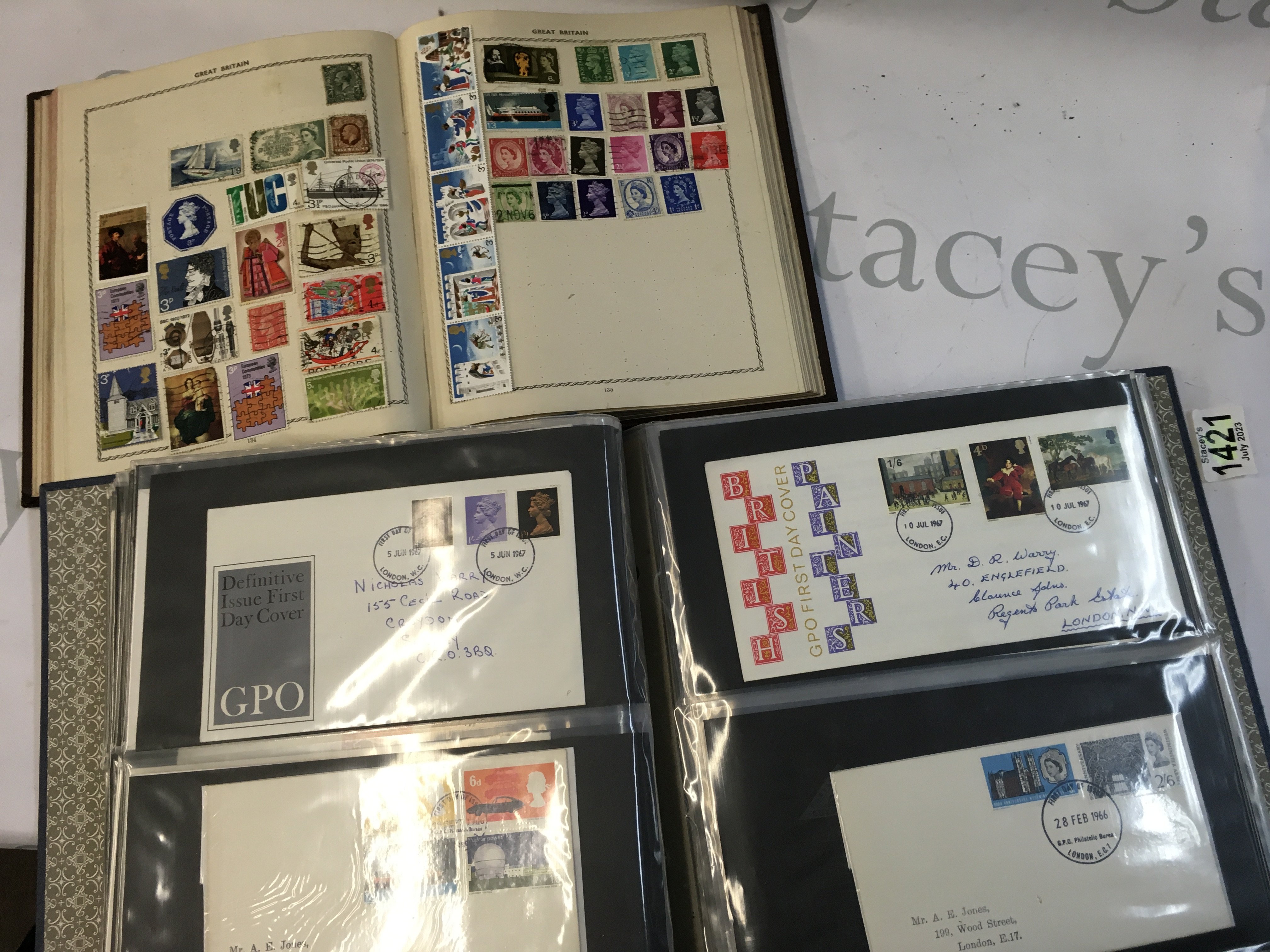 A Collection of first day cover albums and a stamp album containing GB stamps and some world.