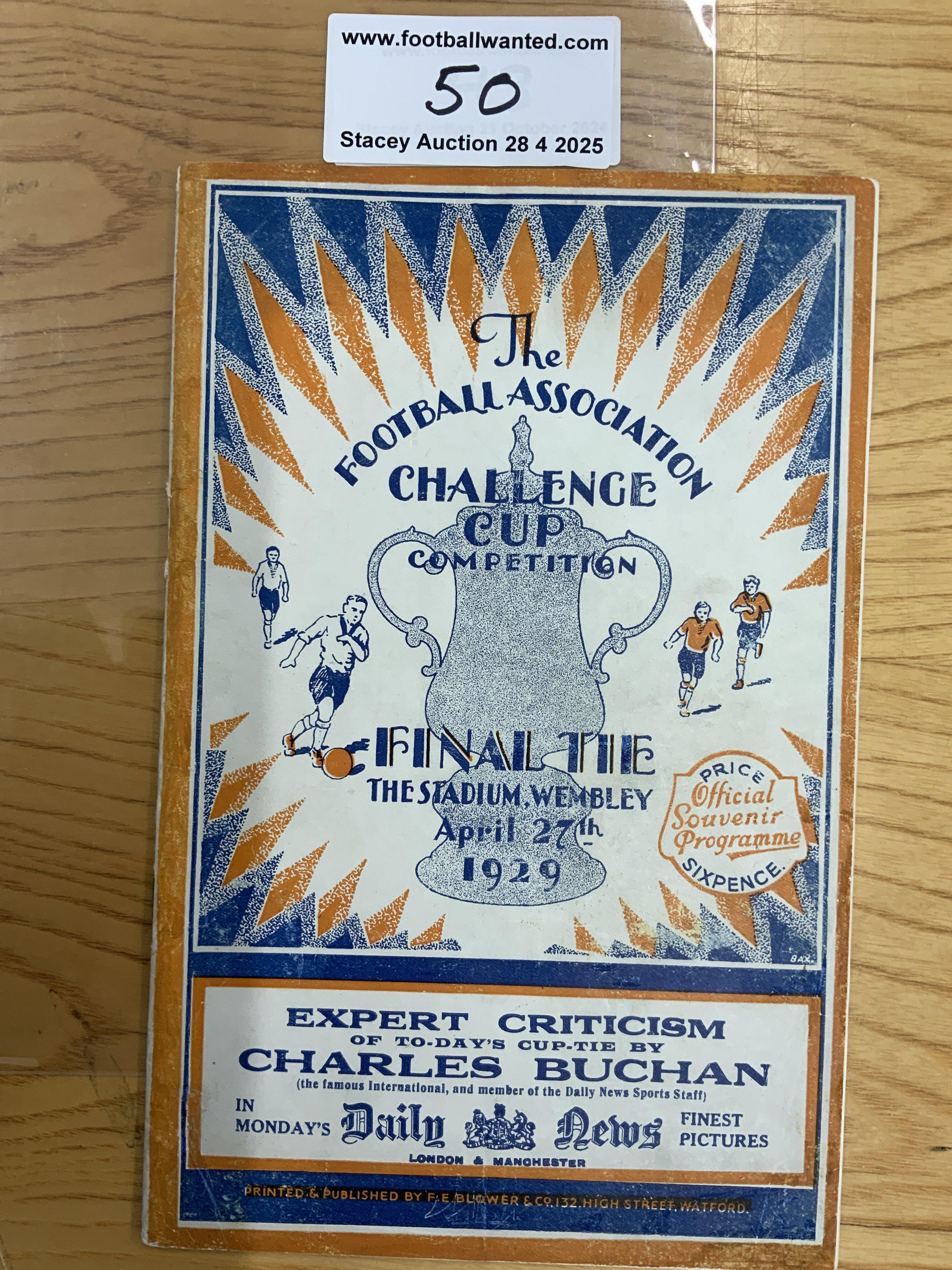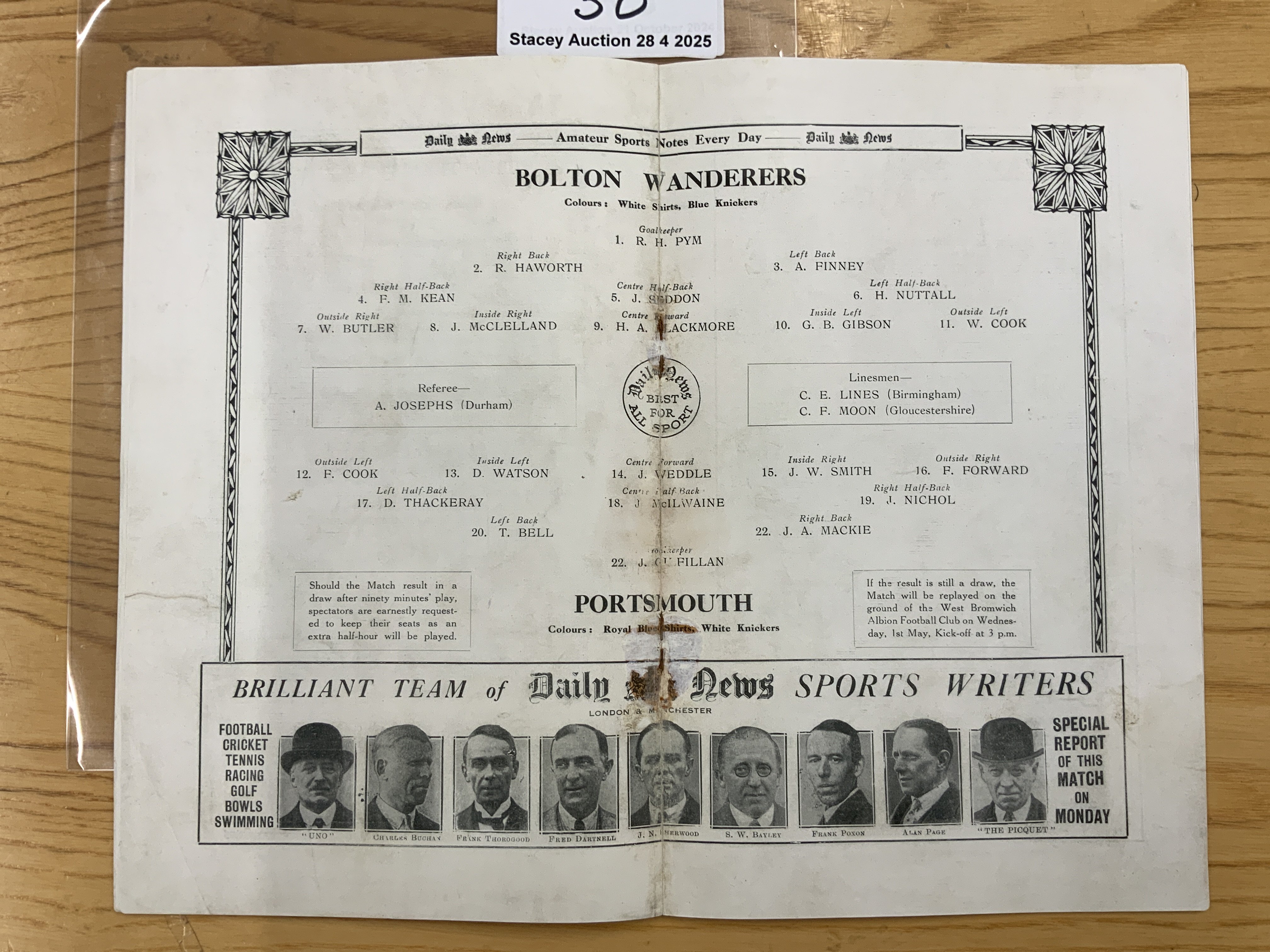 1929 FA Cup Final Football Programme: Bolton v Portsmouth in good condition with no team changes. Professional repair to centre page staple area.