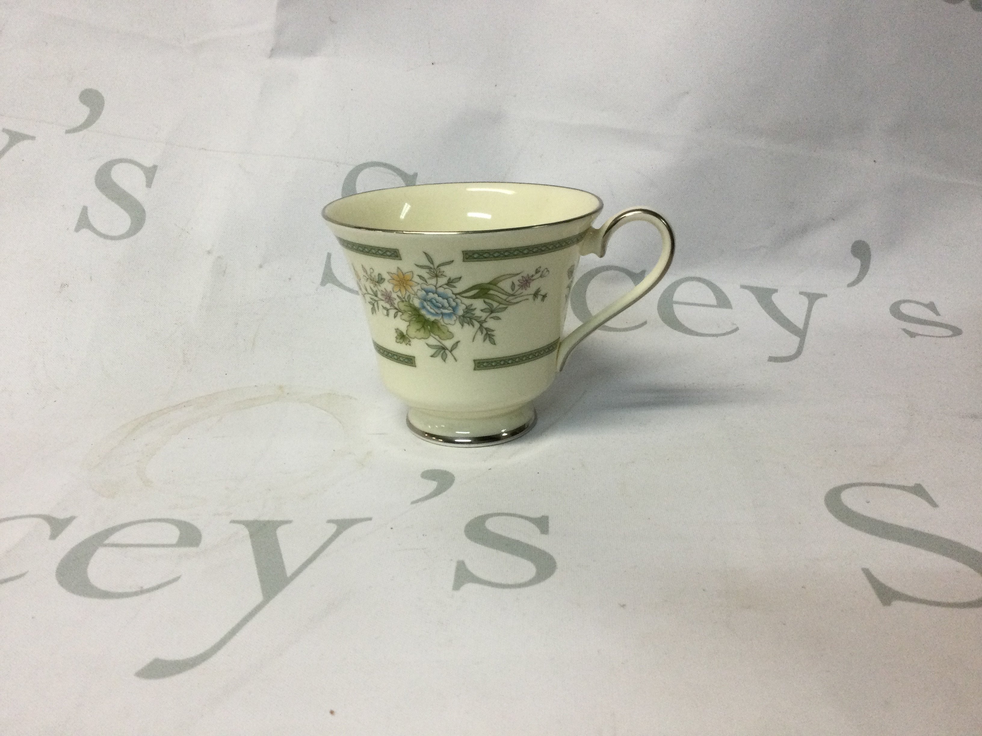 A bag including a collection of antique plates, a Royal Doulton antique mug.