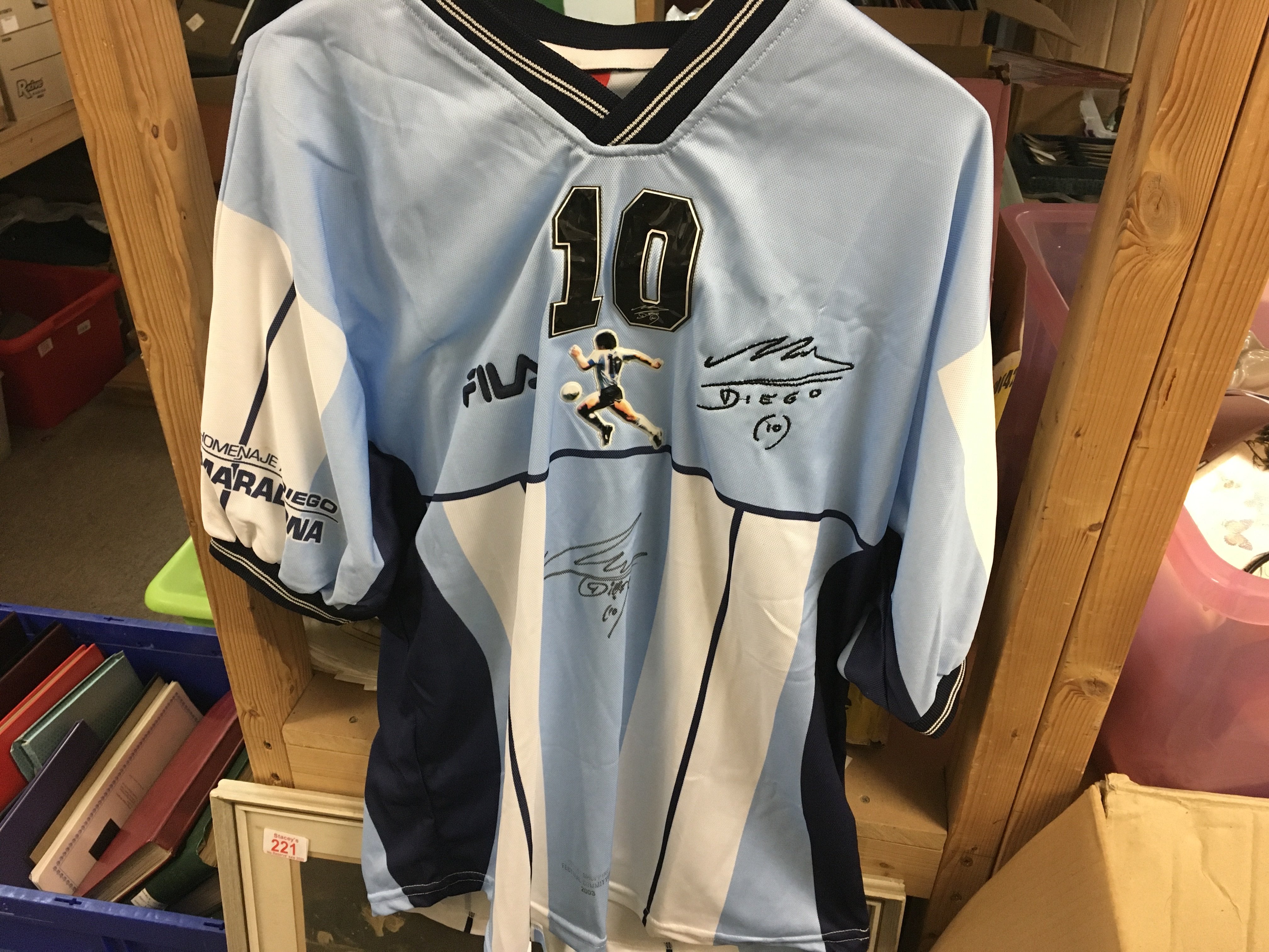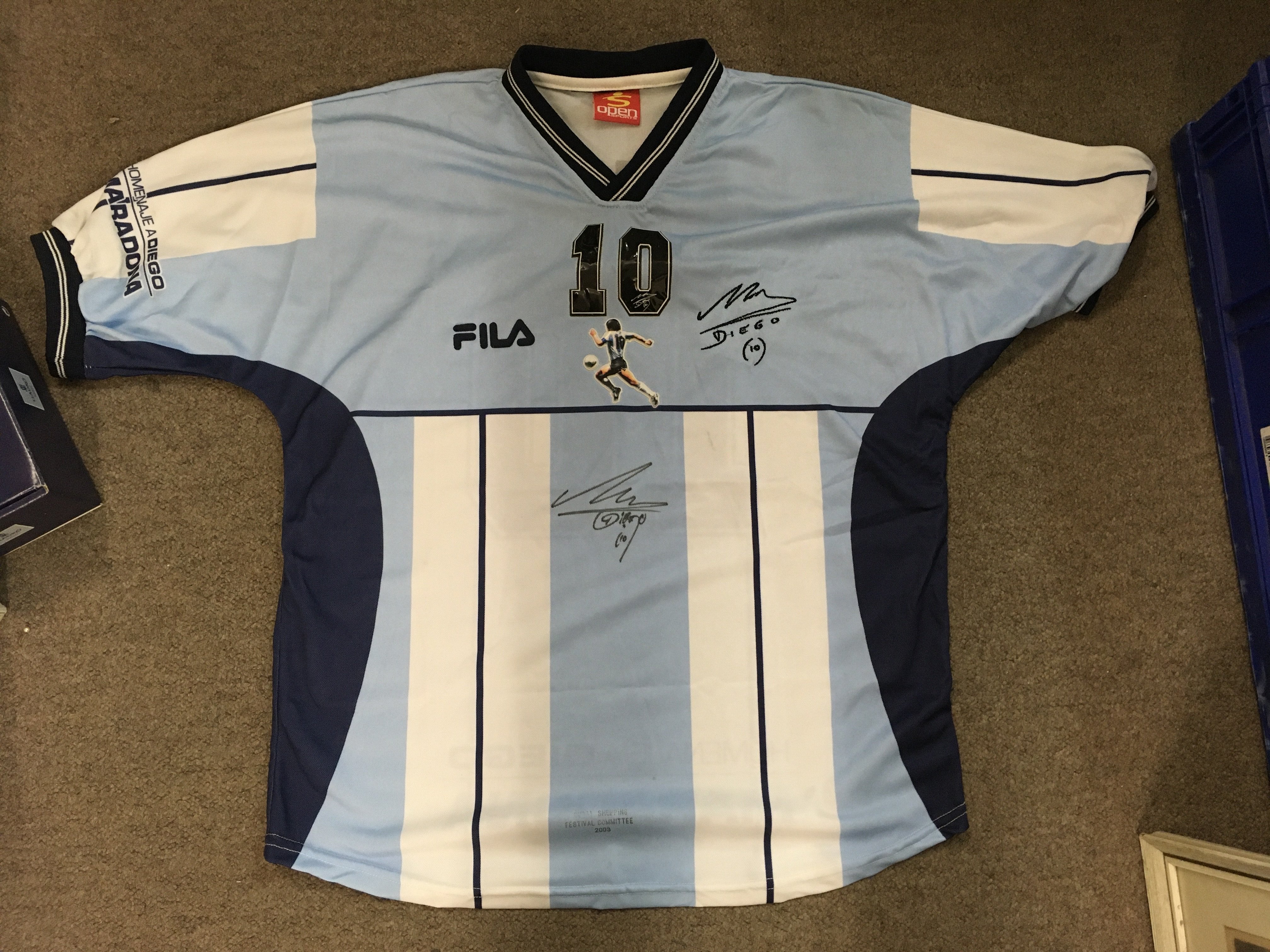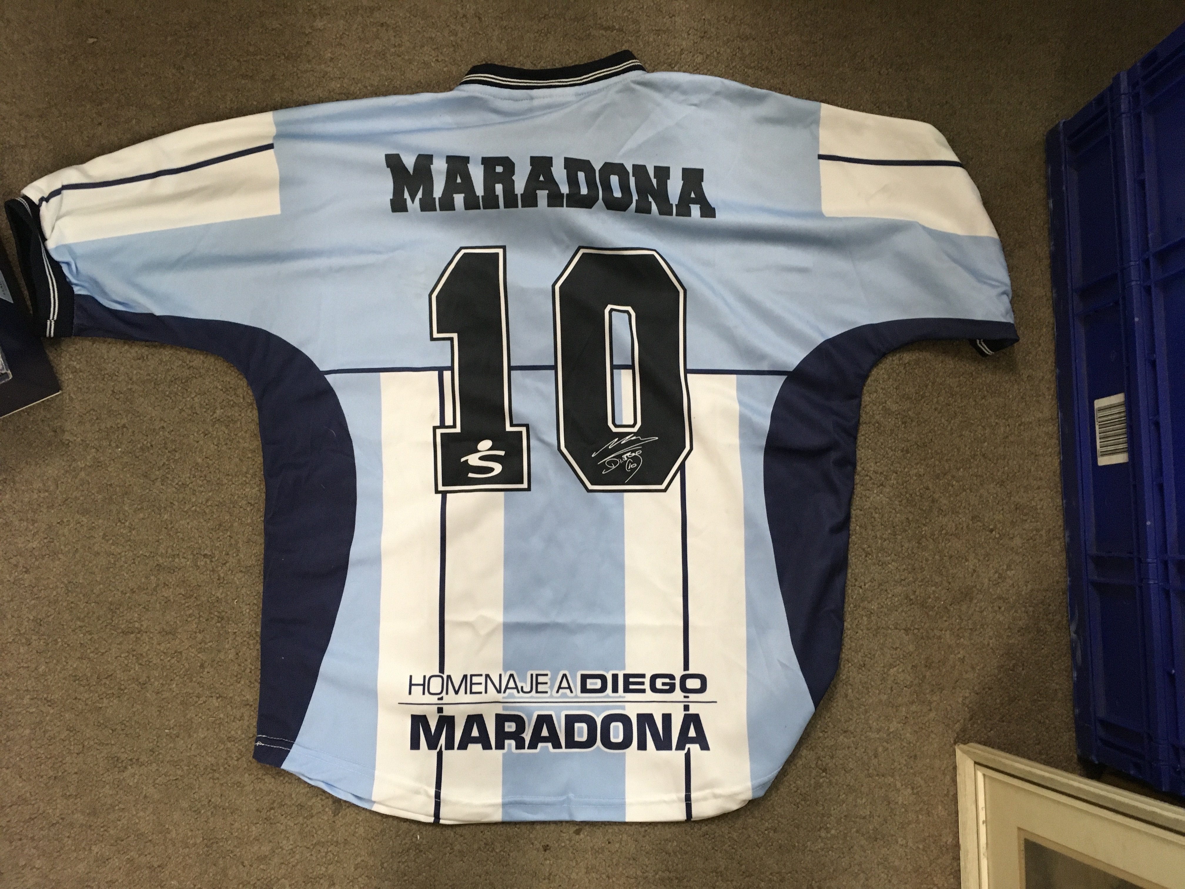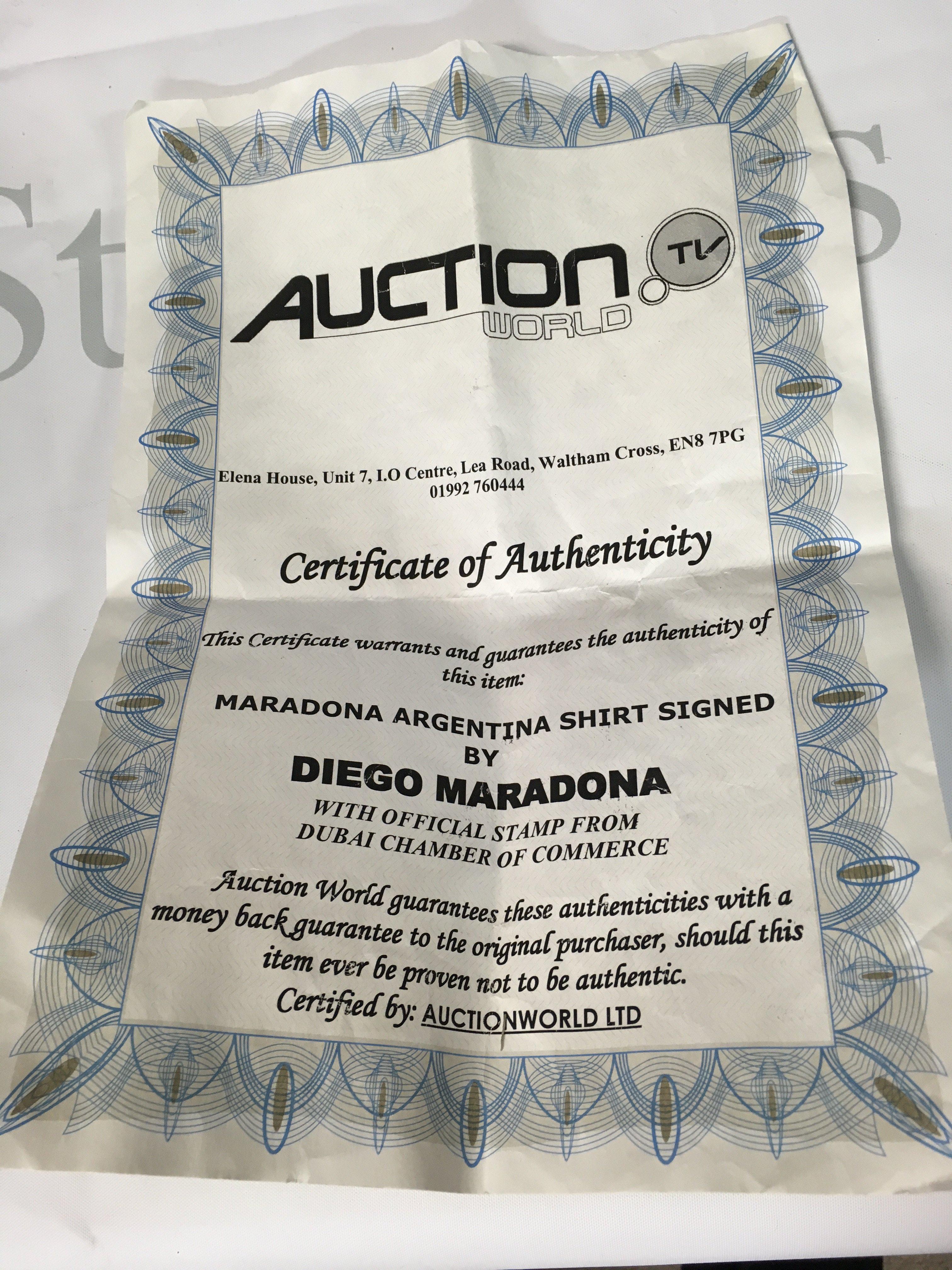 A signed Diego Maradona shirt, with a certificate of authenticity.