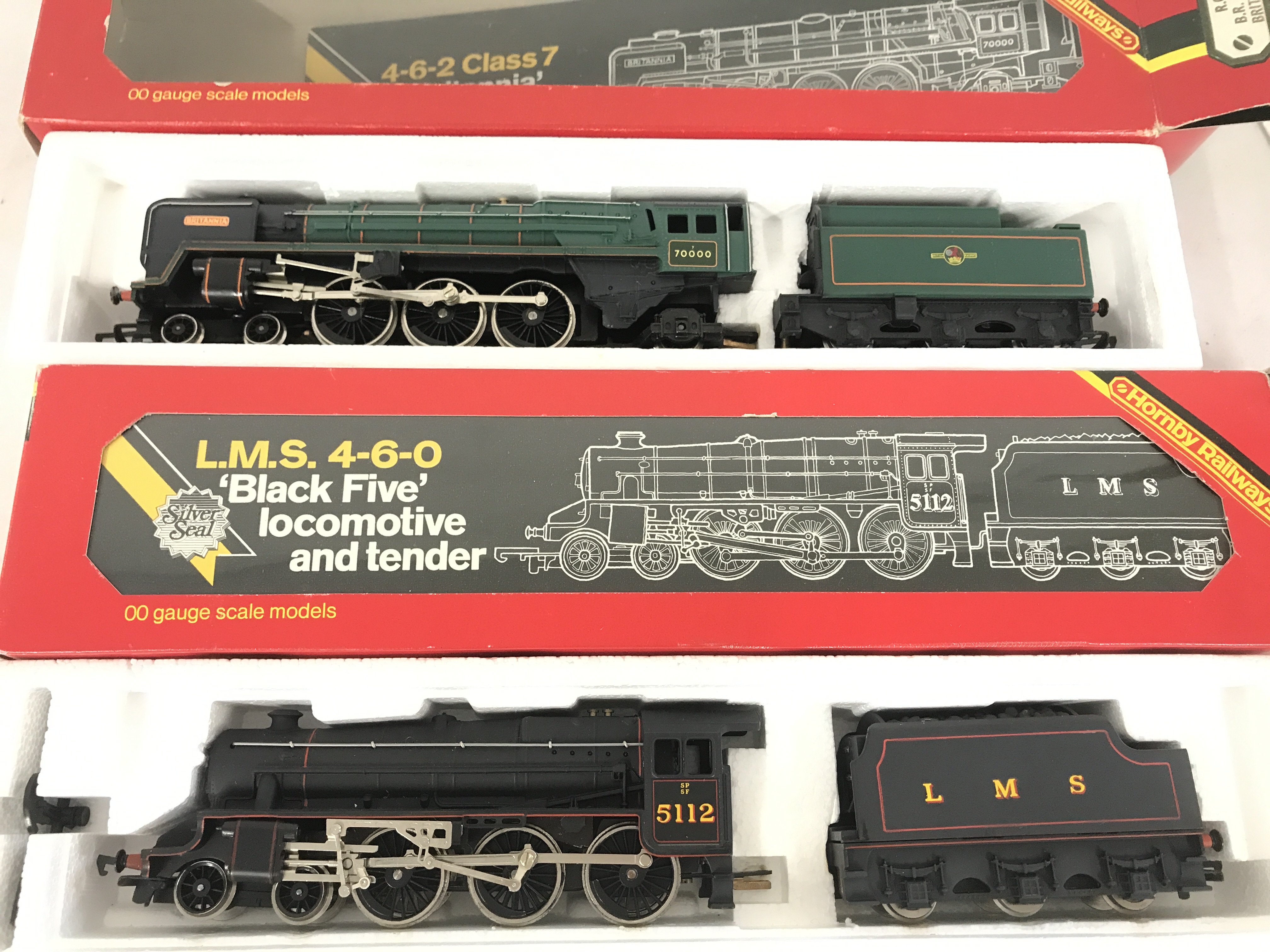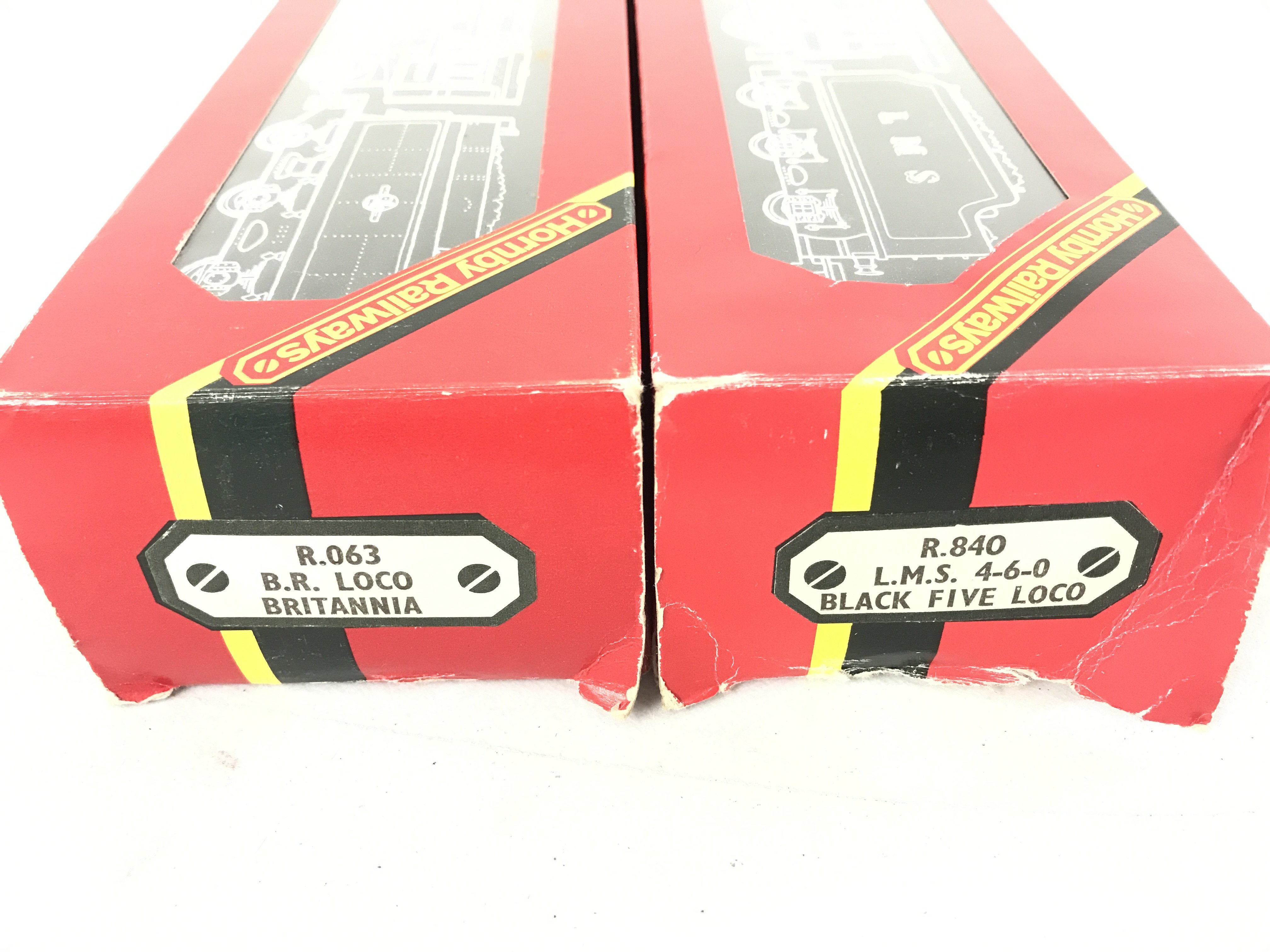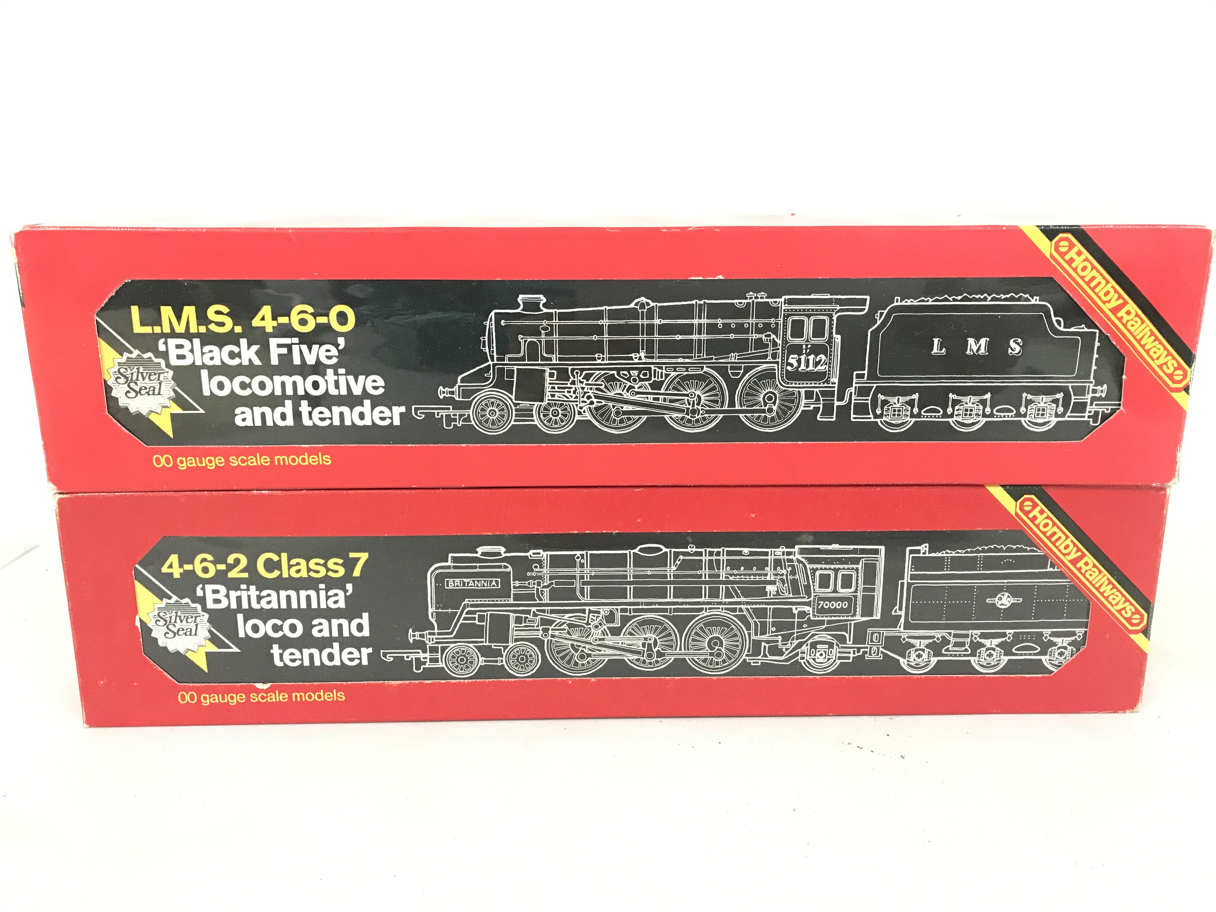 2 X Boxed Hornby 00 Gauge Locomotives a LMS 4-6-0 Black Five Locomotive and Tender #R.840 and a 4-6-2 Class 7 Britannia Locomotive and Tender #R.063.