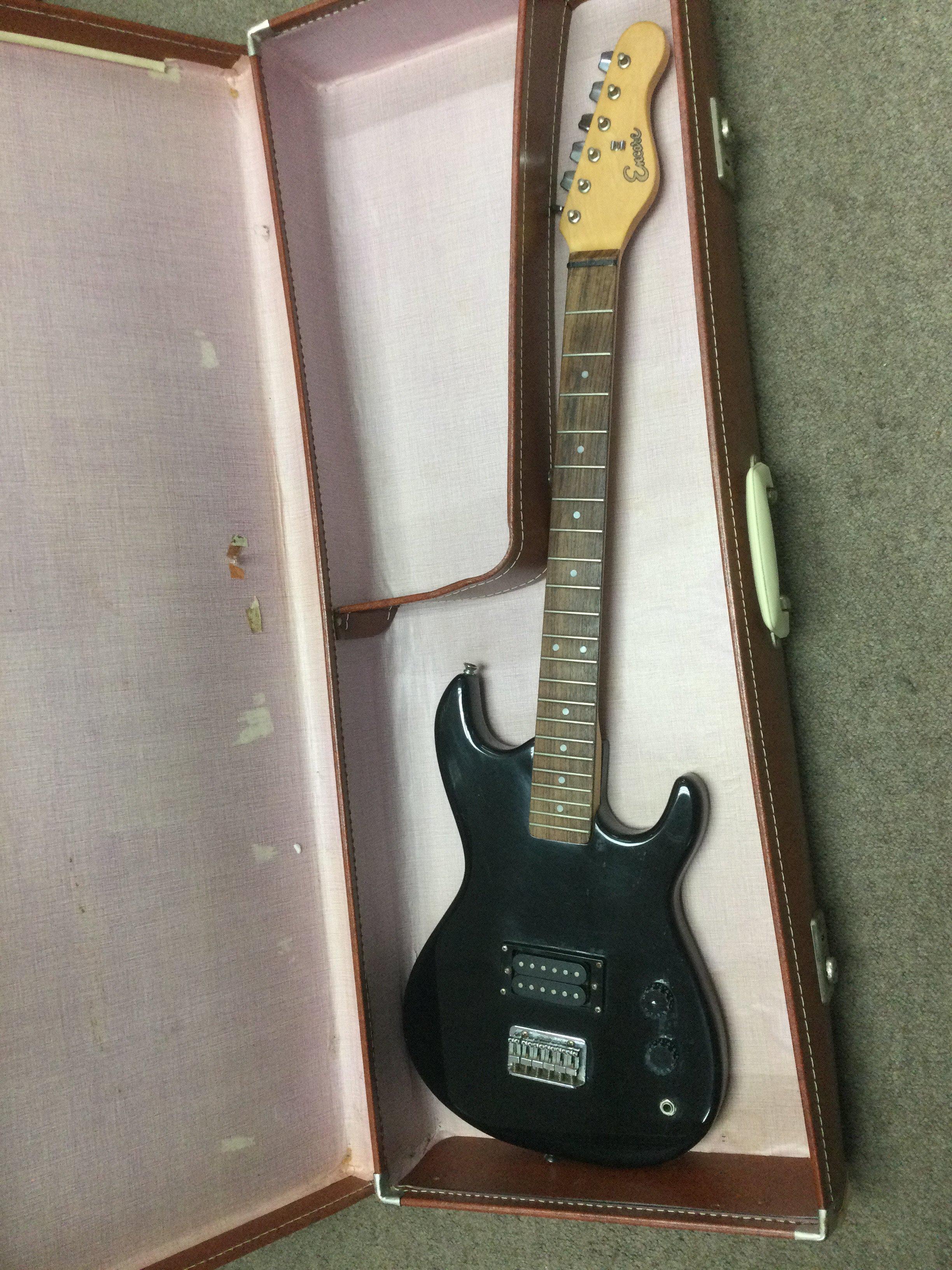 An Encore electric guitar and carry case together with a Peavey amplifier (2).