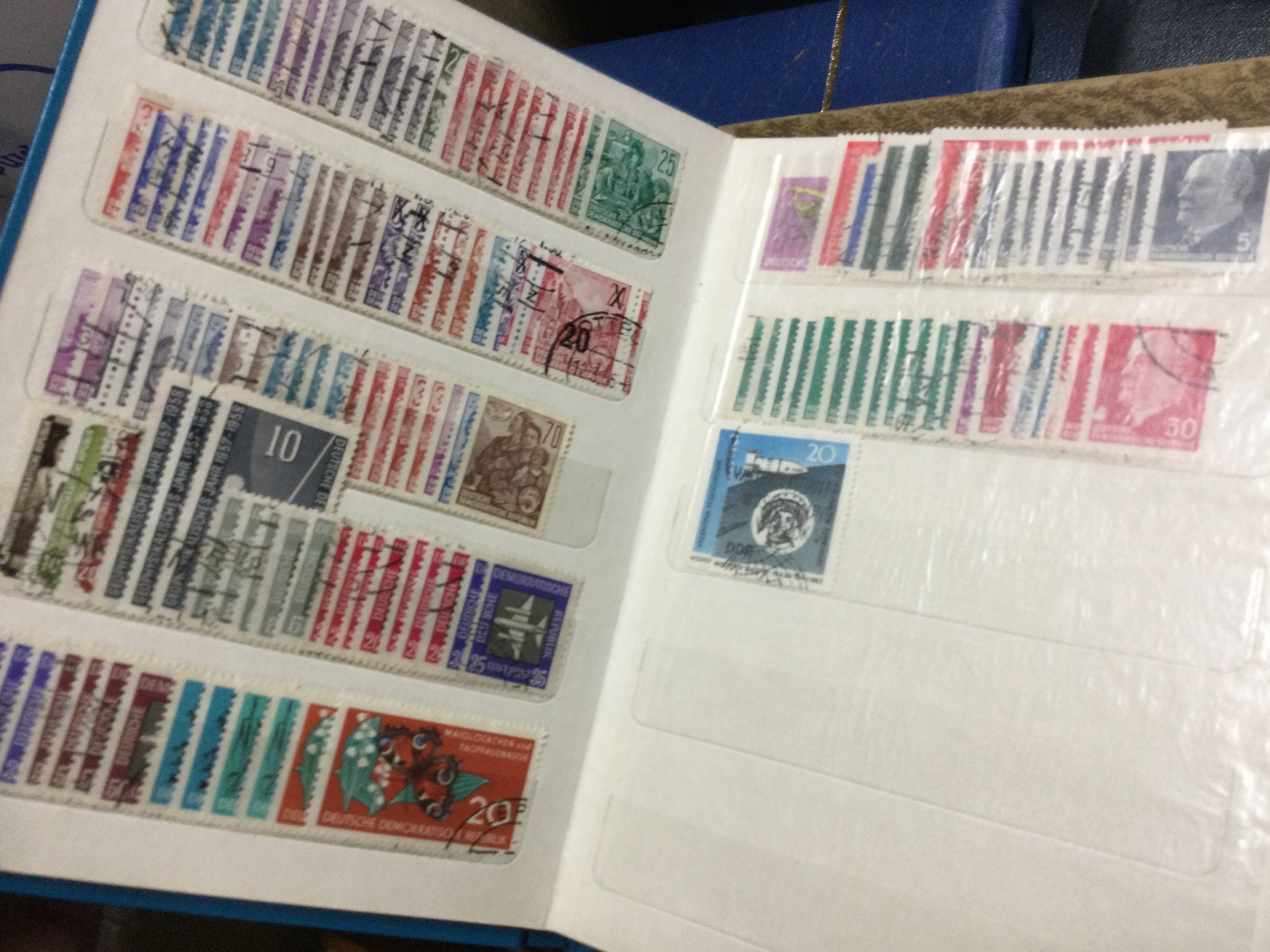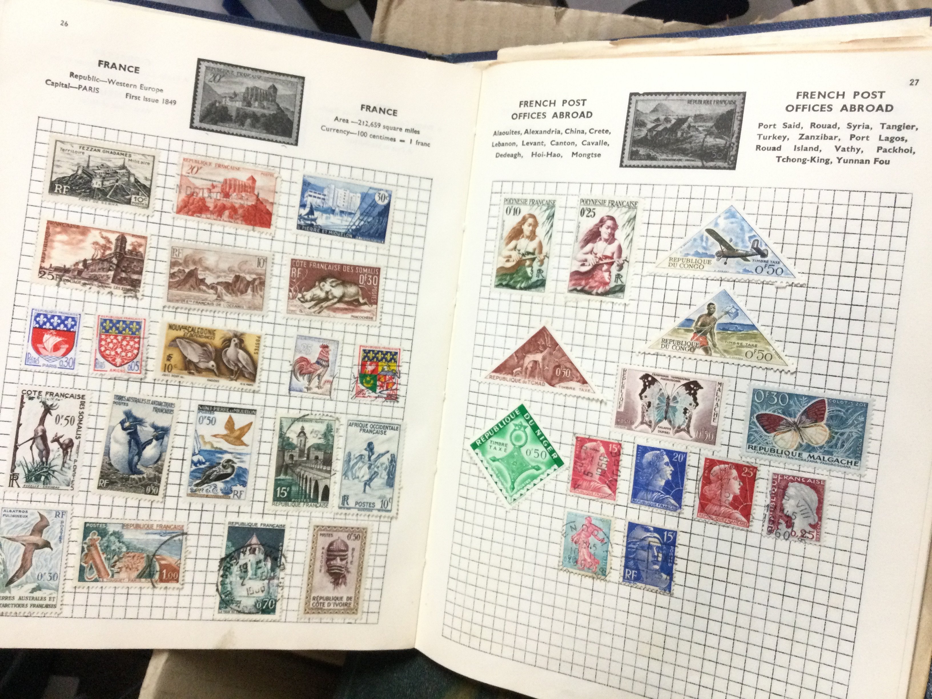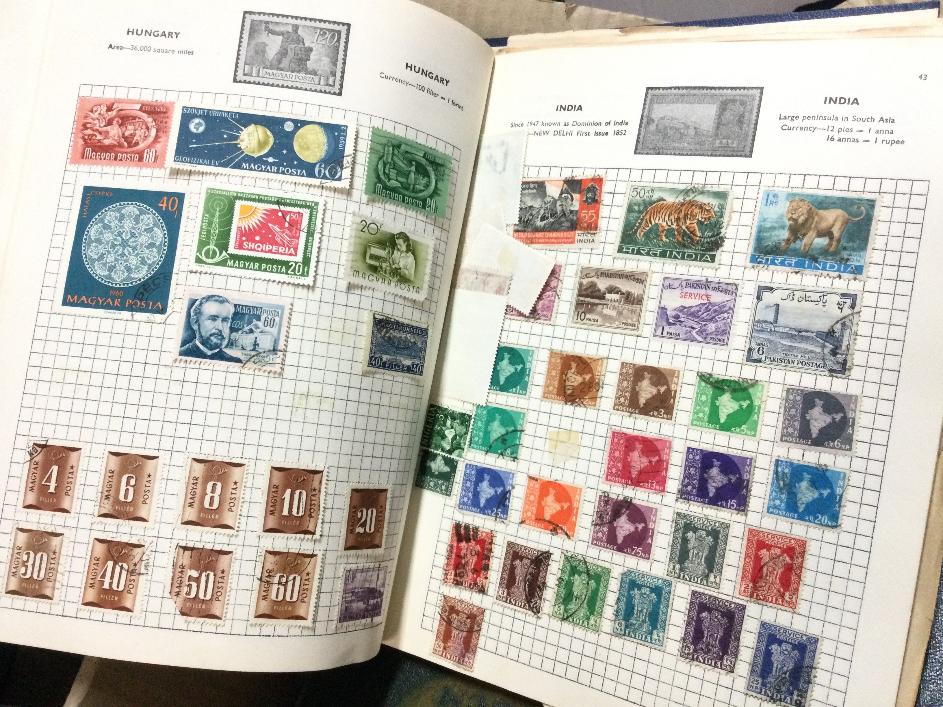A collection of used worlds stamps including loose and albums with French, Indian, Hungarian stamps etc