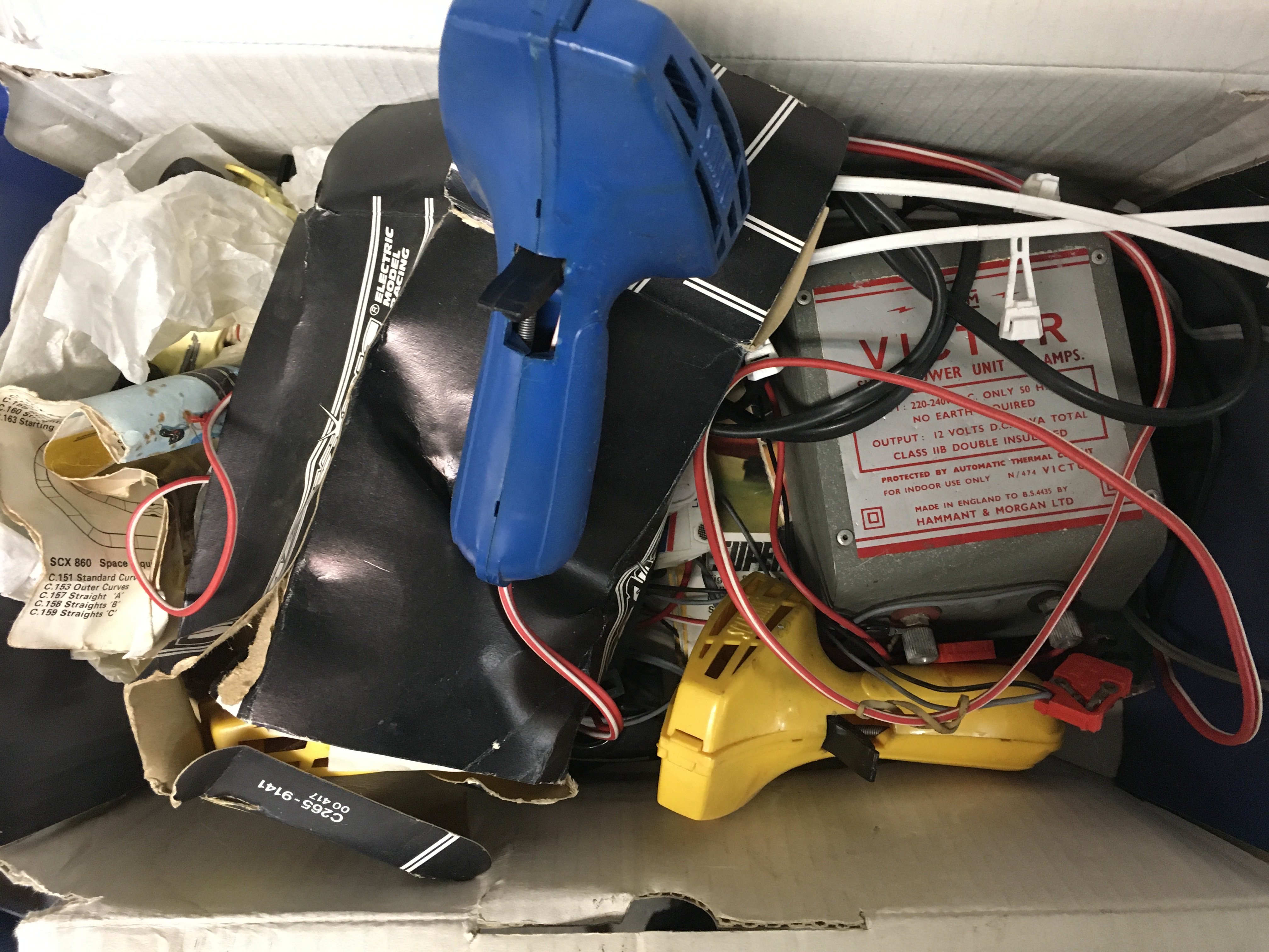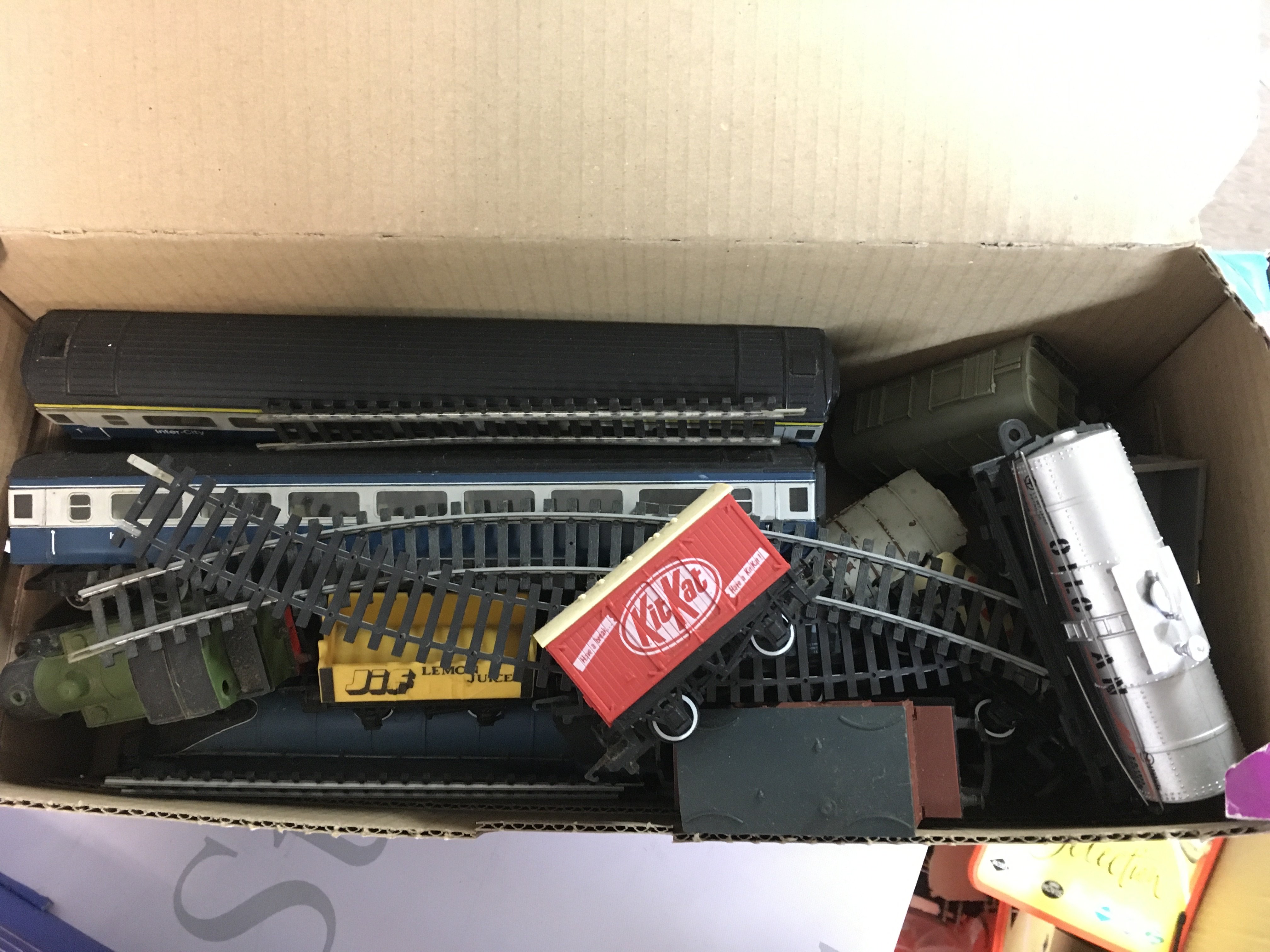 A collection of mixed items mostly including trains.