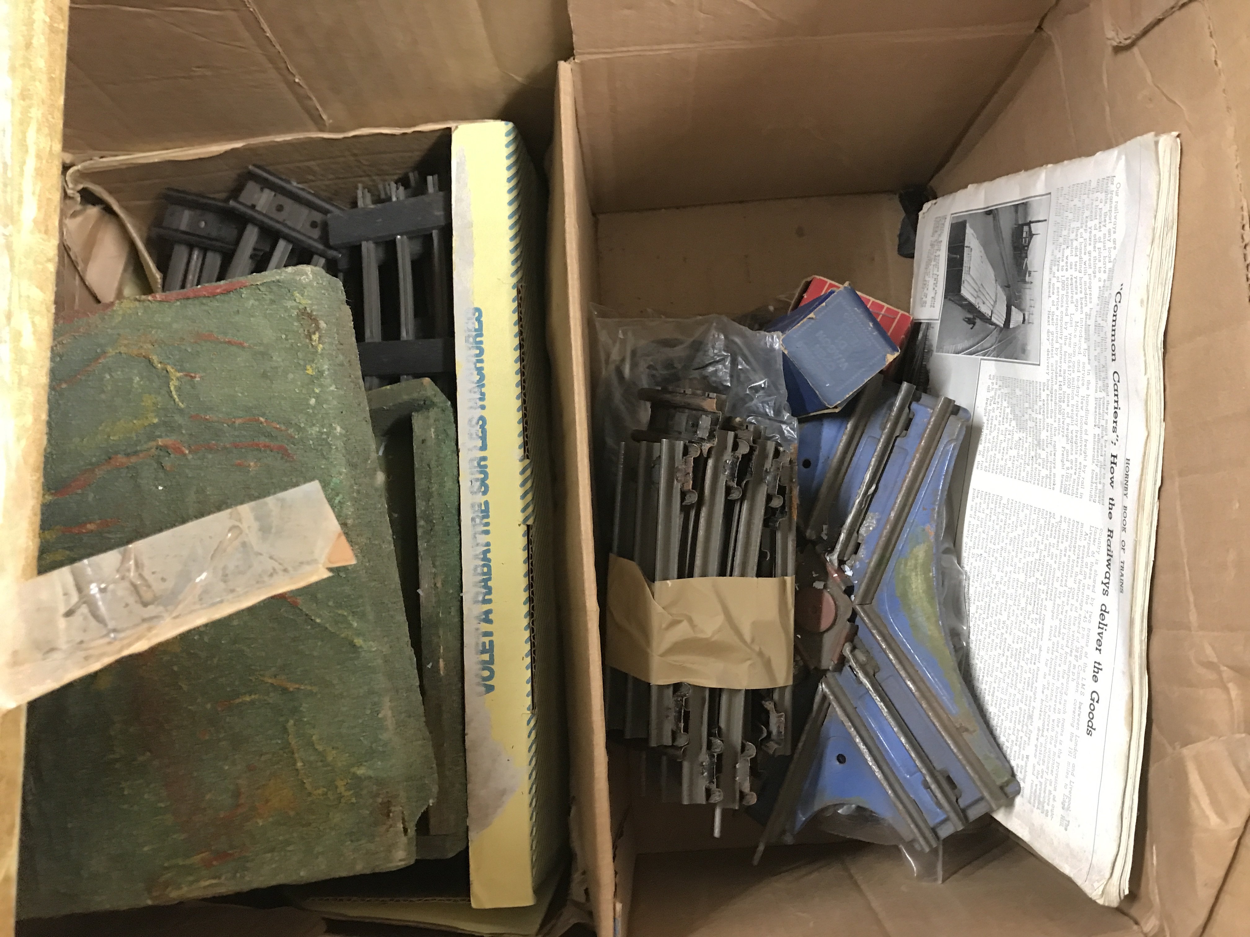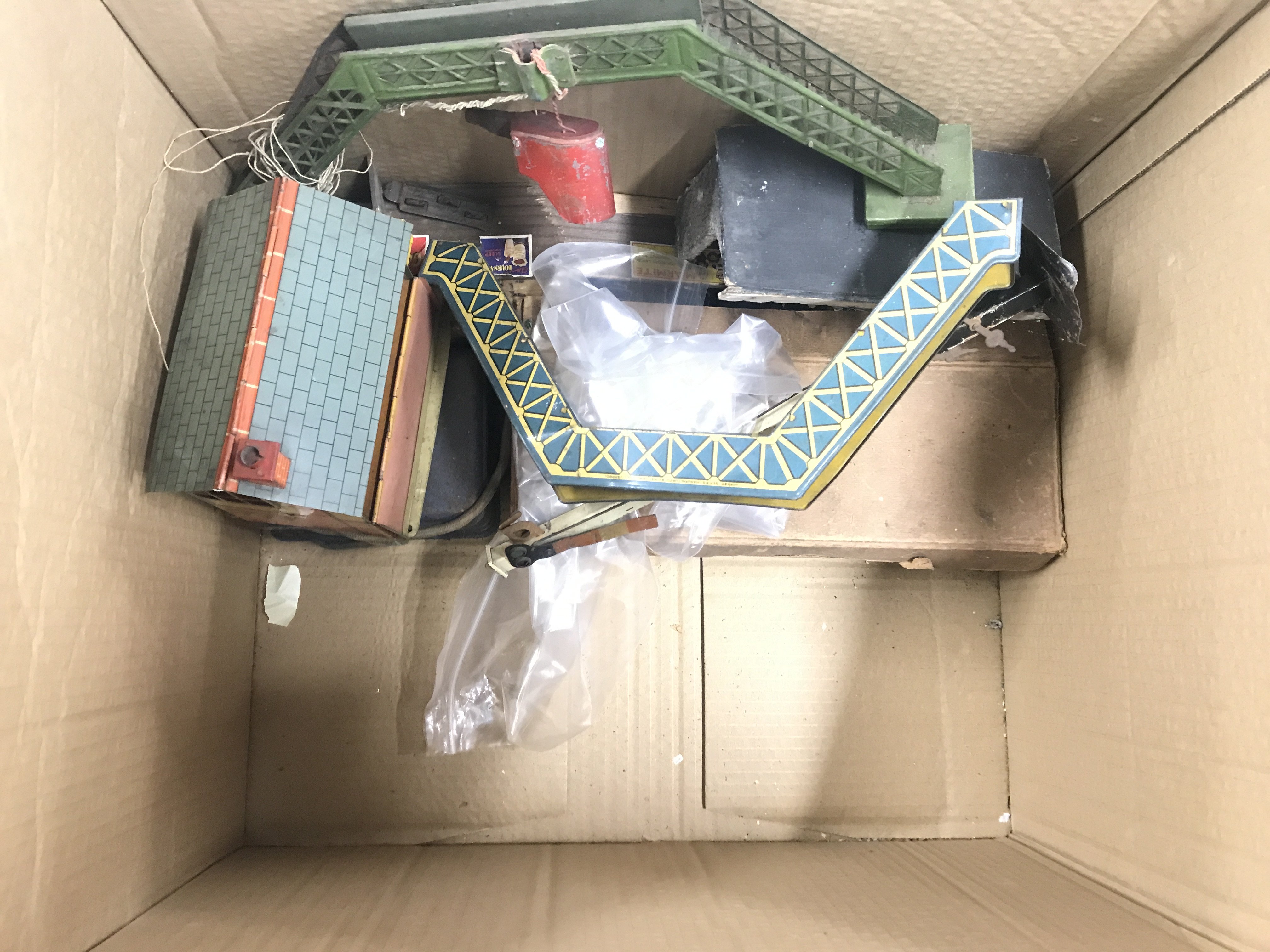 3 Boxes Containing 0 Gauge 3-Rail Loco. Track. Tunnels Stations. Buildings and Accessories.