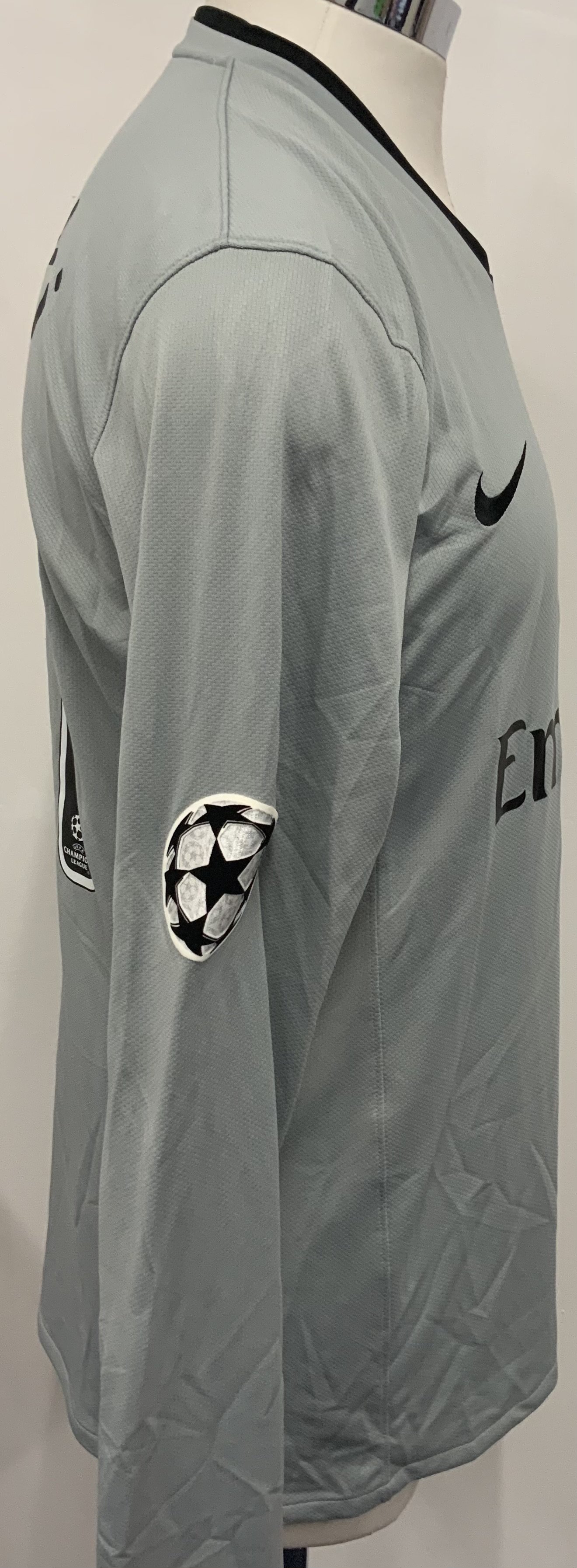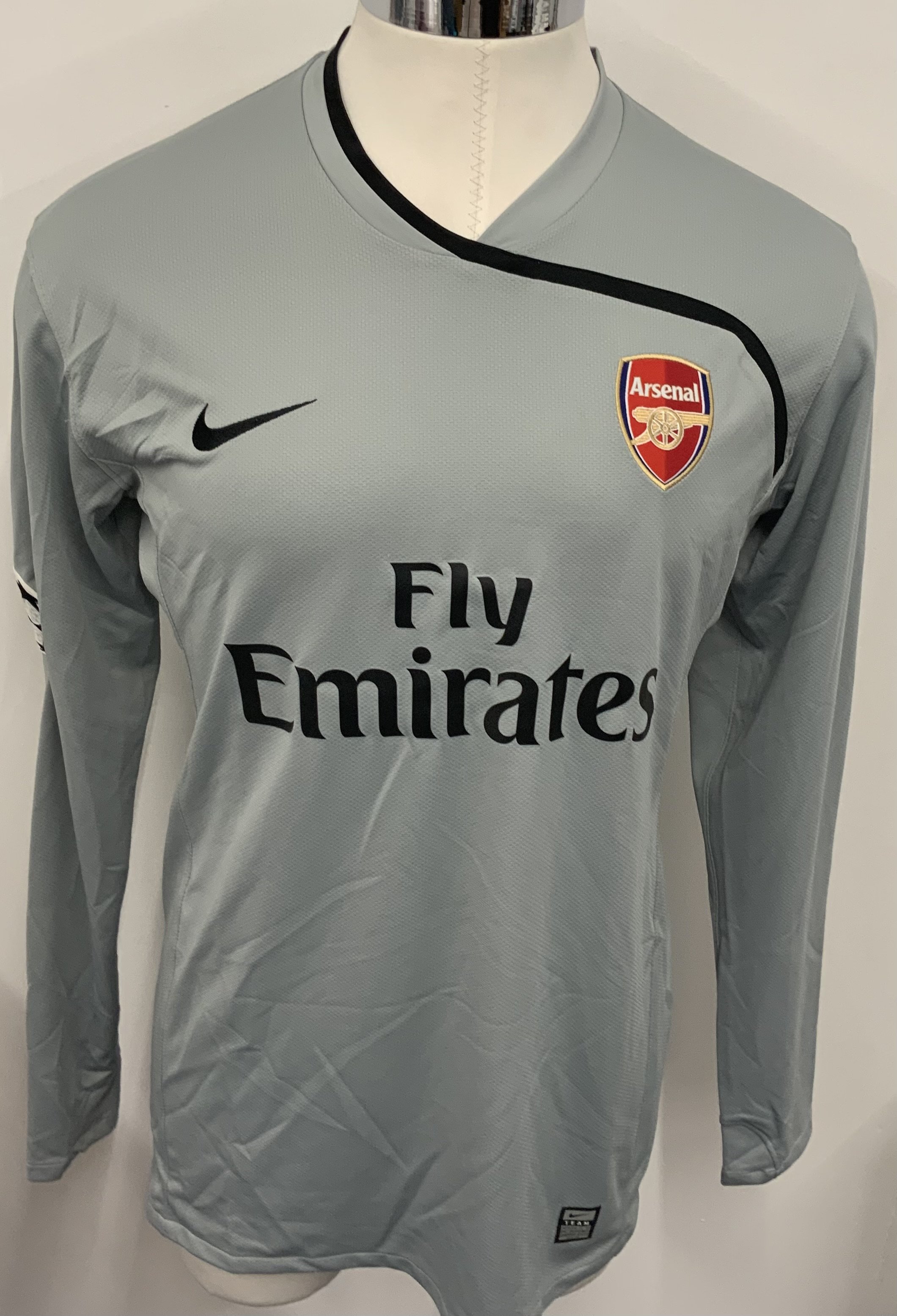 Arsenal 2008 - 2009 Match Worn Goalkeepers Football Shirt: Grey long sleeve Nike goalkeeper shirt with Champions League badging to sleeves. Fabianski 21 to rear.