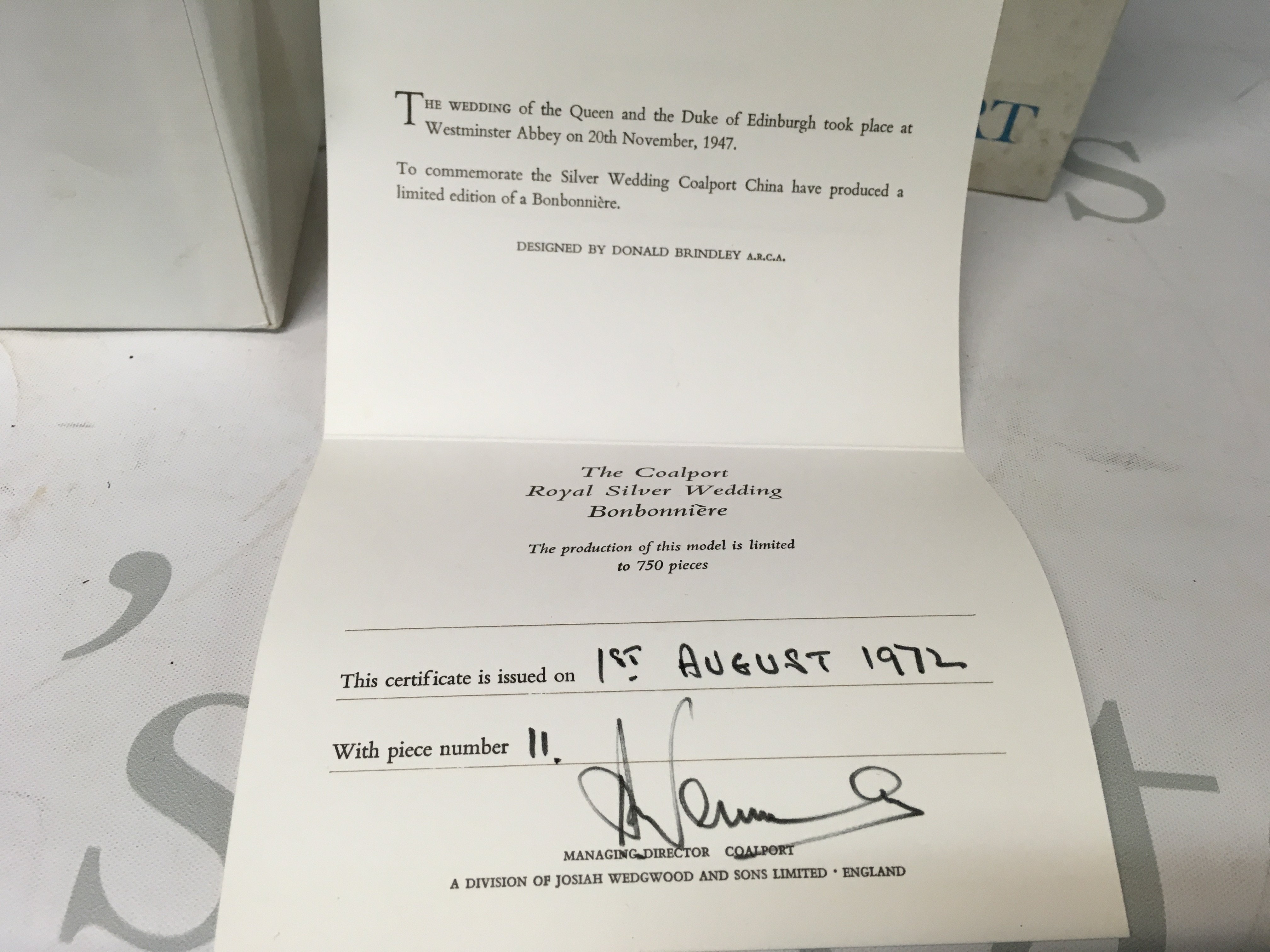 2 Coalport Royal Silver Wedding Bonbonnieres, commemorating the Silver Wedding. Limited edition of 750 pieces, designed by Donald Brinkley and a royalty collectable