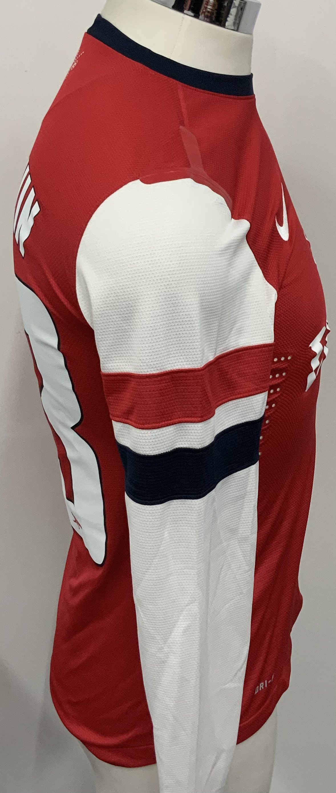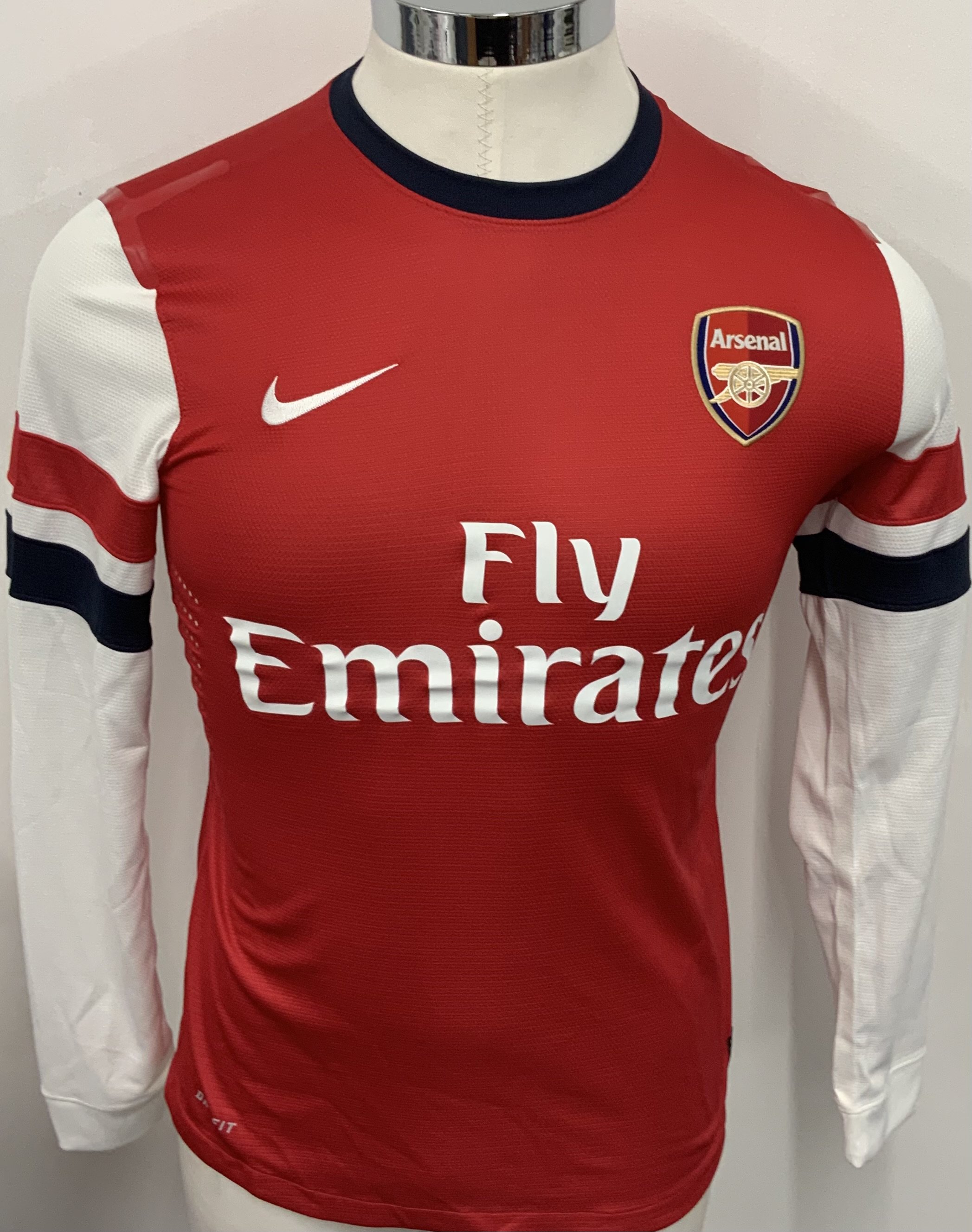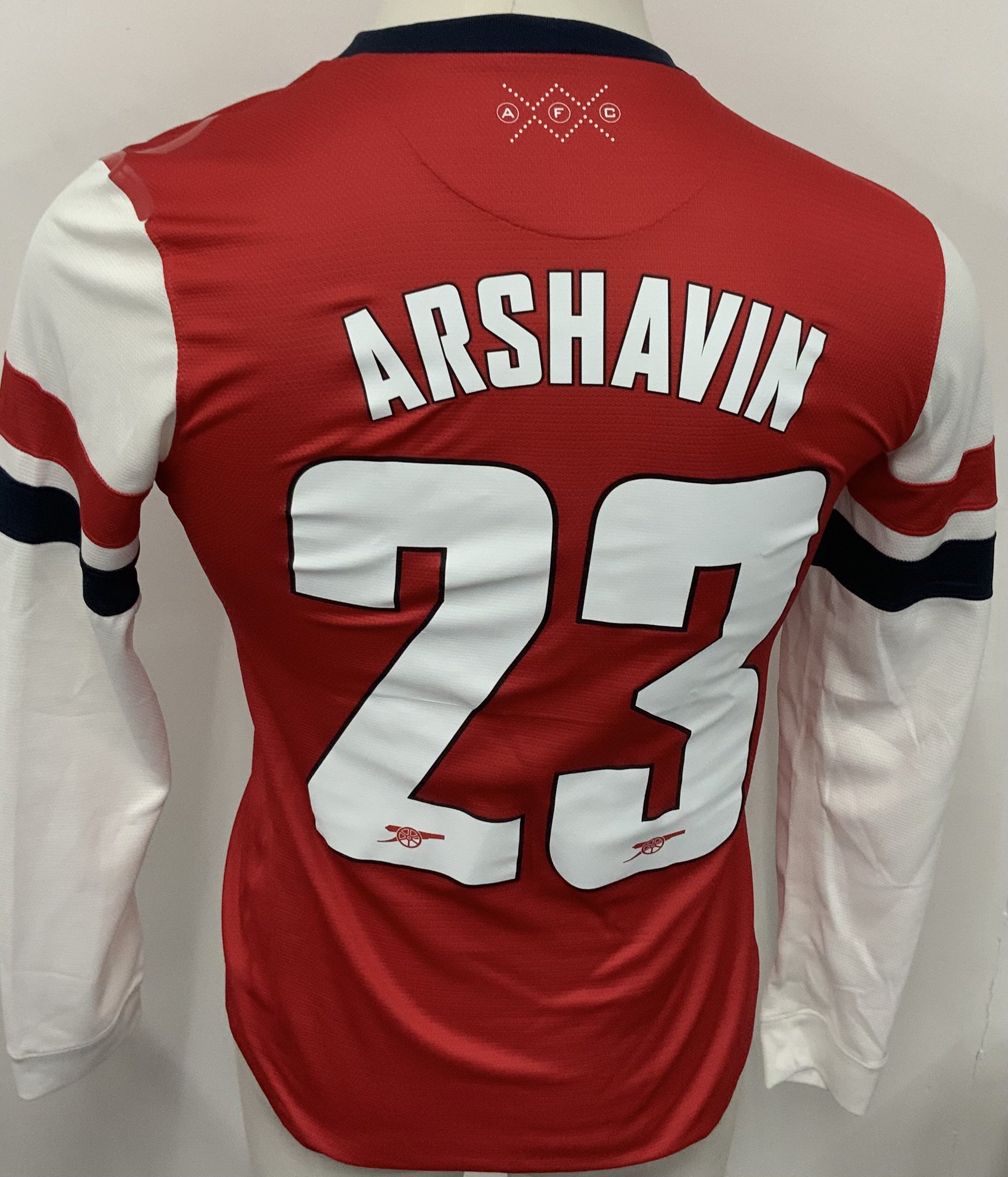 Arsenal 2012 - 2014 Home Match Worn Football Shirt: Red and white long sleeve Nike shirt with no badging to sleeves. Arshavin 23 to rear. Worn in an FA cup fixture.