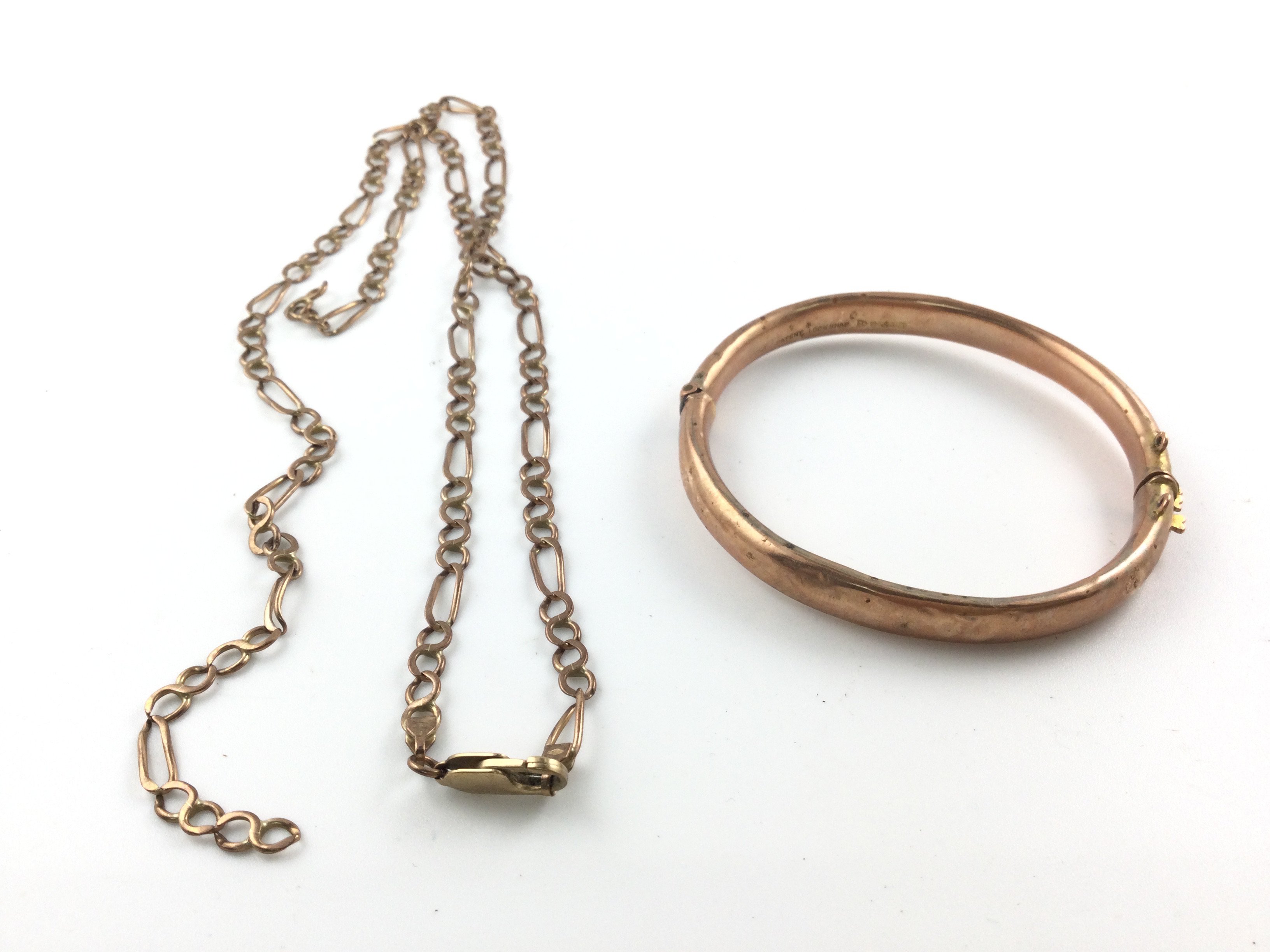 9ct gold chain (A/F) 9.31g and 9ct gold hallow bangle 7.28g Postage B