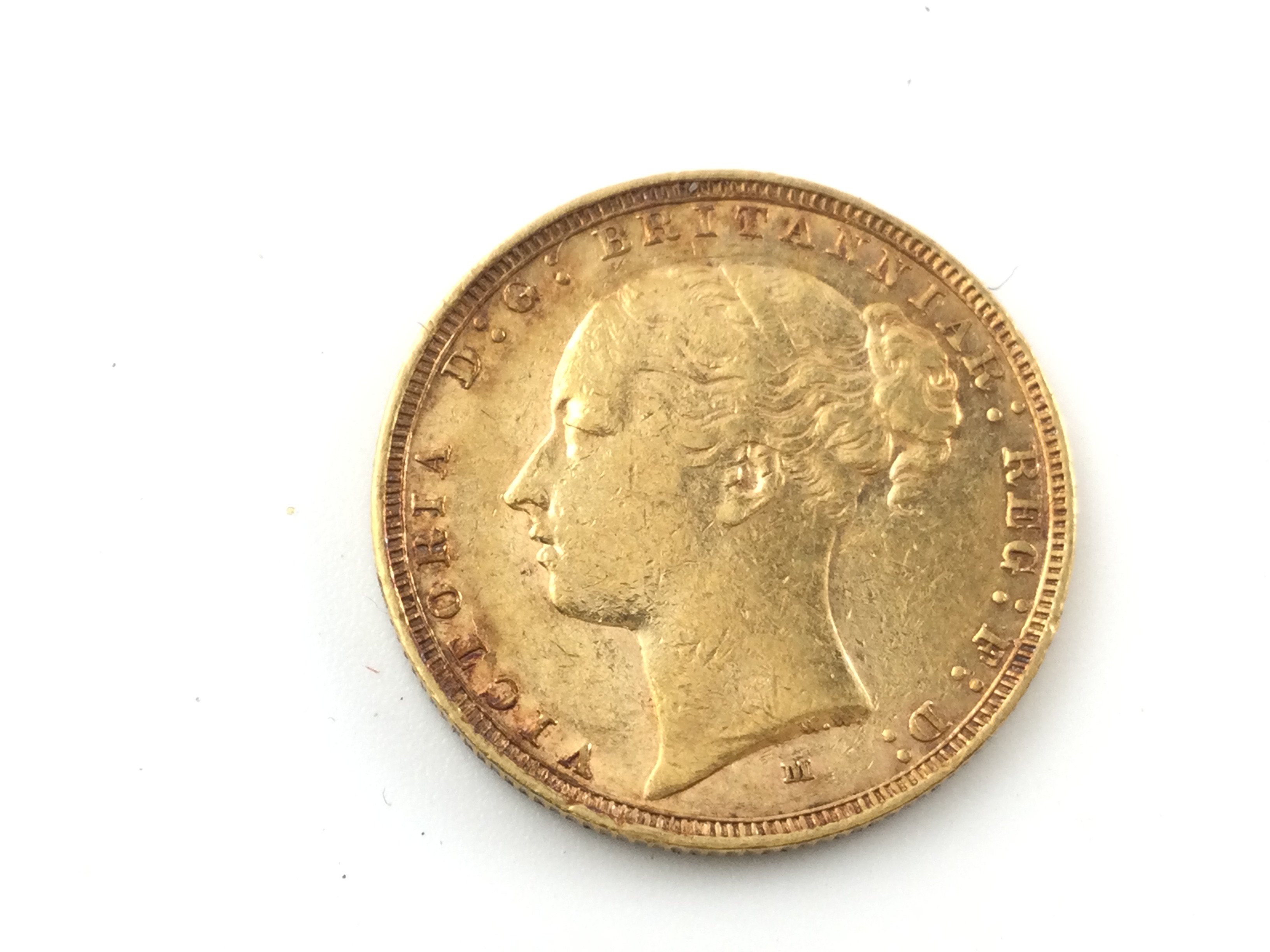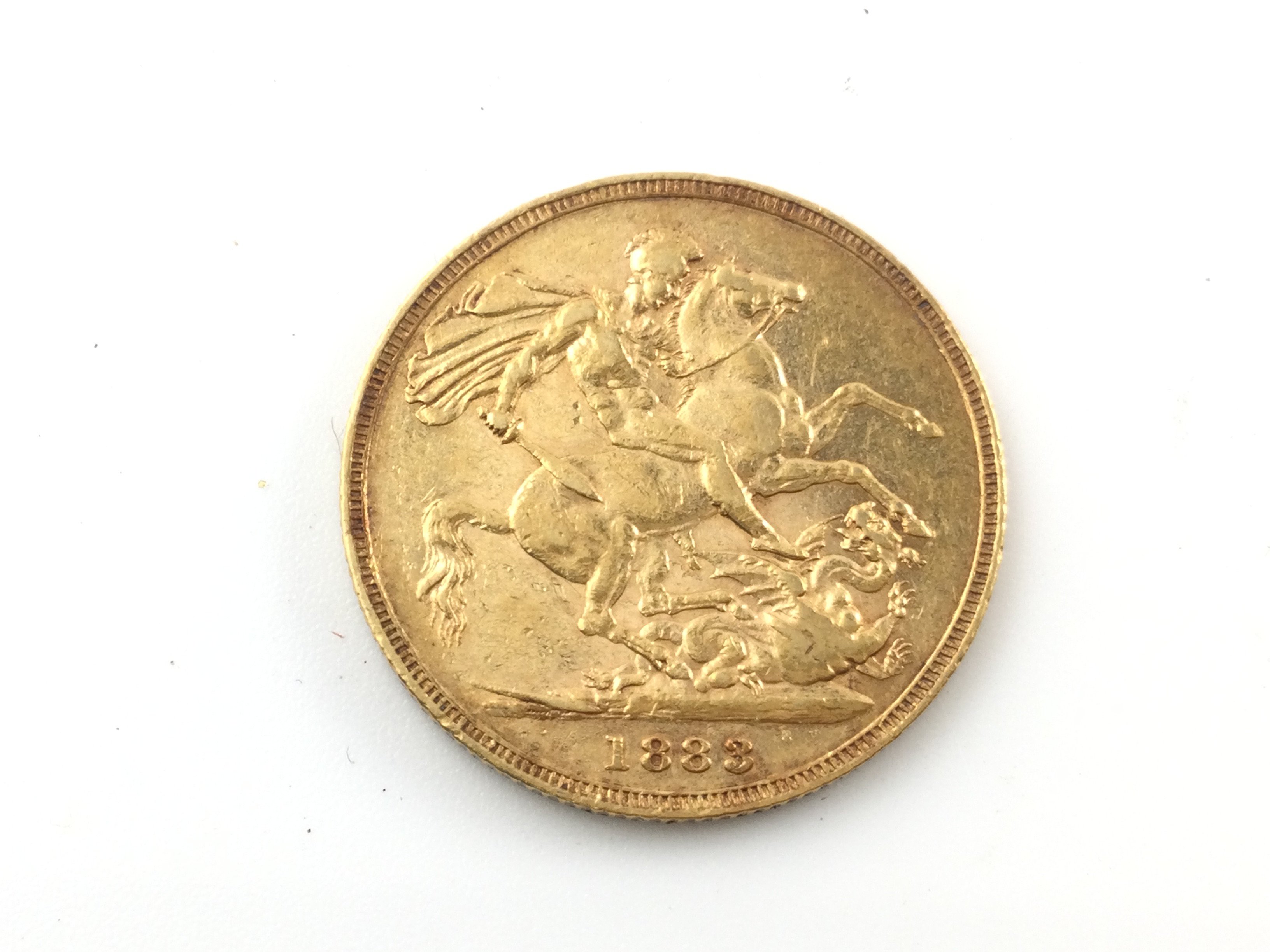 An 1883 full sovereign with Melbourne mint mark in coin capsule. Postage A
