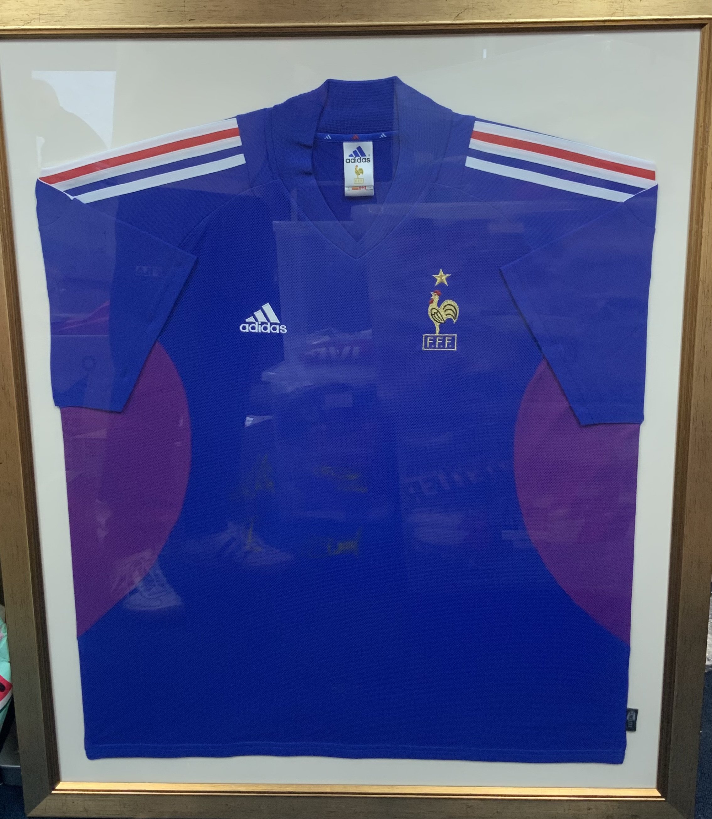 France + Arsenal 2002 Signed Framed Football Shirt: Blue France shirt signed to front by 4 Arsenal players including Henry and Pires. Frame measures approximately 39 inches by 33 inches. Not for posting.