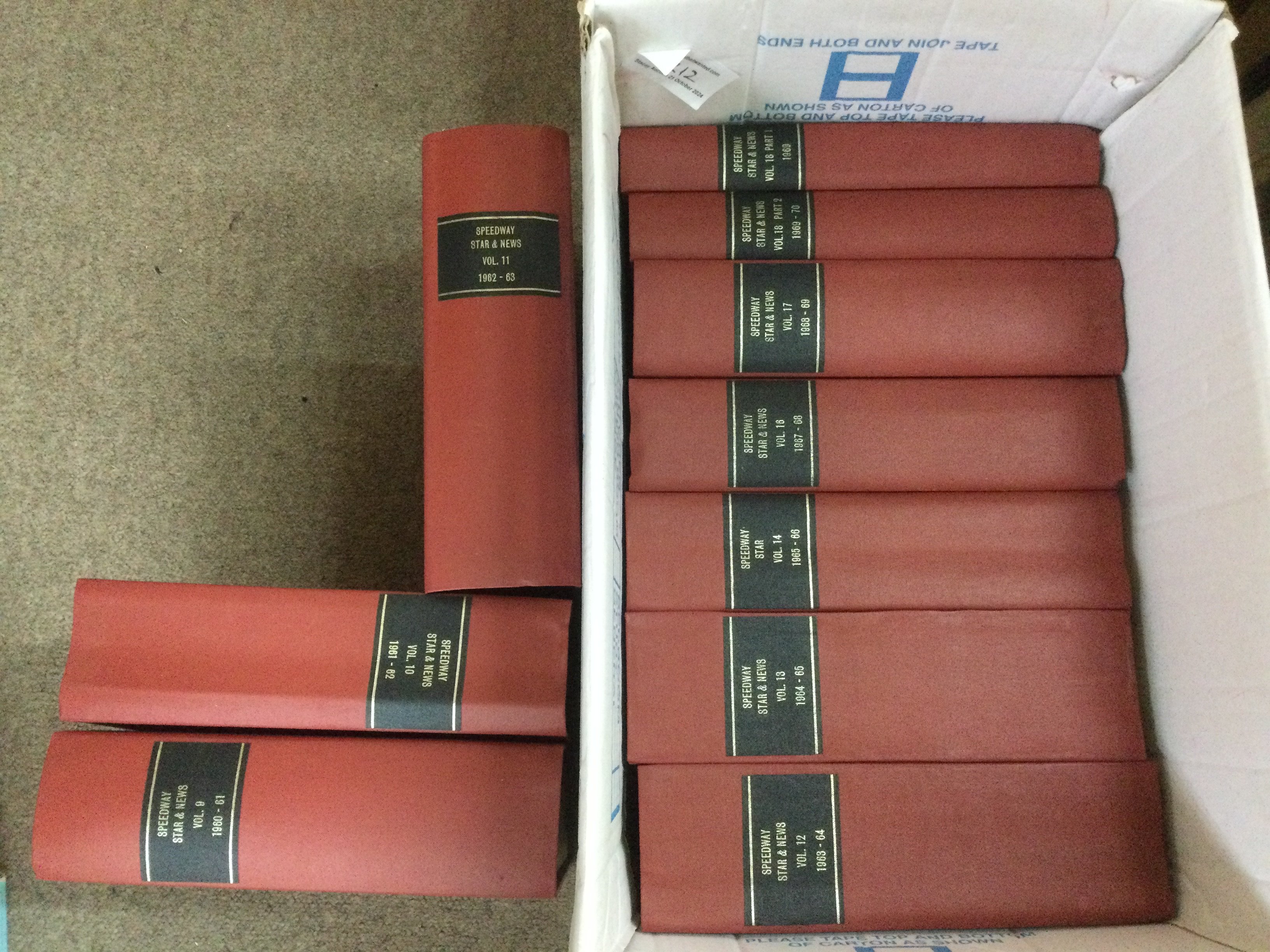 Ten bound volumes of Speedway Star News from 1960-61 through to 1969-70 , missing 1966-67.