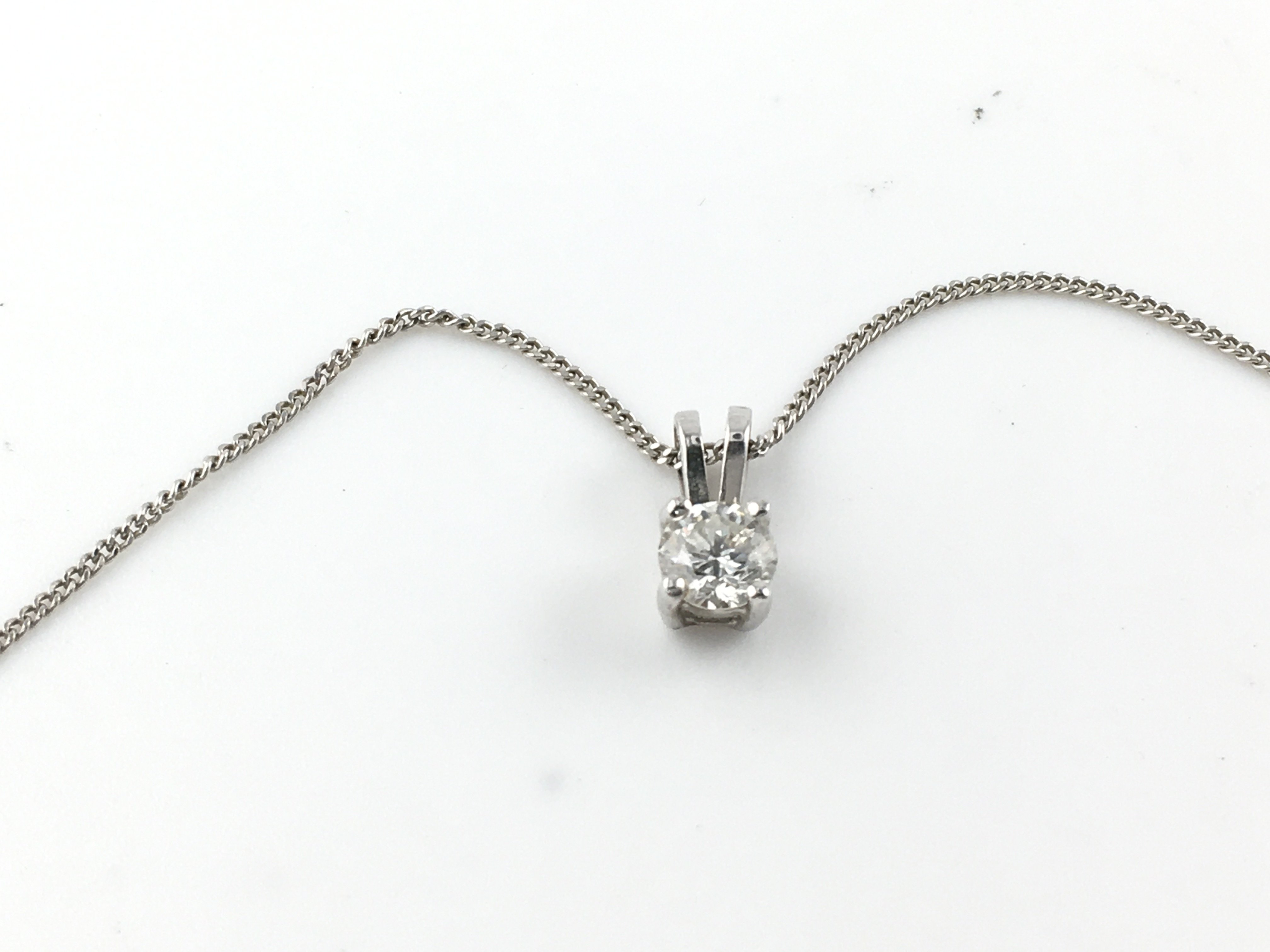 An 18ct white gold diamond solitaire pendant. Diamond is Approx 0.30ct. 2.21g total. Postage A