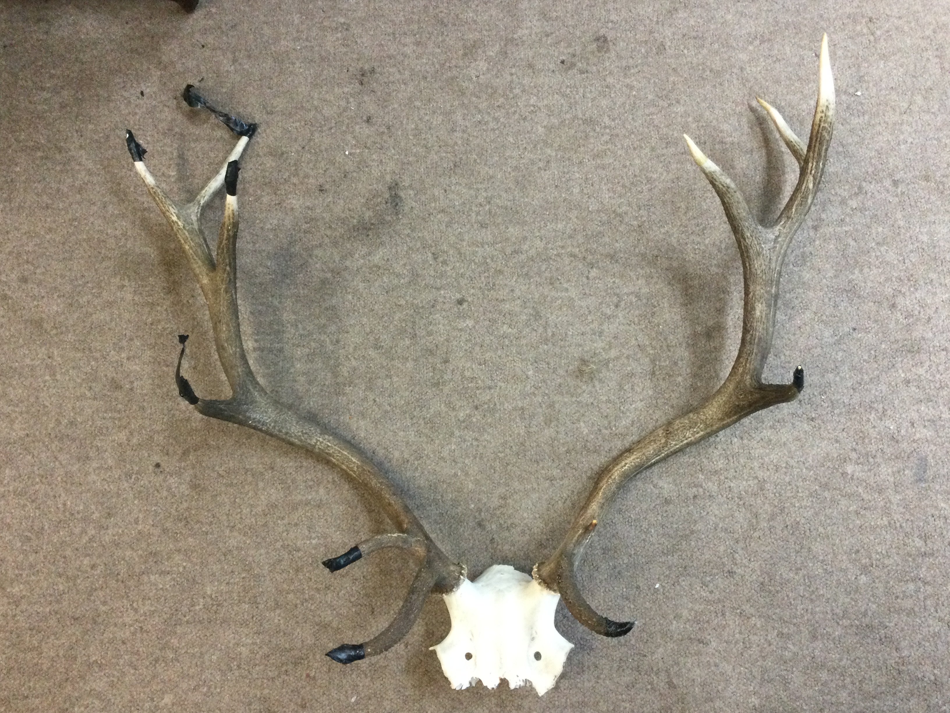 Elk antlers, 74cm tall, 80cm wide approximately (tips taped but no damage )