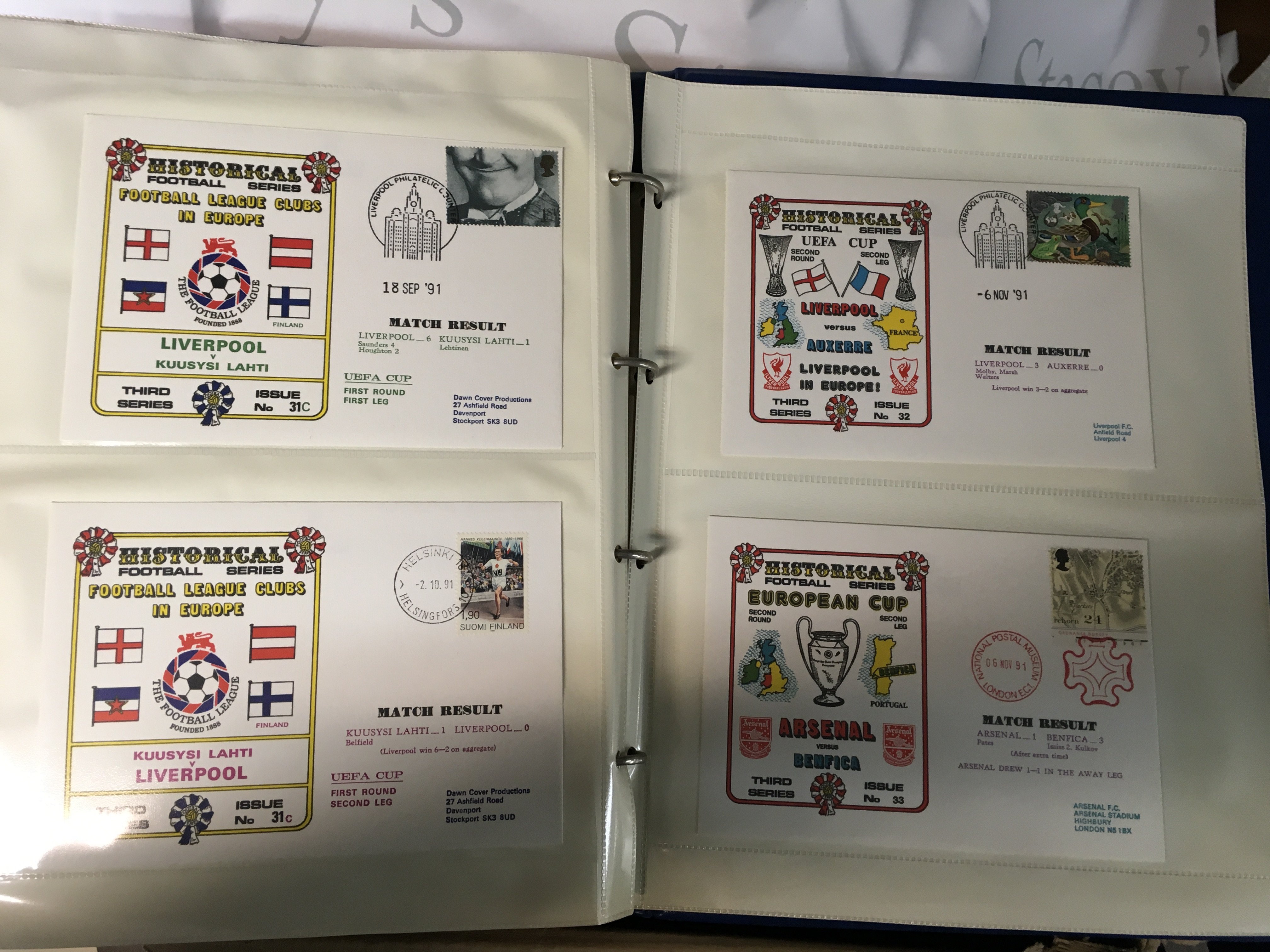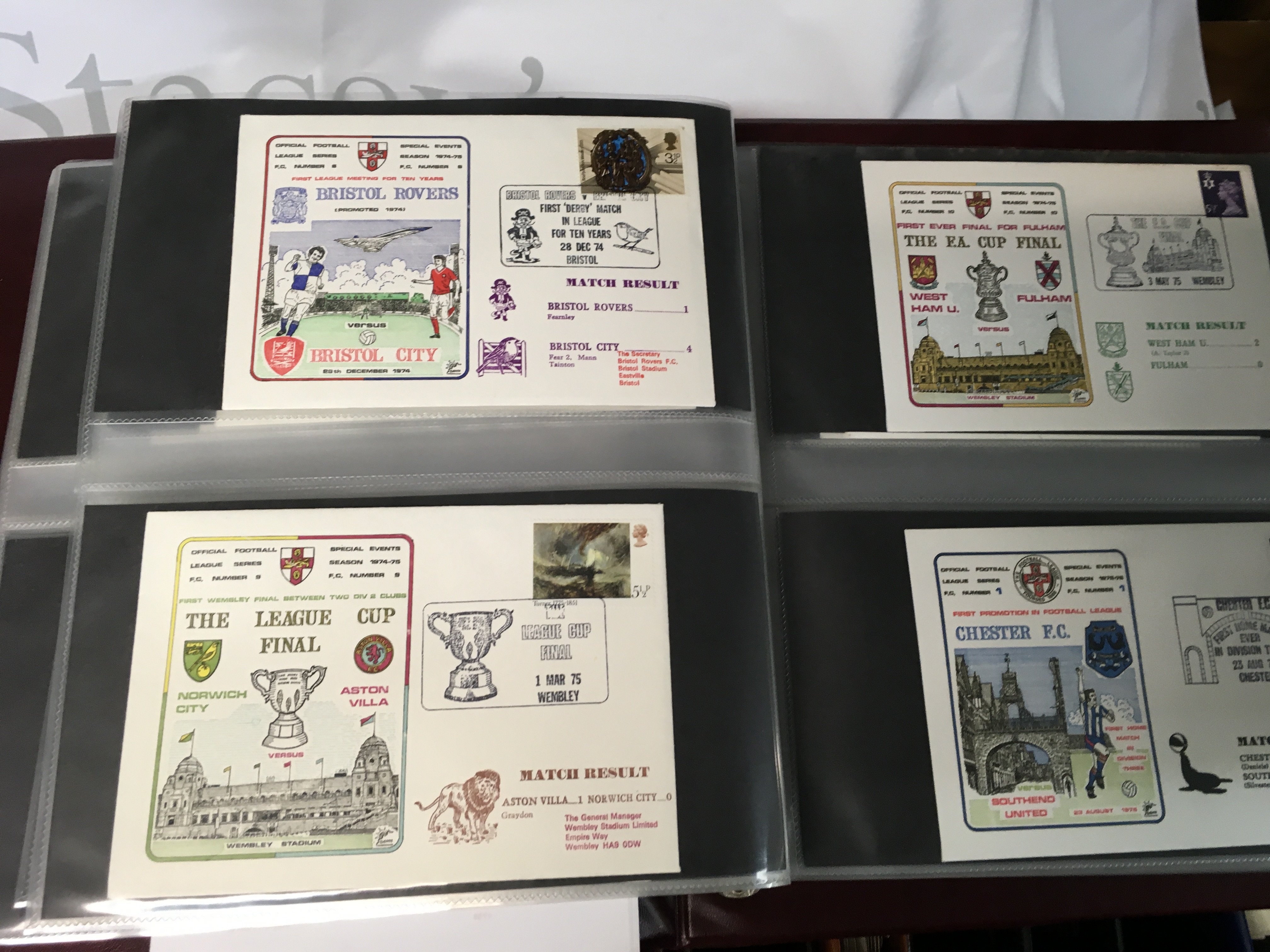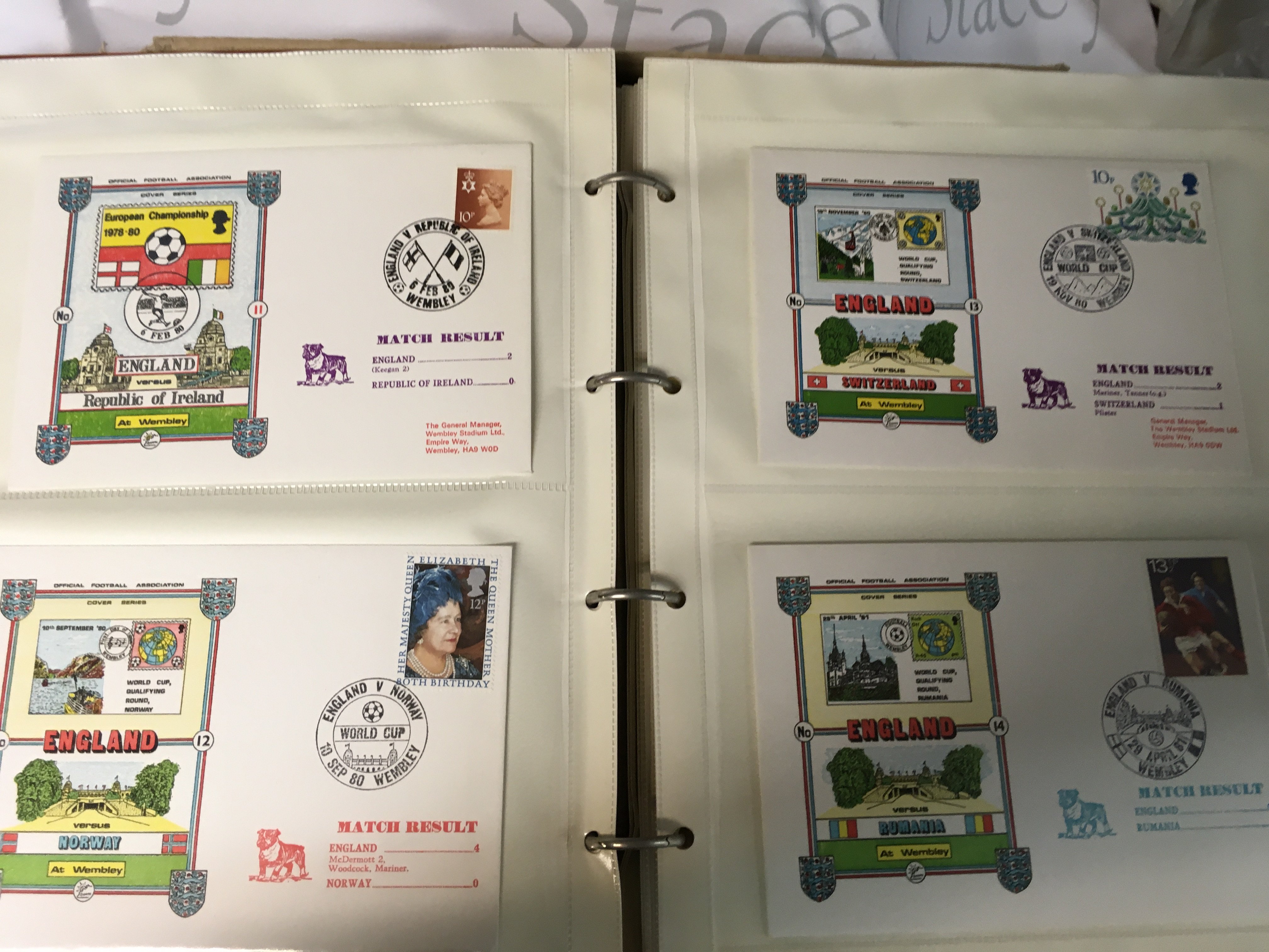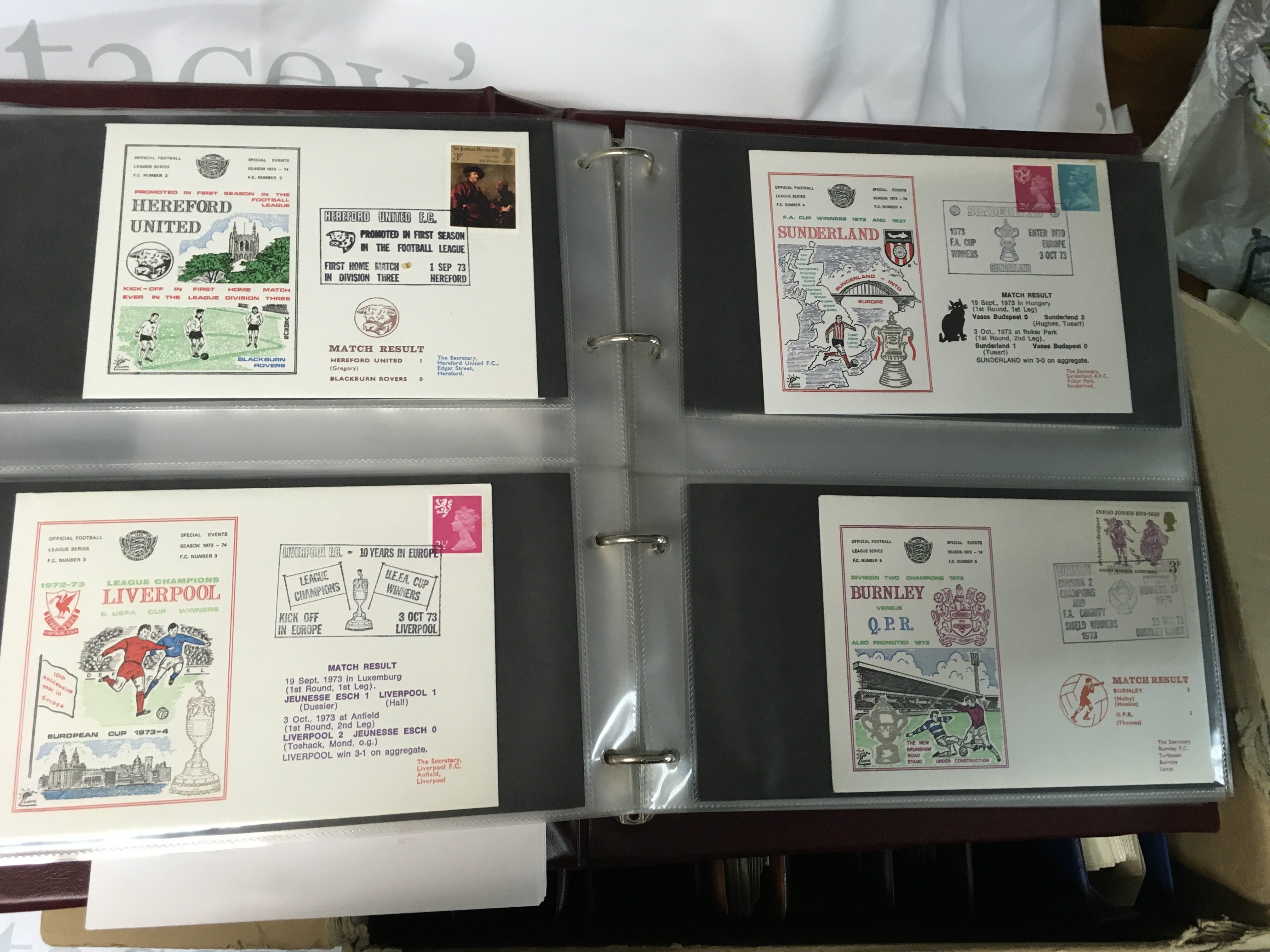 A collection of football albums. A collection of football postal covers including the Official Football Cover Series and many other albums with the Official Football Cover Series cards included