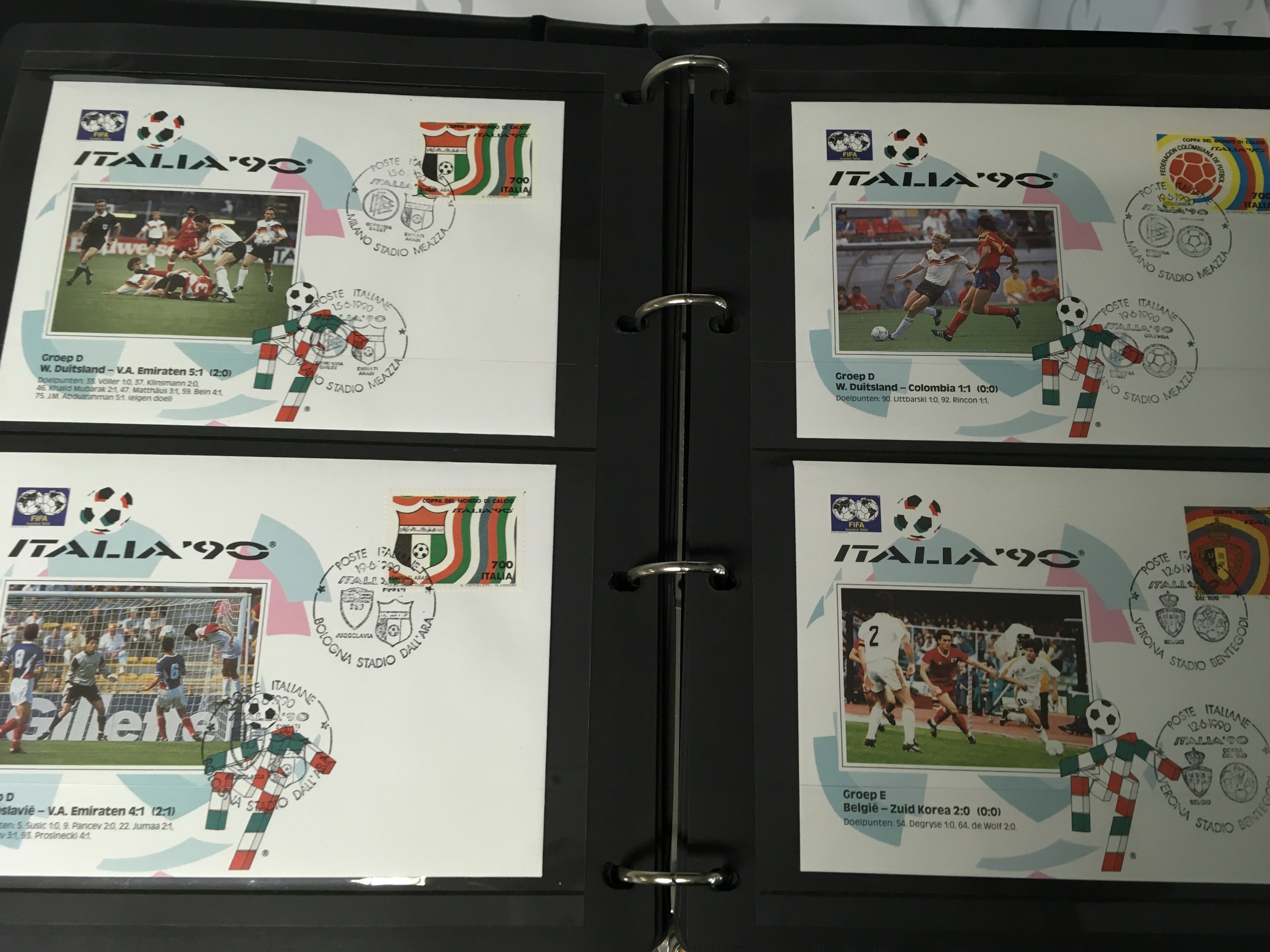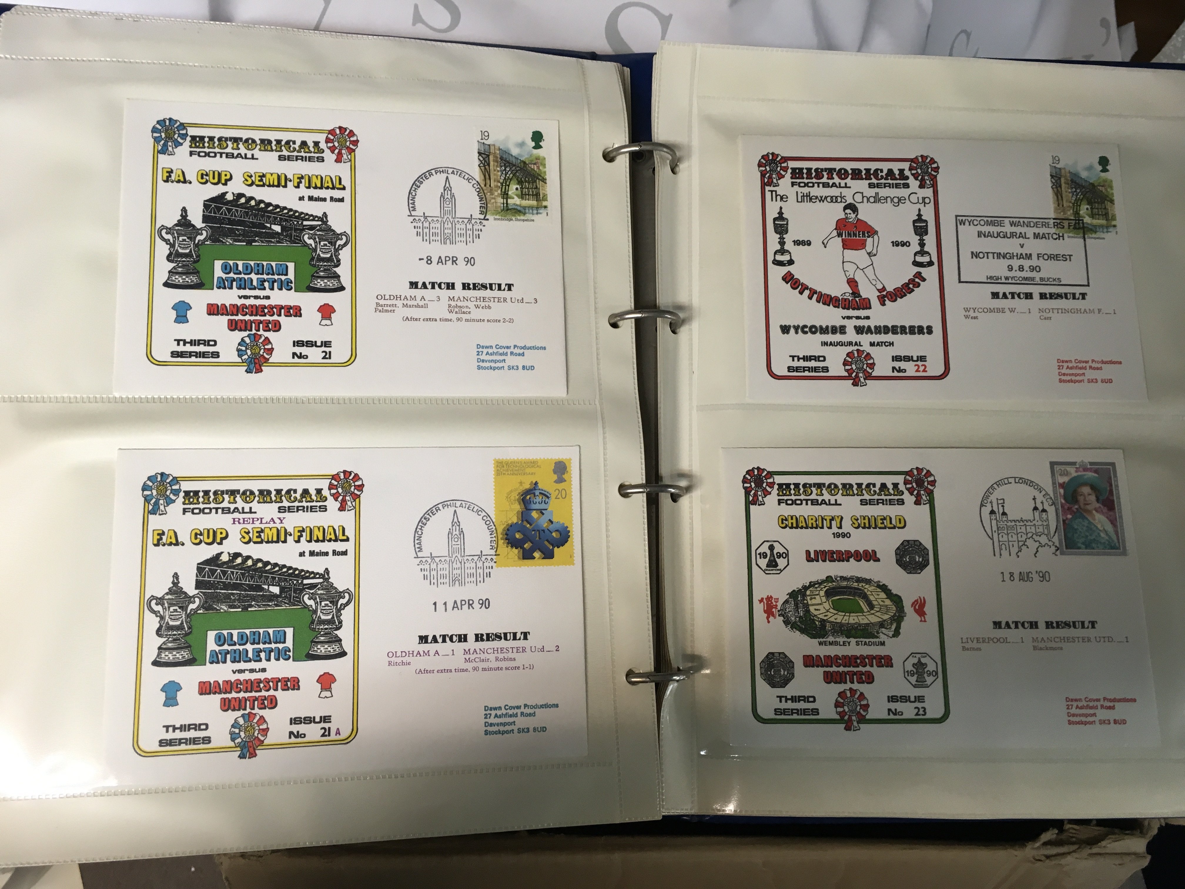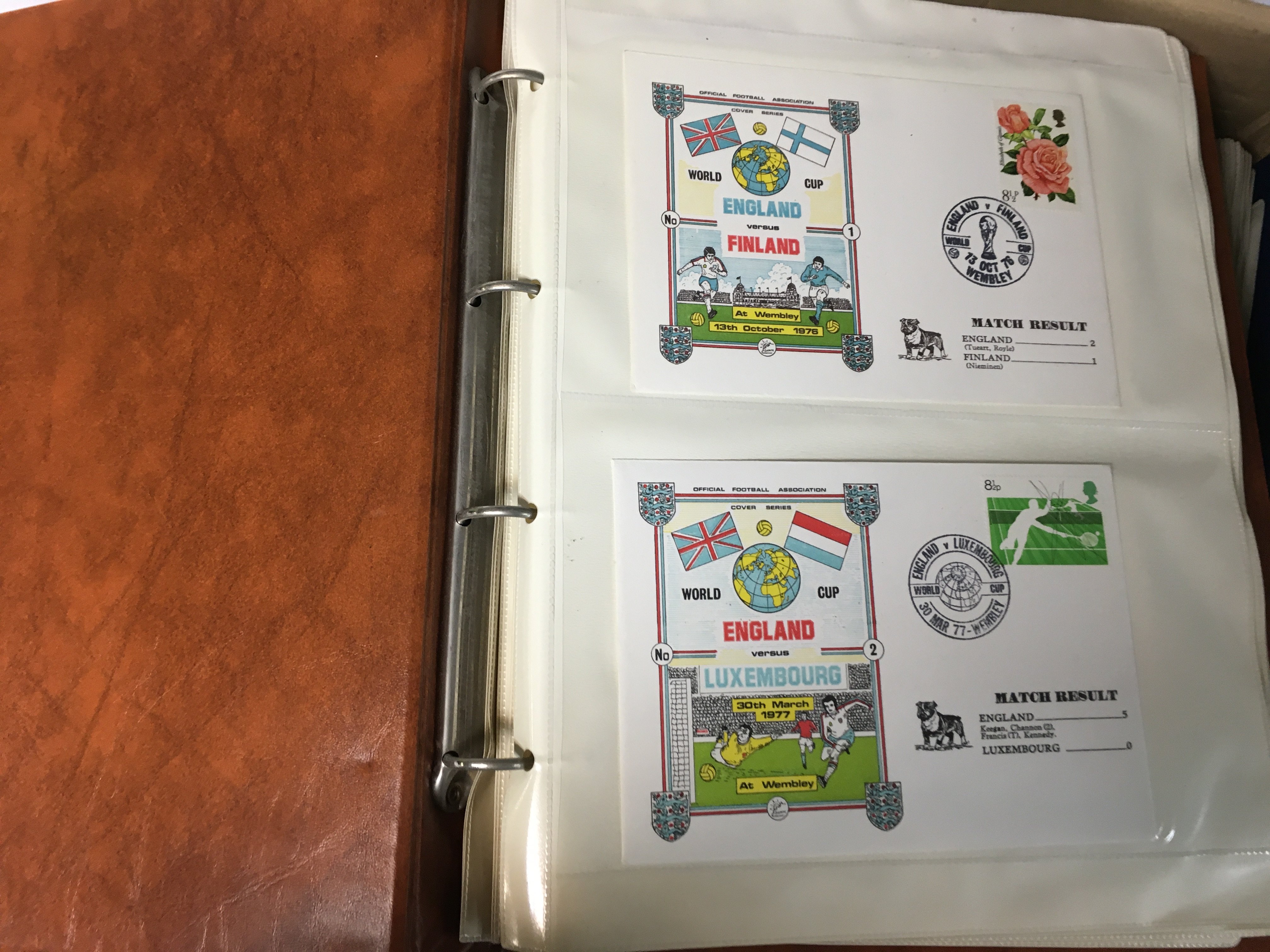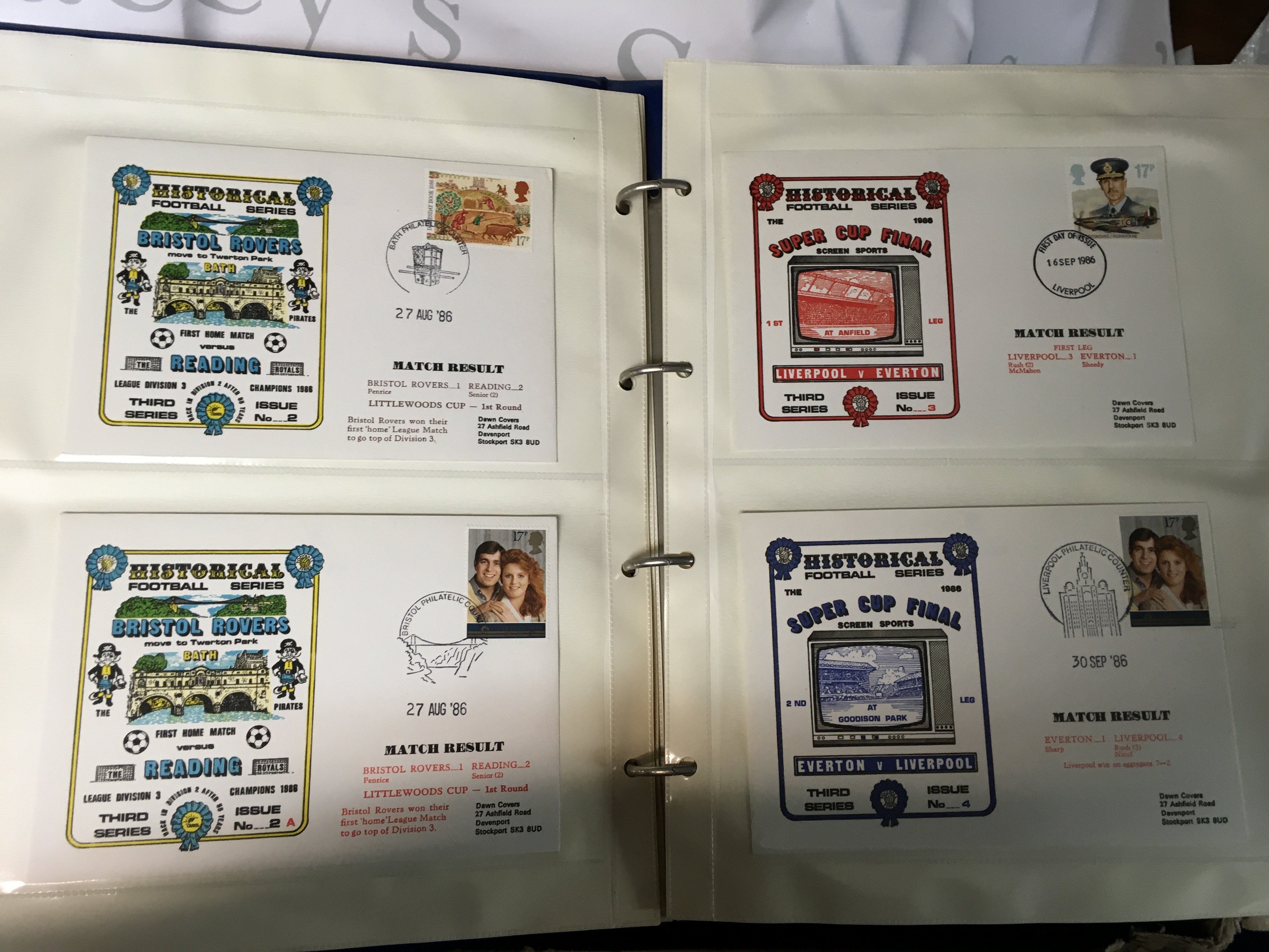 A collection of football albums. A collection of football postal covers including the Official Football Cover Series and many other albums with the Official Football Cover Series cards included
