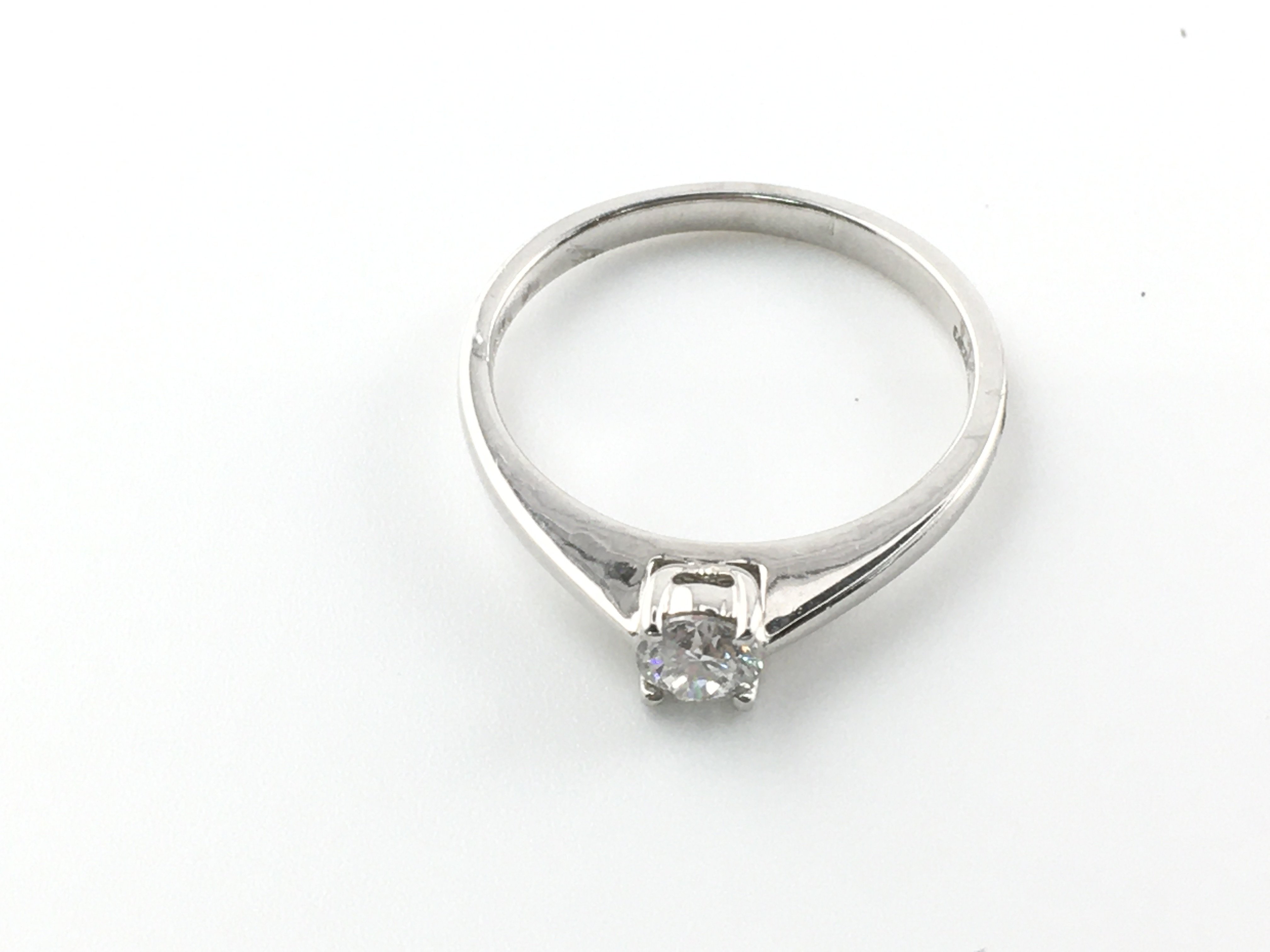 A platinum and 0.29ct diamond solitaire ring. Size M and 3.14g Postage A