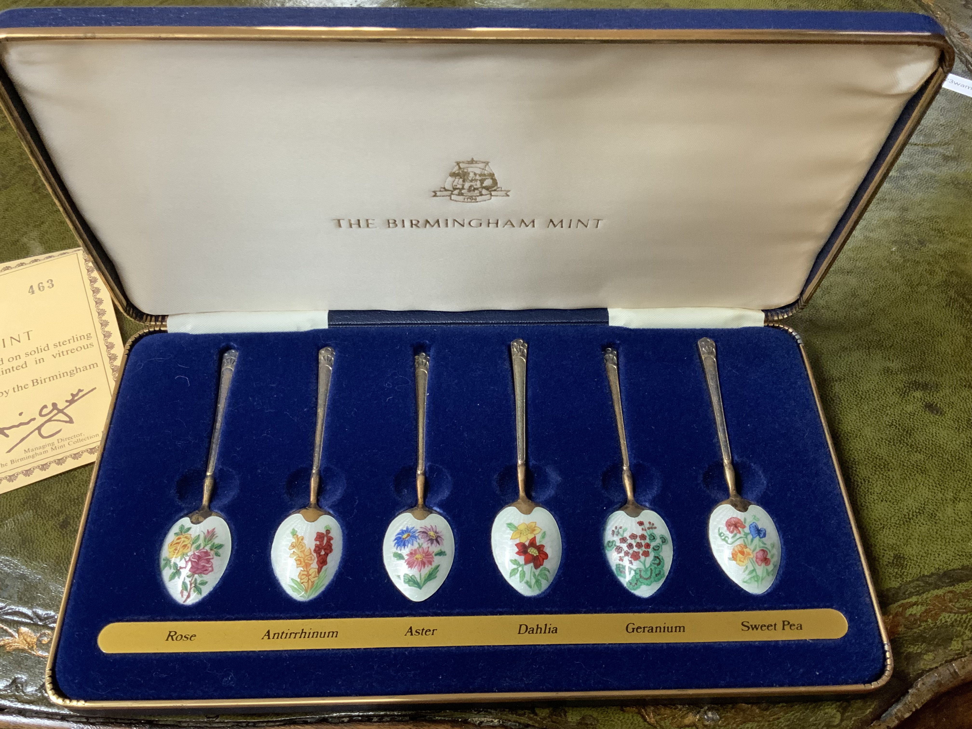 A cased set of 6 Hallmarked silver and enamel teaspoons from the Birmingham Mint (B)