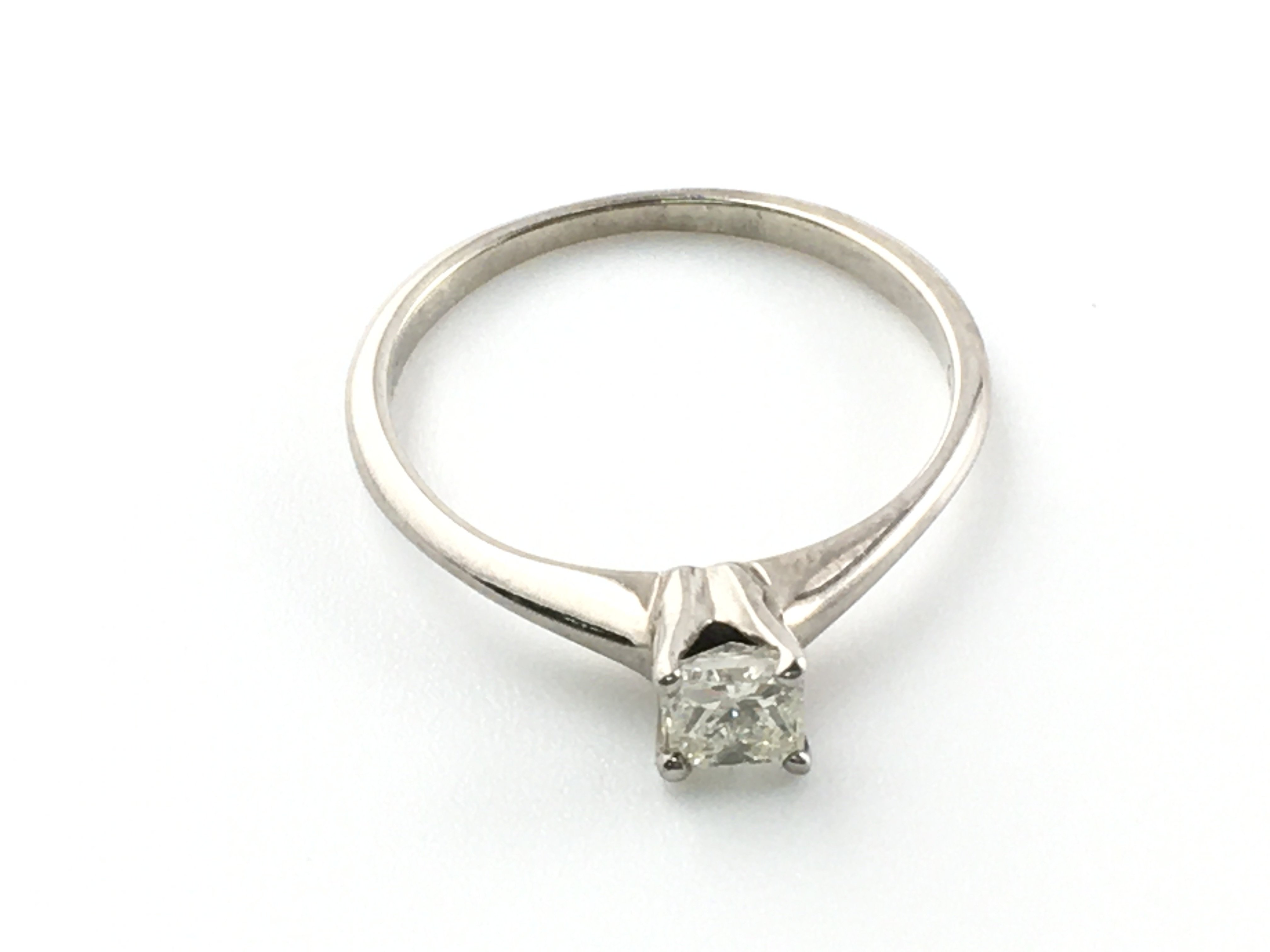 A 9ct white gold diamond solitaire ring. 0.40ct diamond size K and 1.37g Postage A