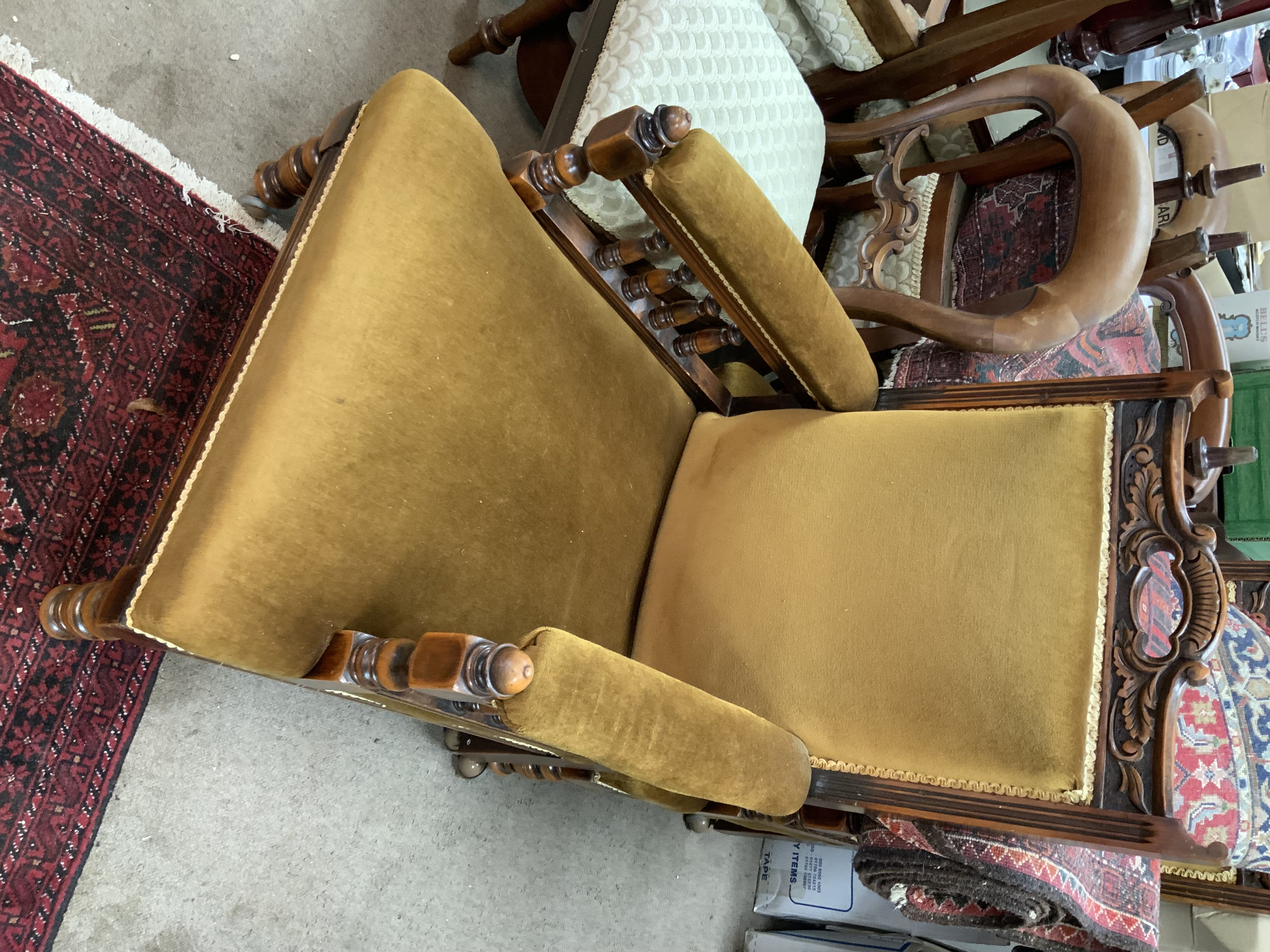 A Pair of Victorian upholstered armchairs.