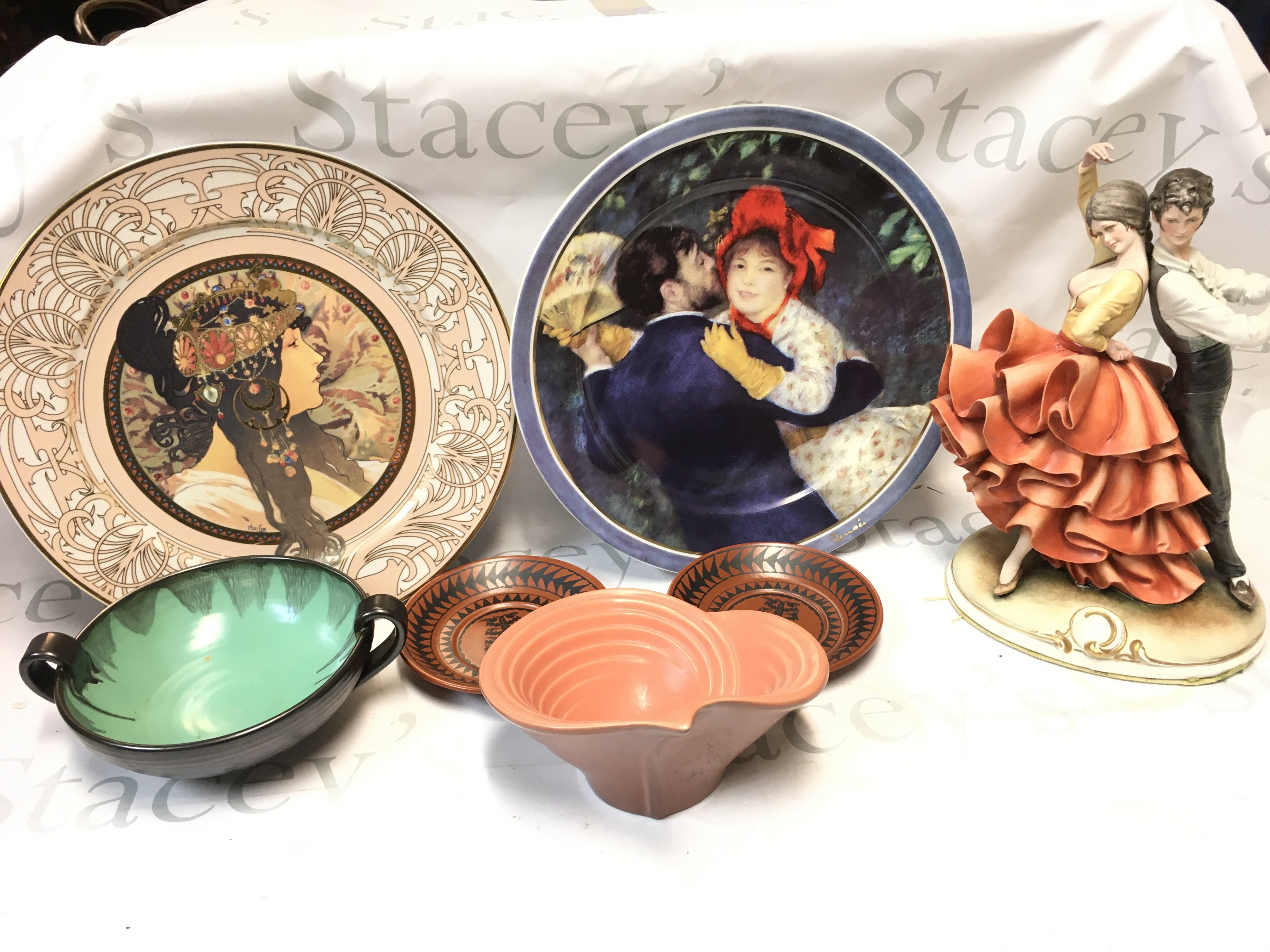 A Collection of ceramics including a Capodimonte couple dancing figure group, Scottie Wilson Royal Worcester dishes, Artis Orbis Goebel plates etc