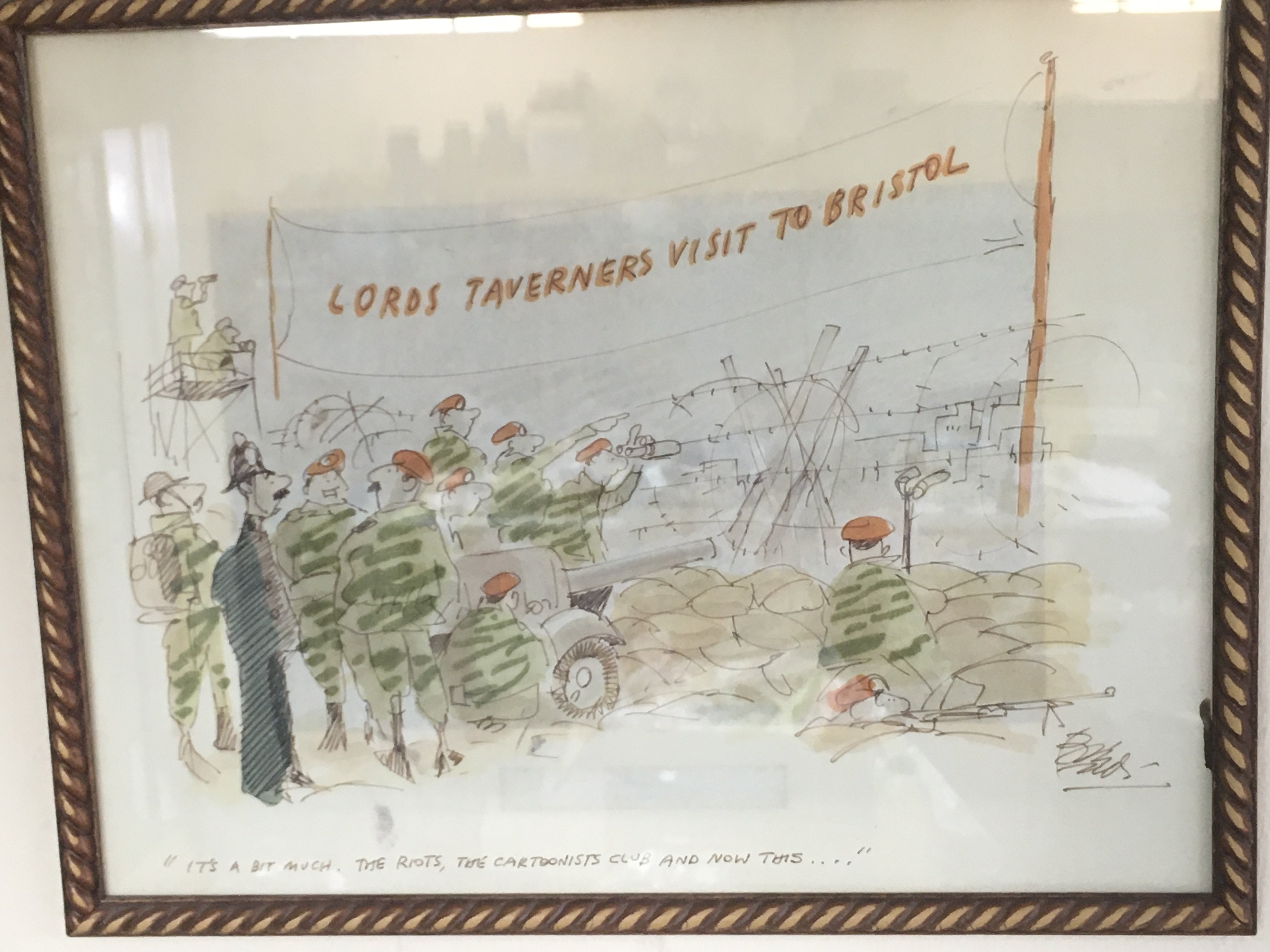 A framed watercolour sketch, The Lords Taverners visit to Bristol. Dimensions 37x30cm This lot cannot be posted. NO RESERVE