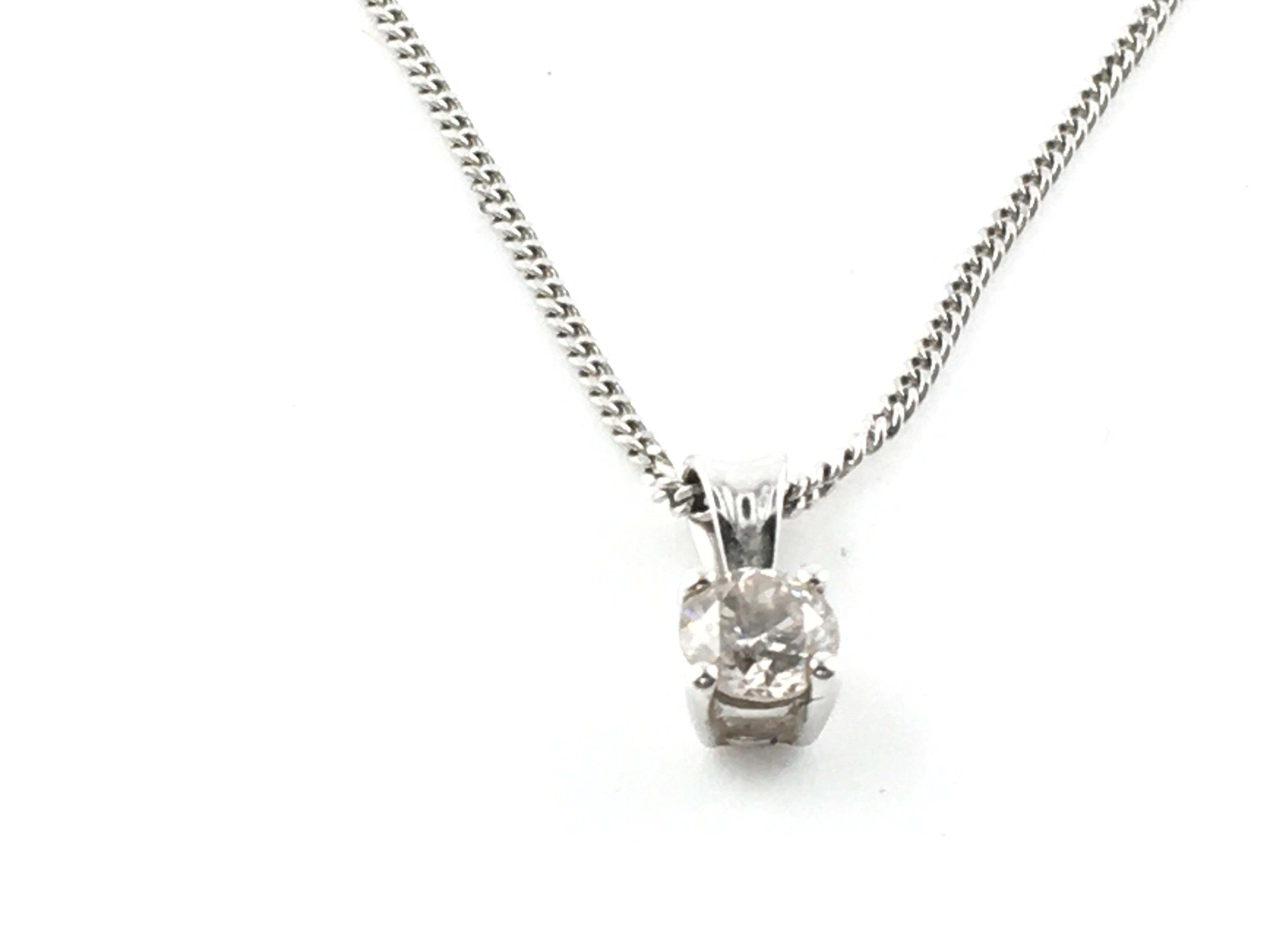 A 0.25ct diamond pendant on and 18ct white gold chain. Total weight 2.16g