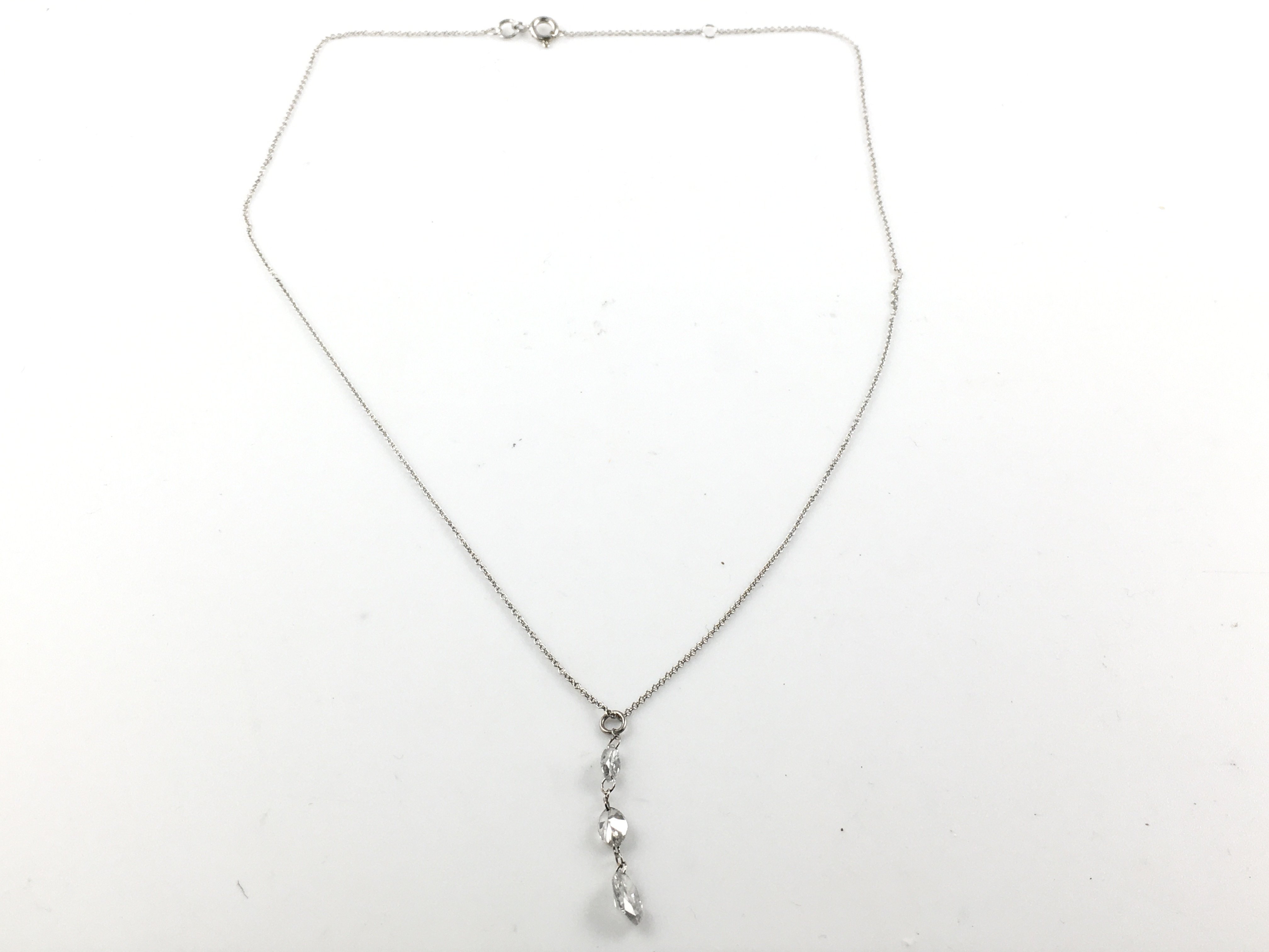An 18ct white gold 1.37ct diamond drop necklace. Postage A