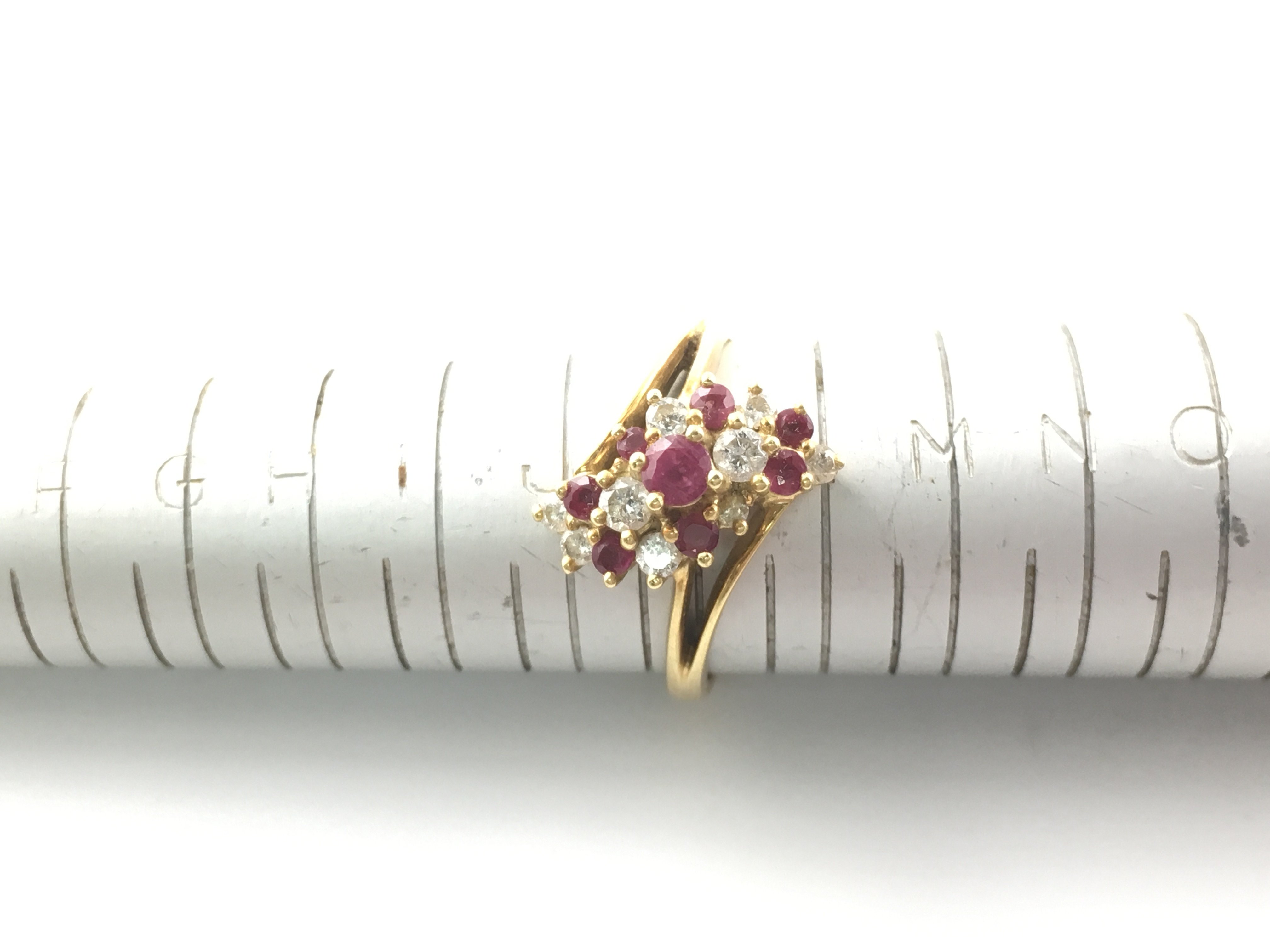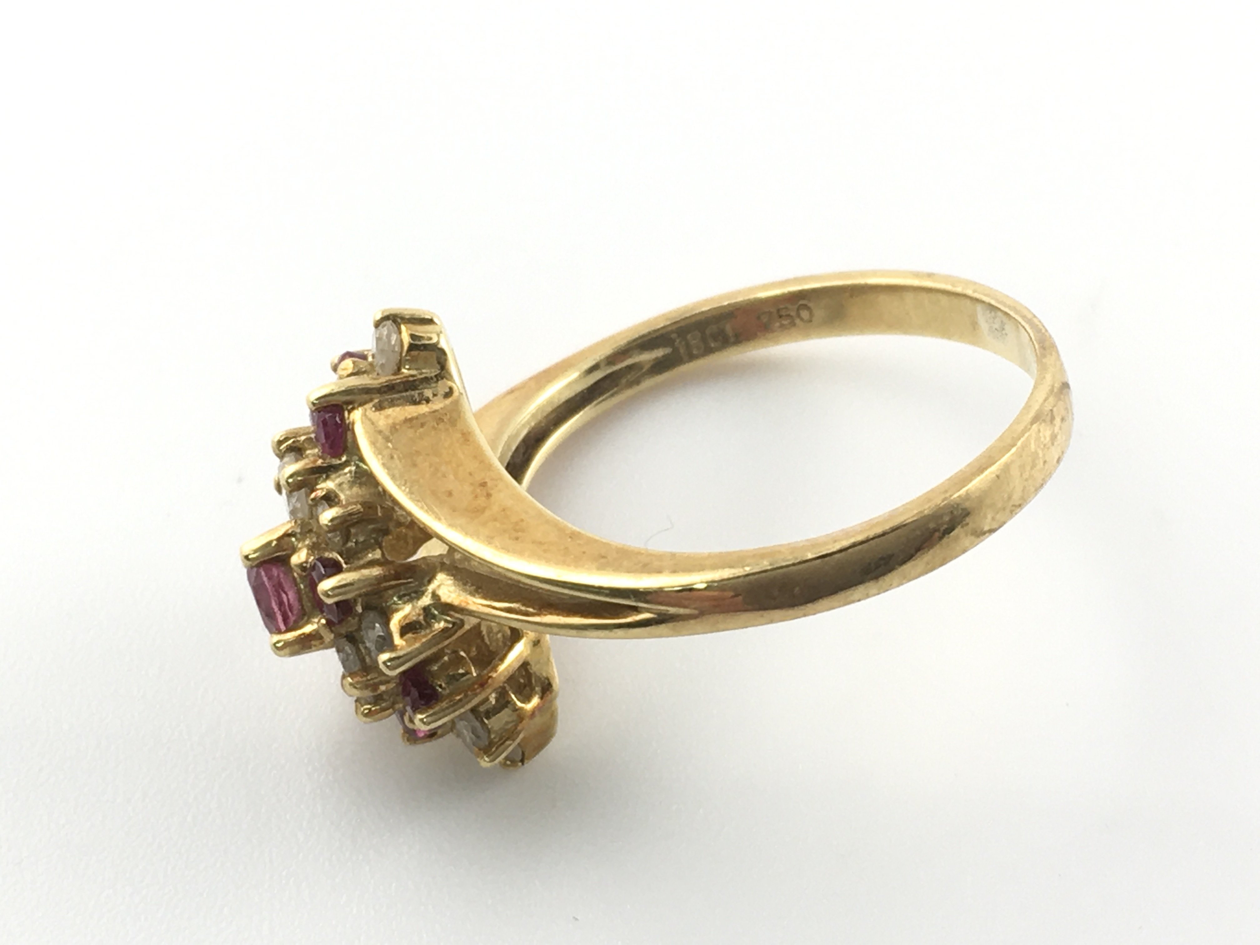 An 18ct diamond and ruby ring. Size K and 3.76g