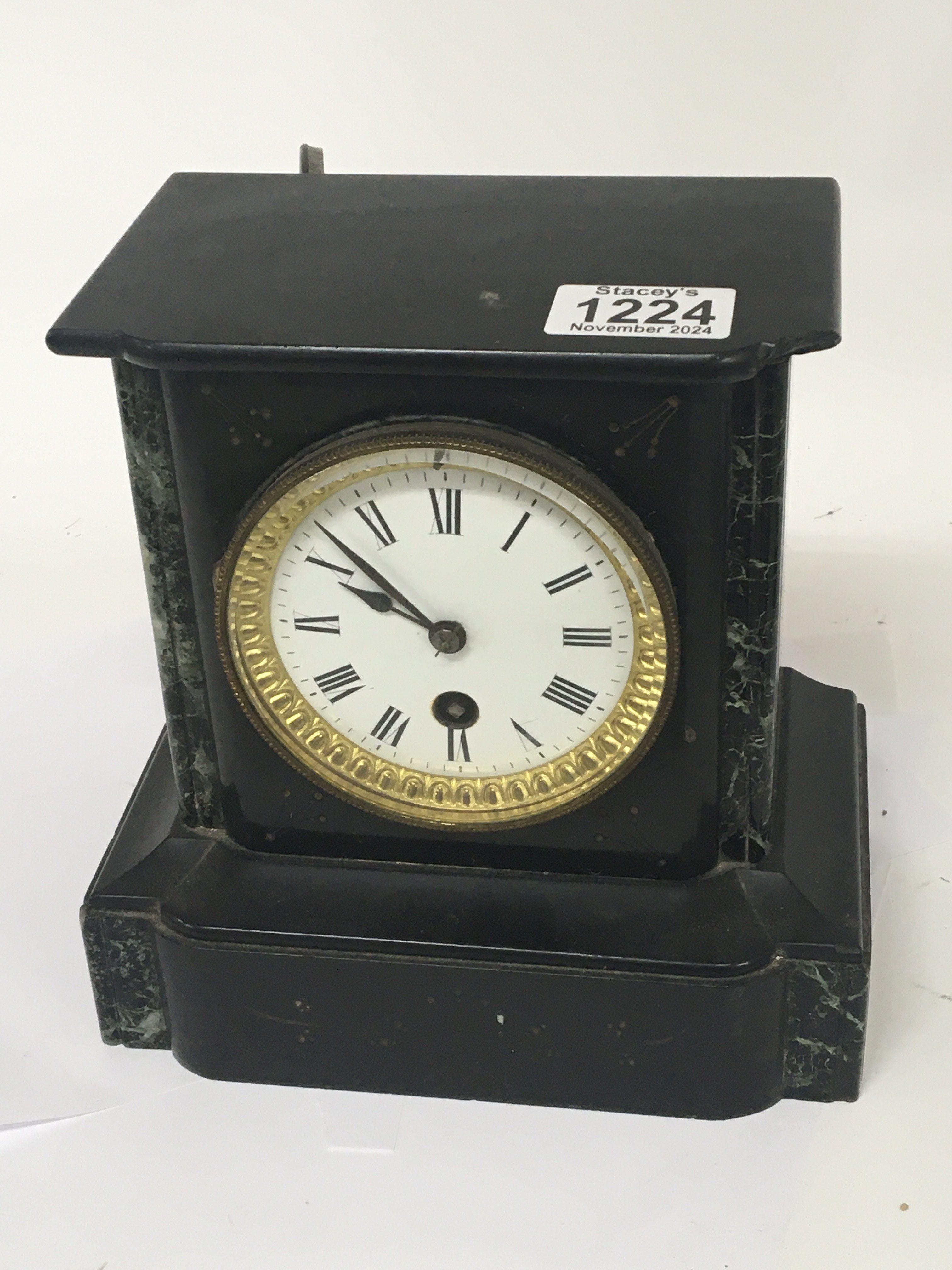 A Victorian black slate and marble mantle clock. NO RESERVE