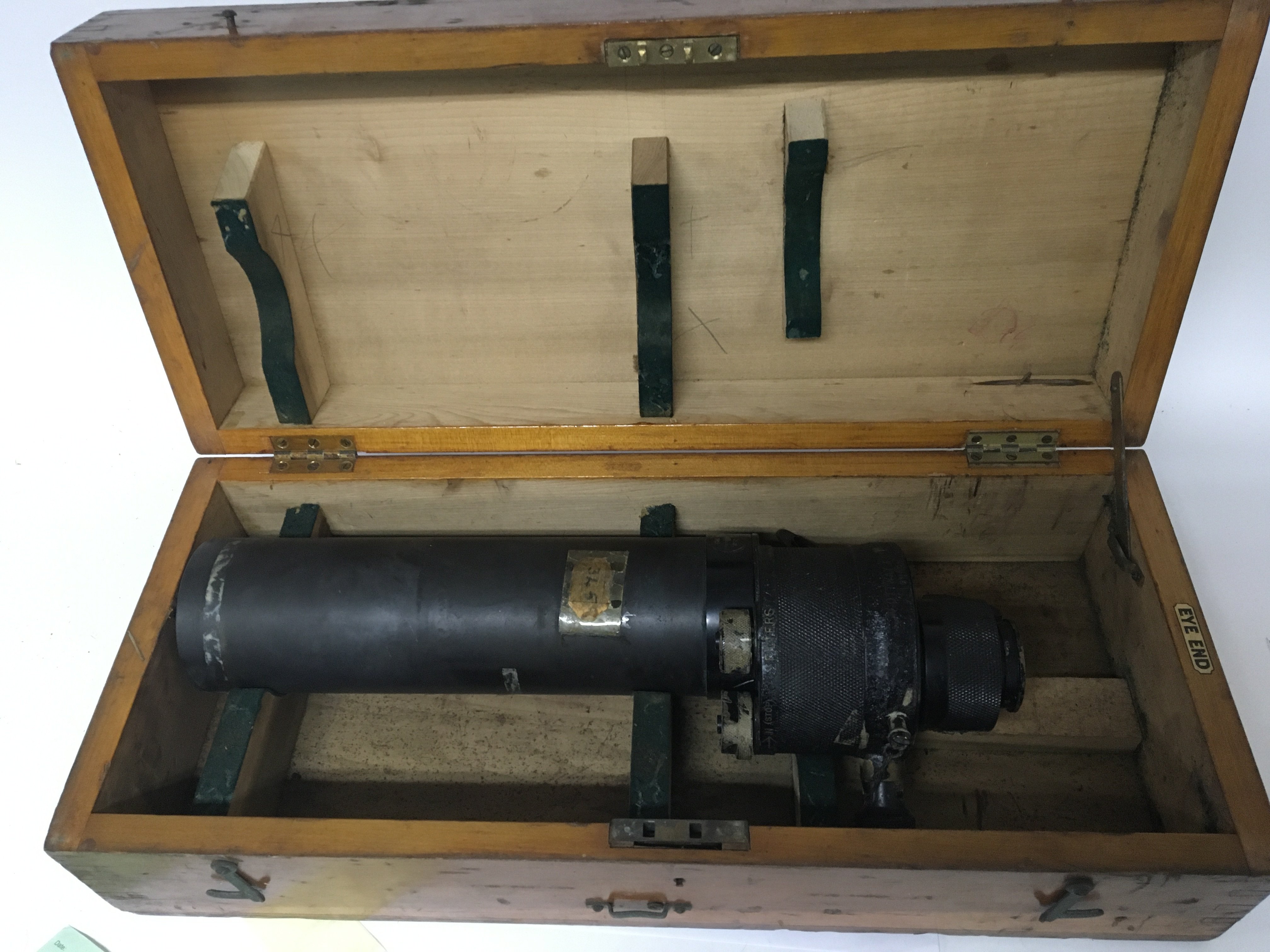 A British Military Prismatic Monocular gunsight in a fitted box. NO RESERVE