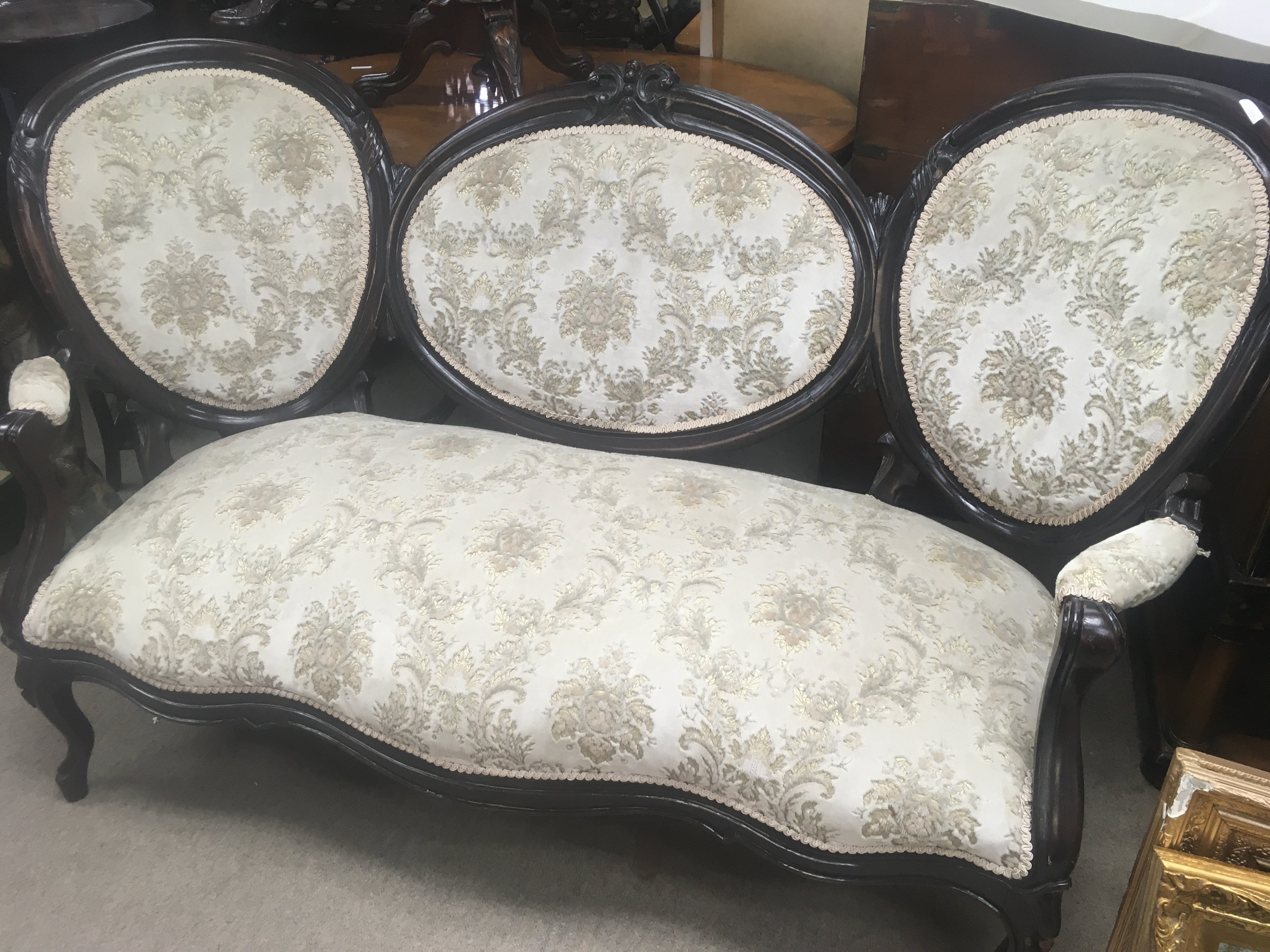A double ended Victorian sofa with upholstered back and seat on cabriole legs. NO RESERVE