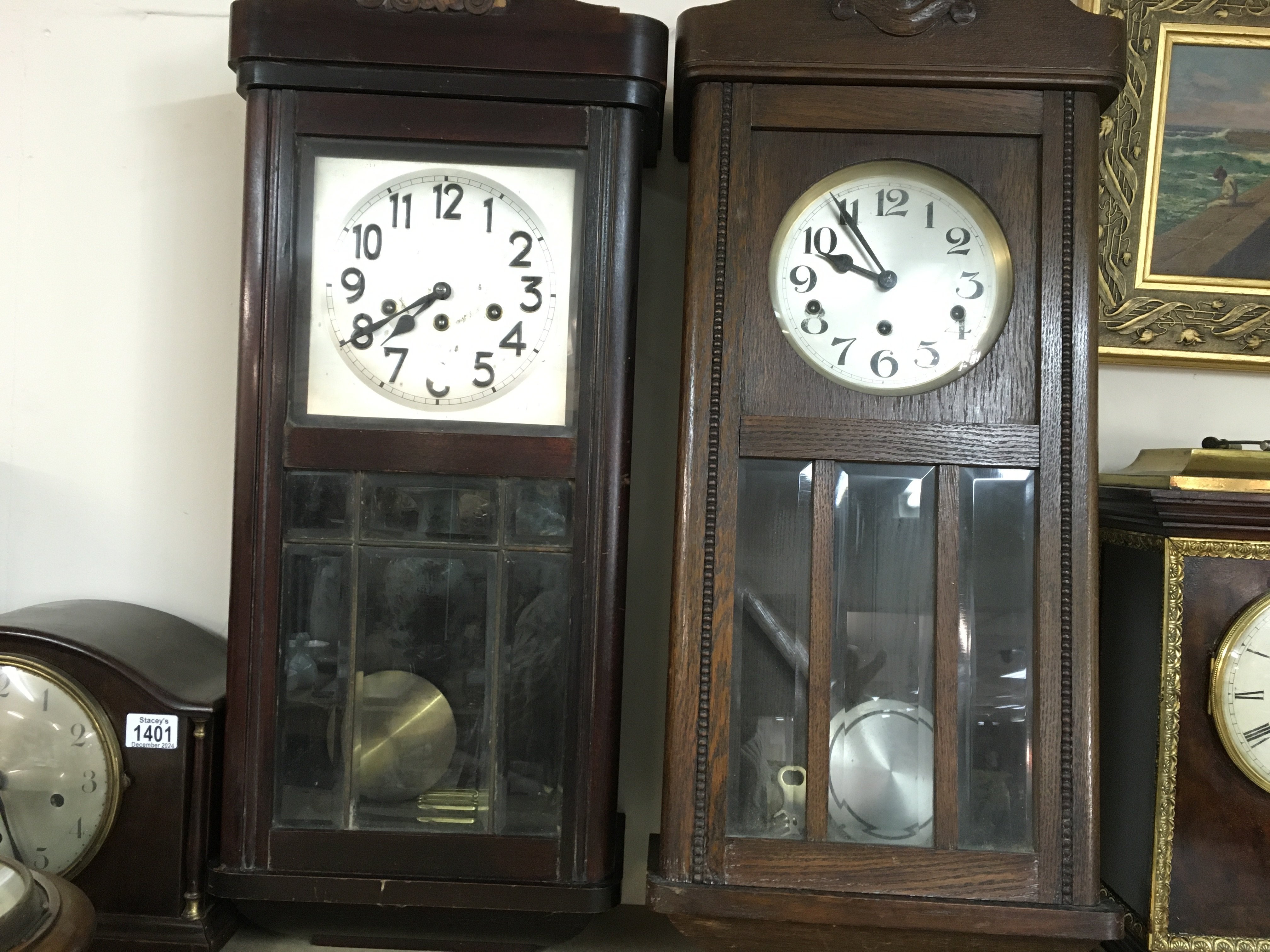 Two wall clocks. Both approximately 86cm tall and 32cm wide, Postage D. NO RESERVE