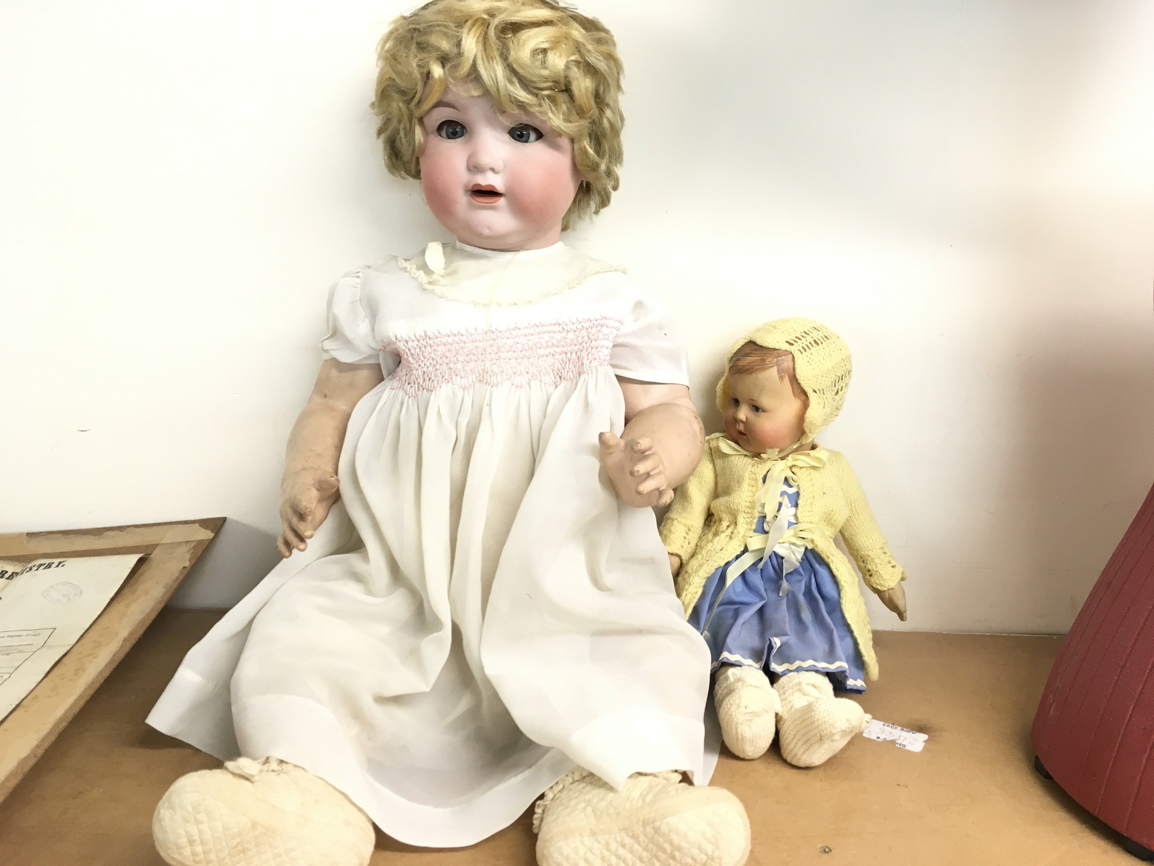 A large early 20th century doll with bisque head and composition body and one other doll. Postage D. NO RESERVE