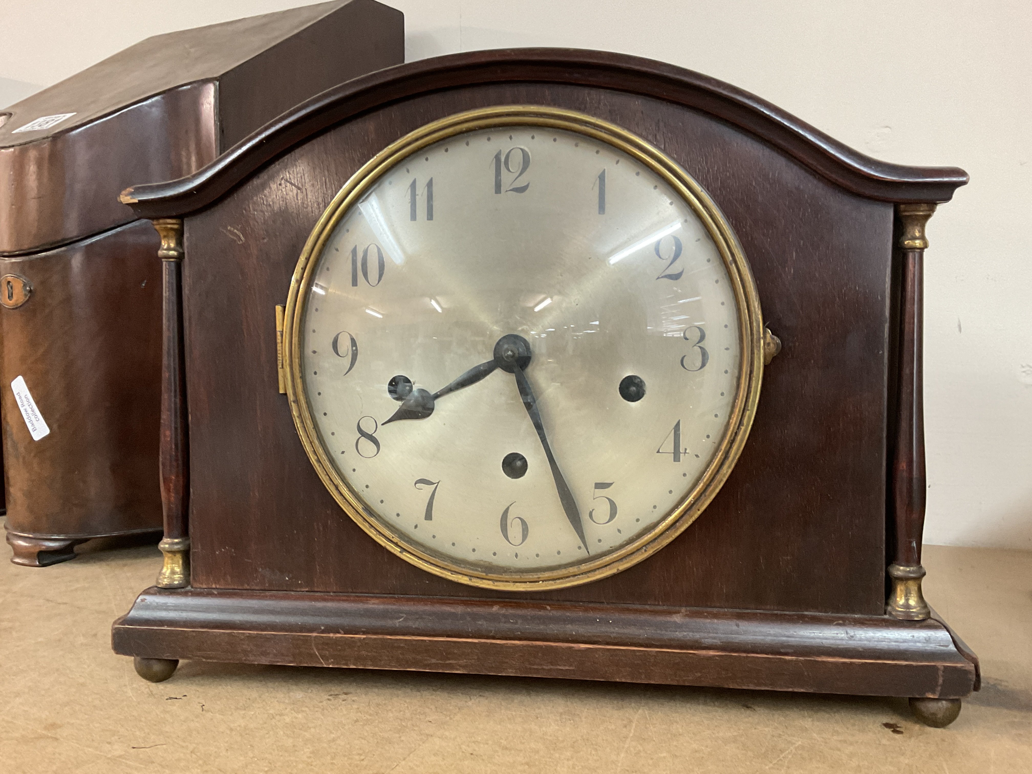 A mahogany mantel clock 34x15x25.5cm. This lot cannot be posted. NO RESERVE