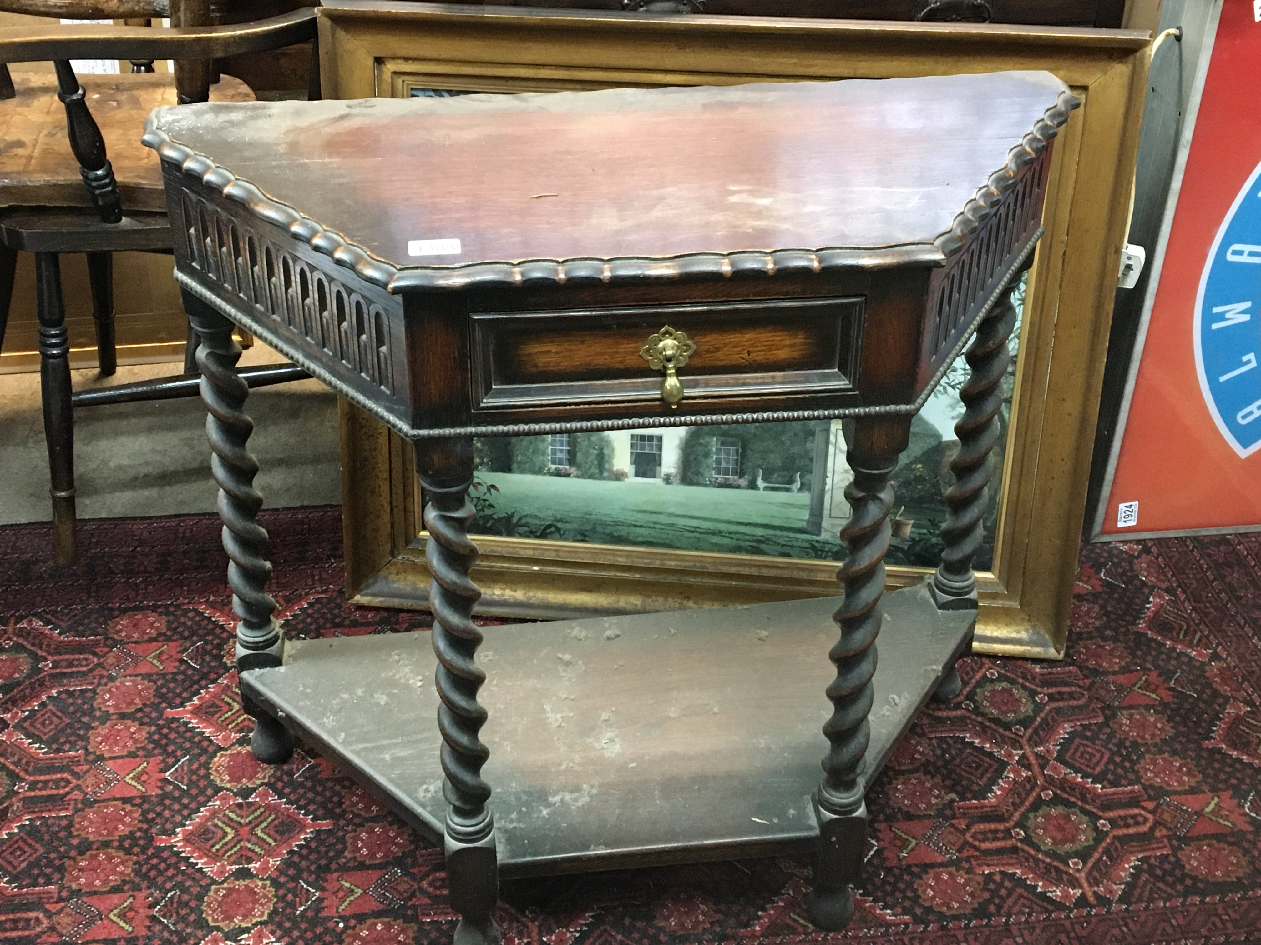 An oak side table with a shaped edge above a single drawer on barley twist legs united by an under shelf 85cm. NO RESERVE