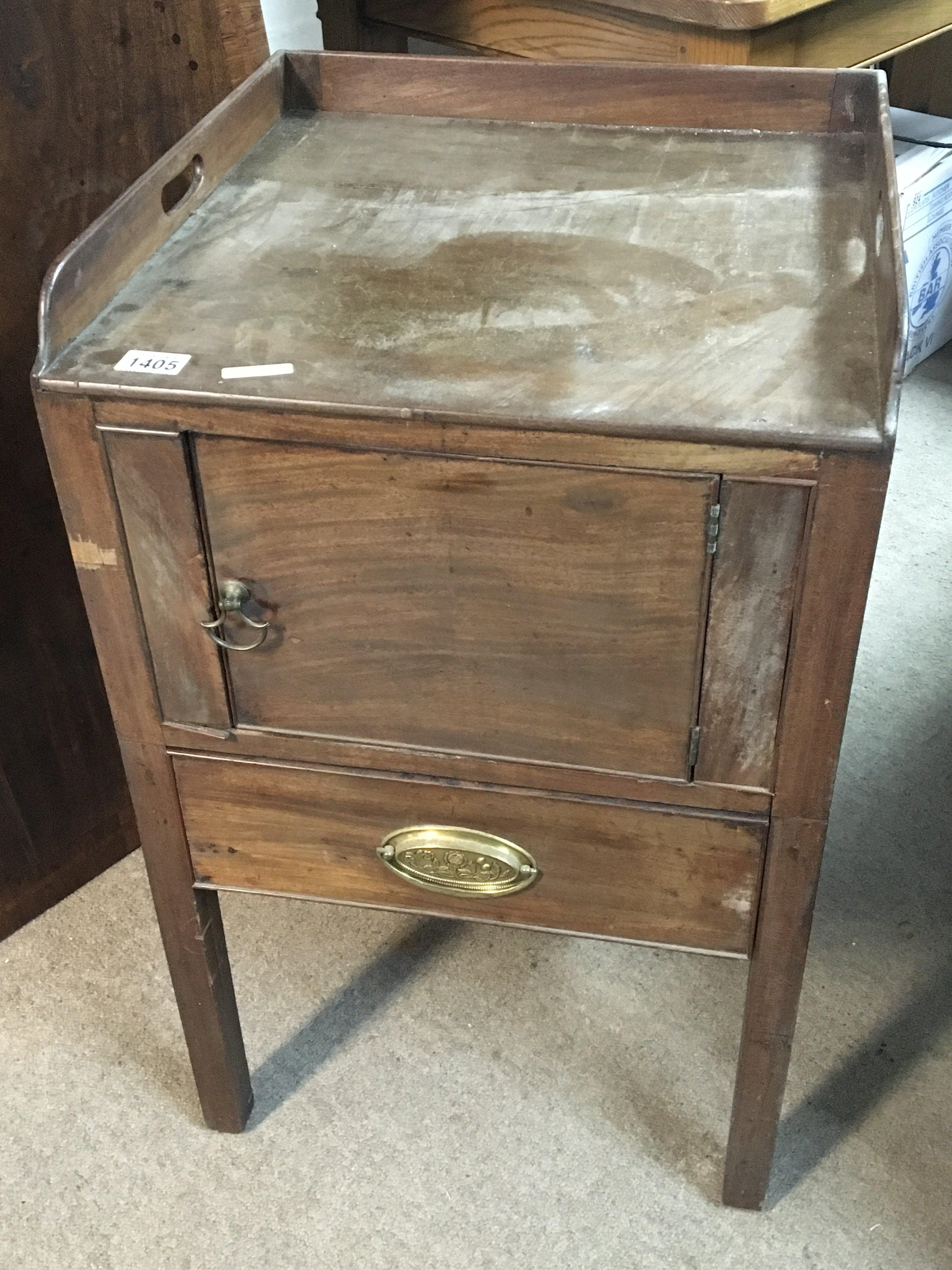 A George III mahogany cabinet with a raised three quarter gallery above a single drawer and cupboard. NO RESERVE